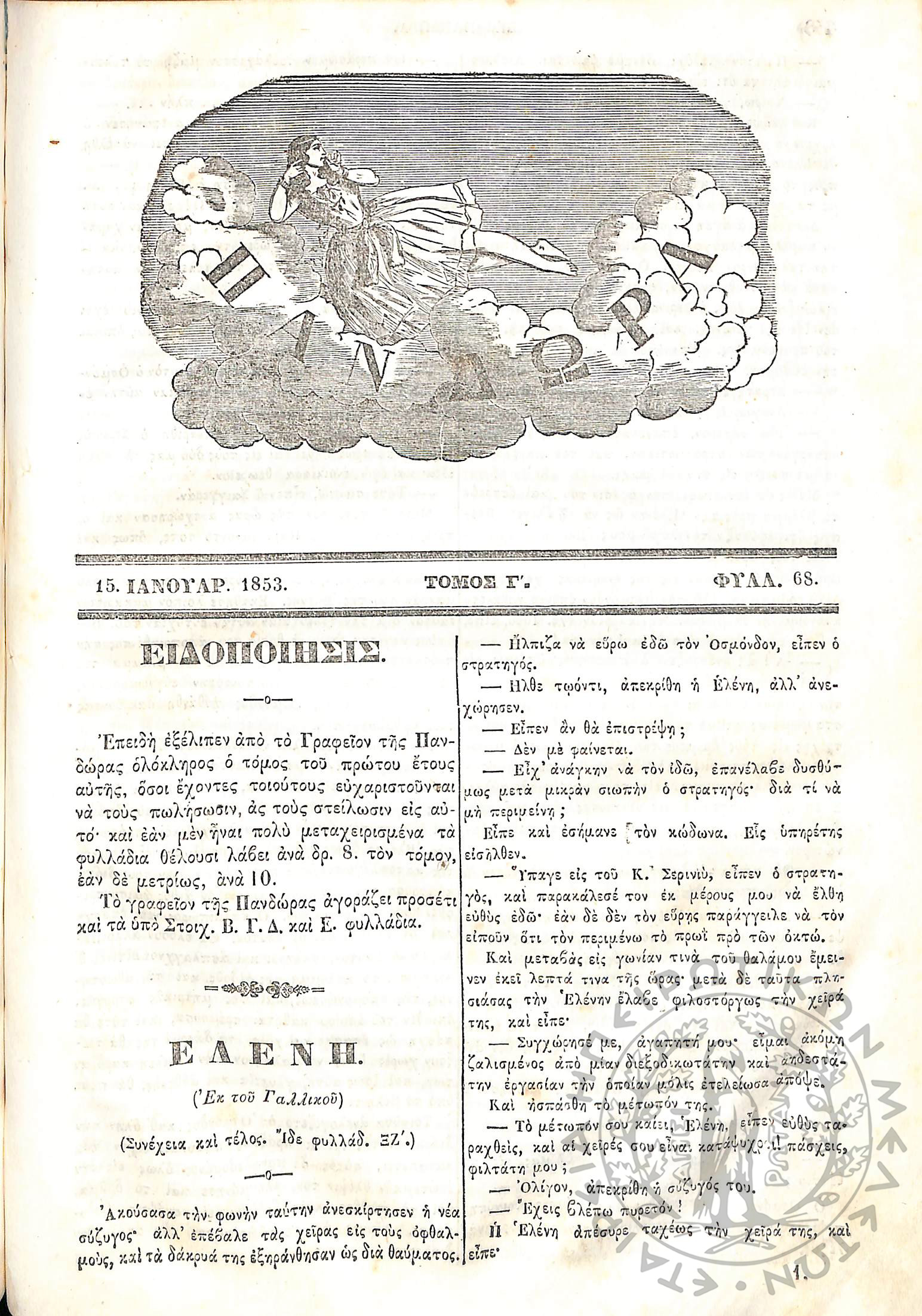 Πανδώρα: σύγγραμμα περιοδικόν εκδιδόμενον δις του μηνός (Τόμ. 3, τεύχ. 68)
