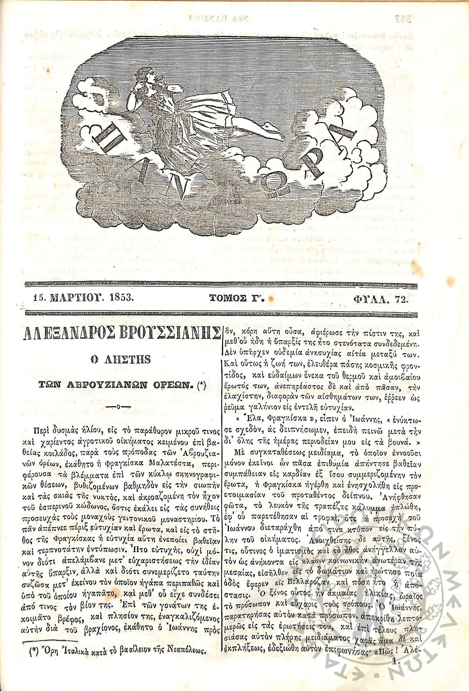 Πανδώρα: σύγγραμμα περιοδικόν εκδιδόμενον δις του μηνός (Τόμ. 3, τεύχ. 72)