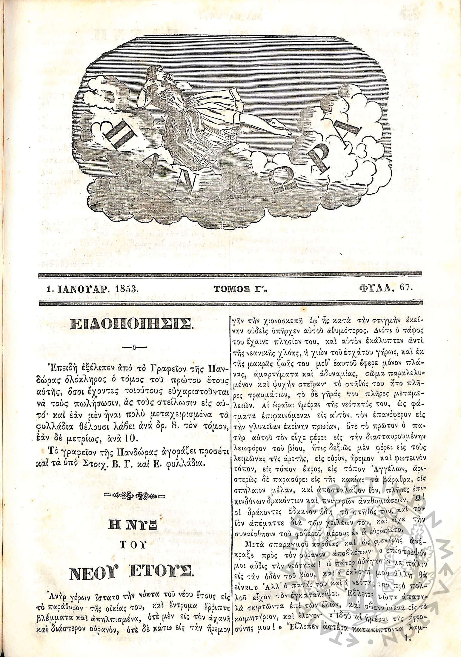 Πανδώρα: σύγγραμμα περιοδικόν εκδιδόμενον δις του μηνός (Τόμ. 3, τεύχ. 67)