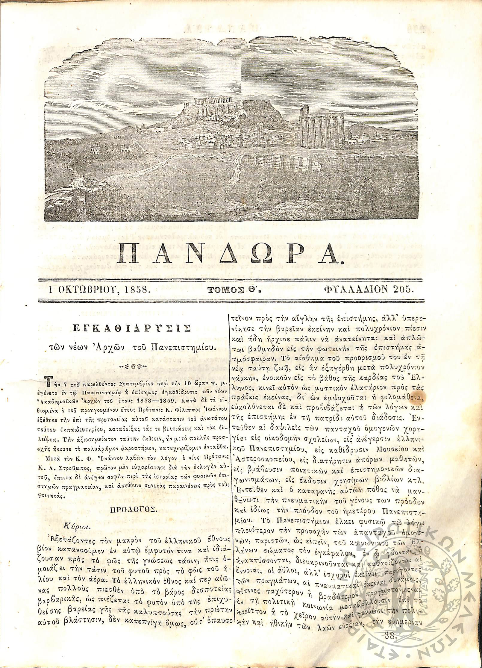 Πανδώρα: σύγγραμμα περιοδικόν εκδιδόμενον δις του μηνός (Τόμ. 9, τεύχ. 205)