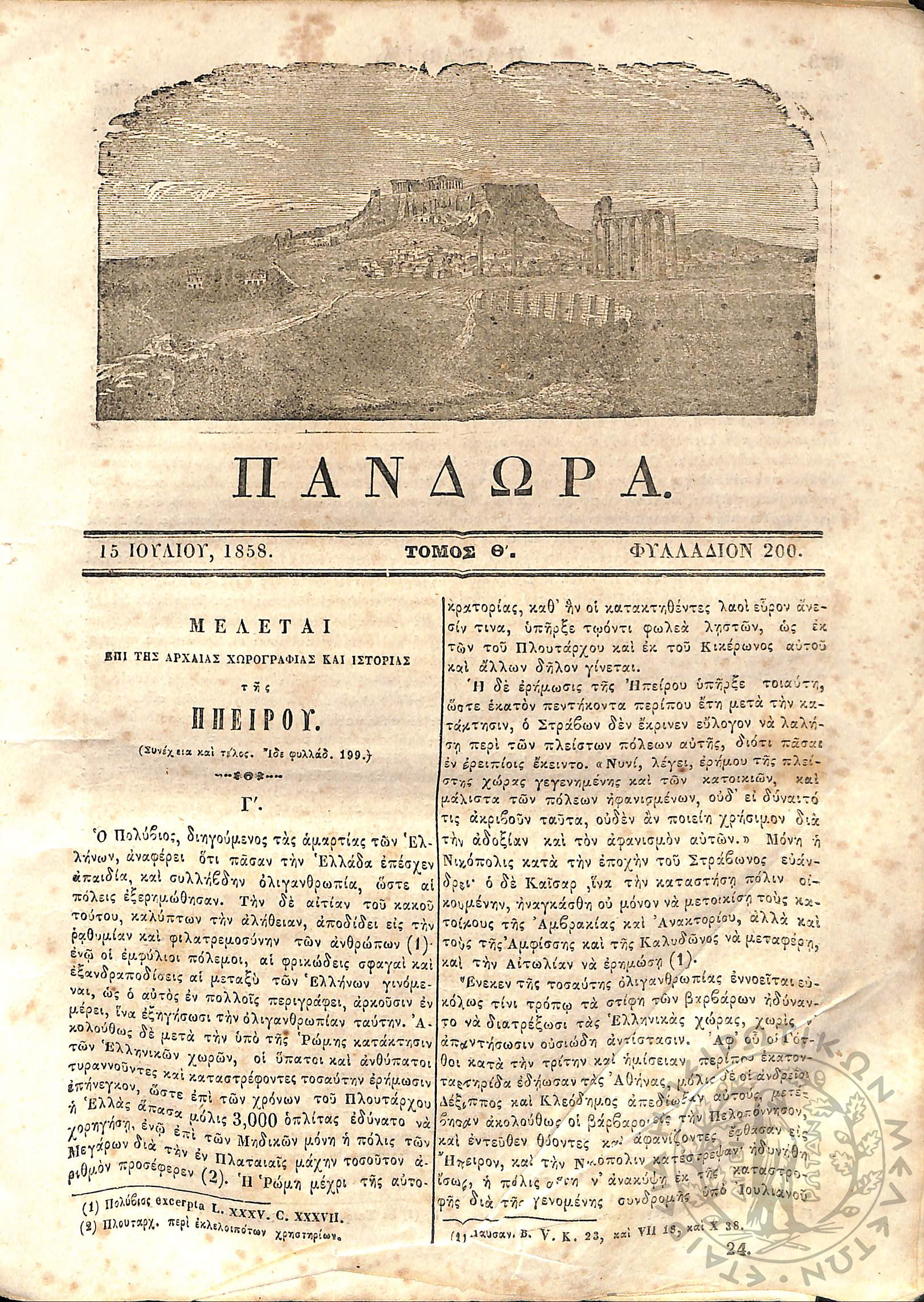 Πανδώρα: σύγγραμμα περιοδικόν εκδιδόμενον δις του μηνός (Τόμ. 9, τεύχ. 200)
