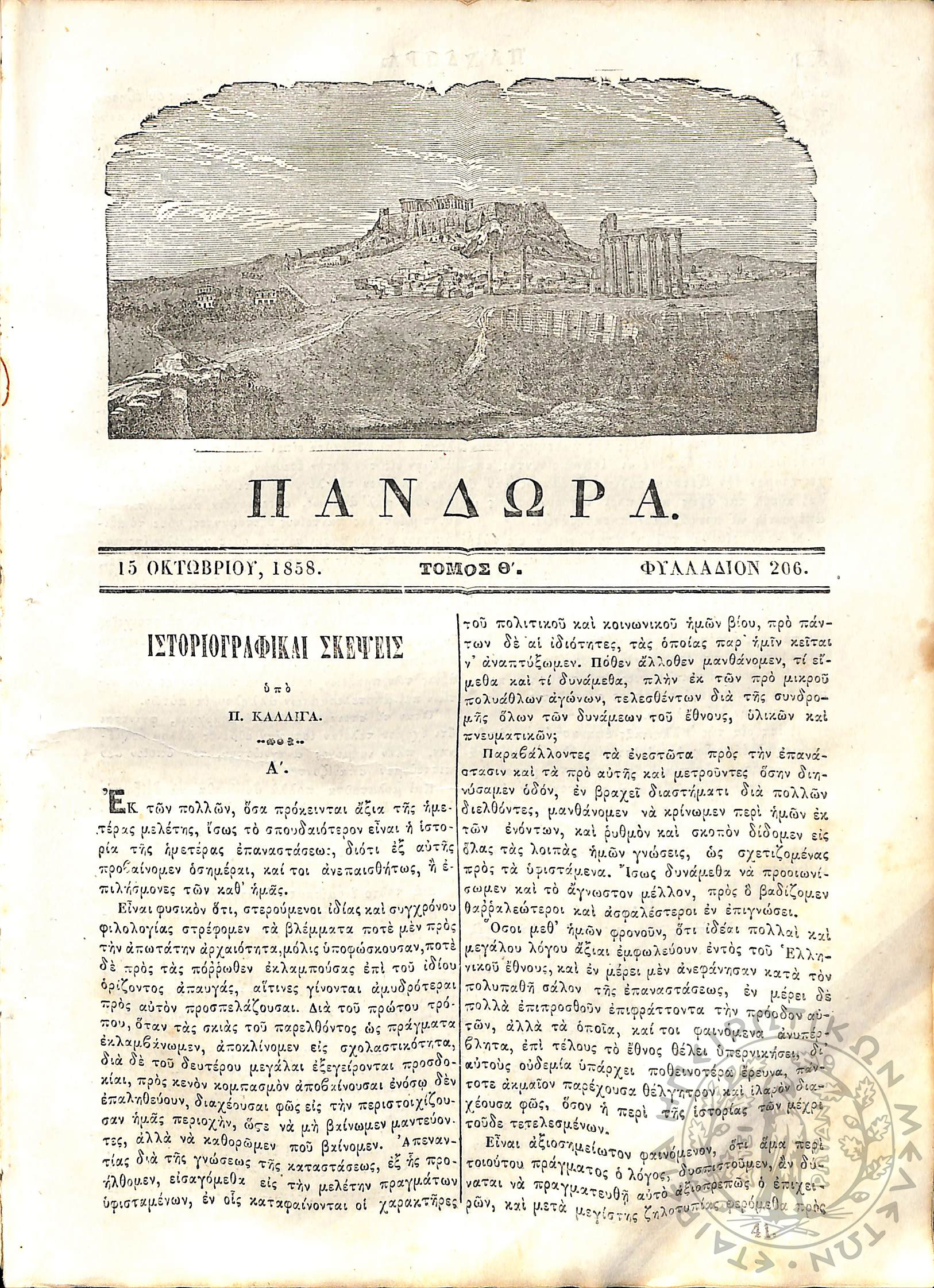 Πανδώρα: σύγγραμμα περιοδικόν εκδιδόμενον δις του μηνός (Τόμ. 9, τεύχ. 206)