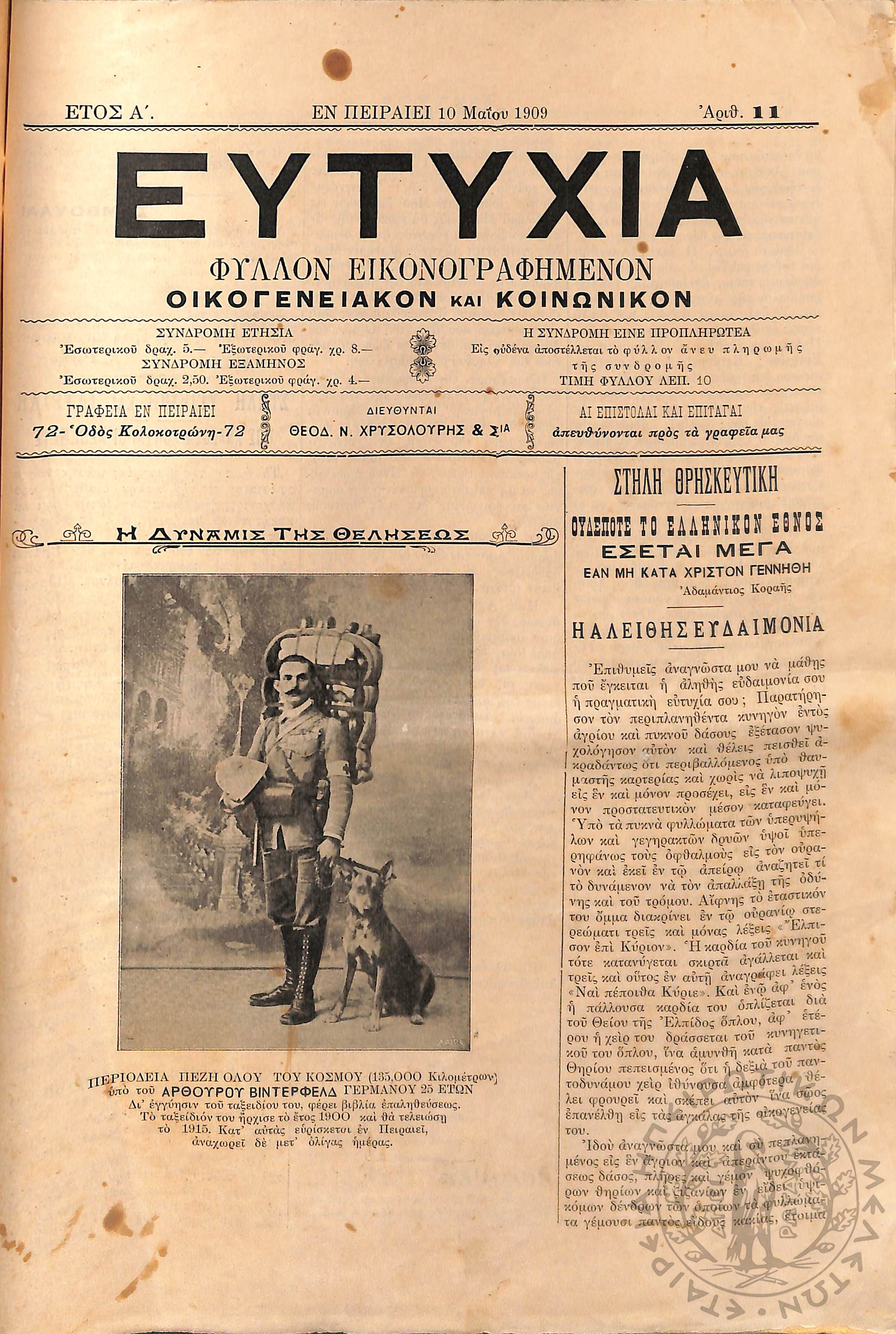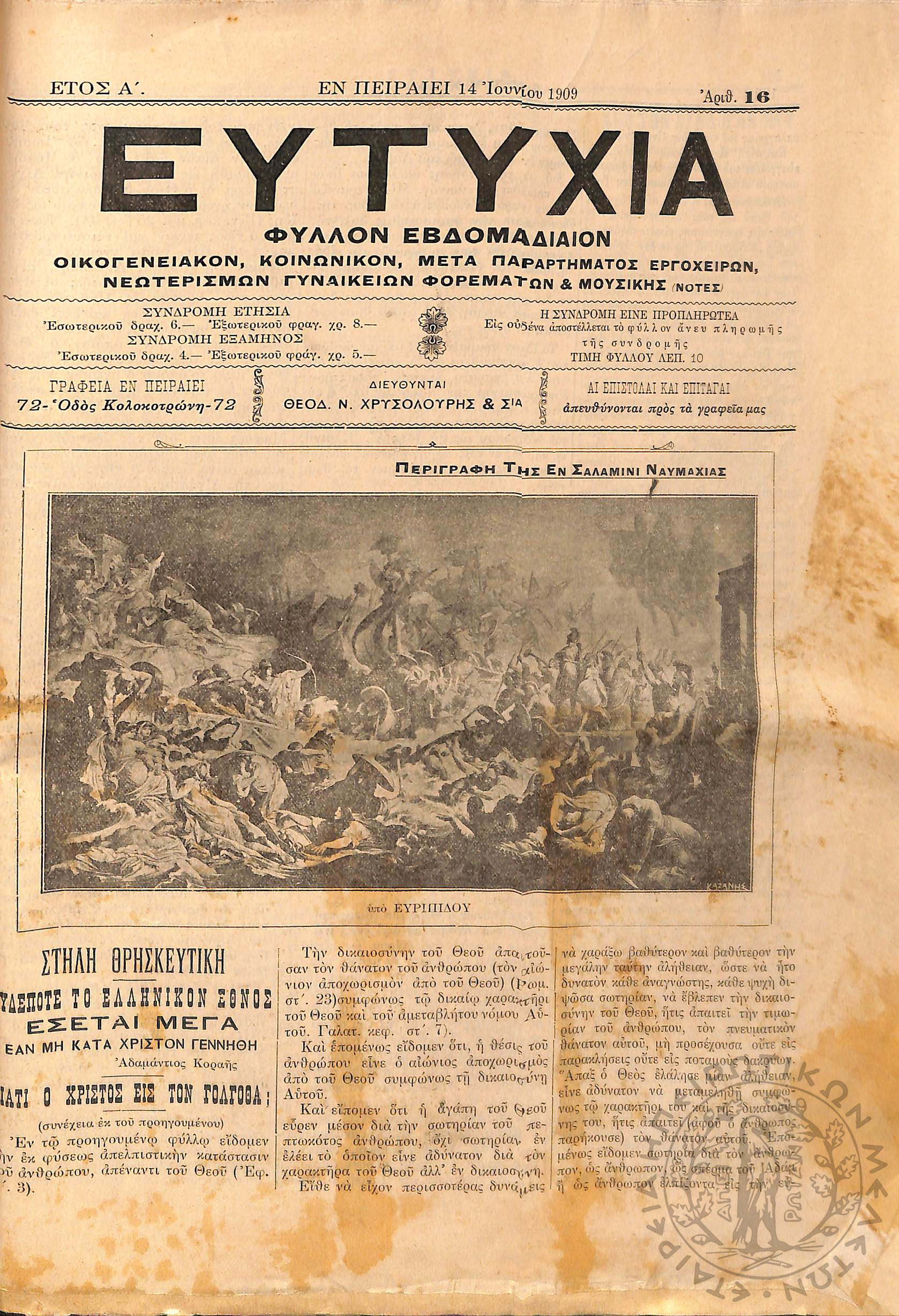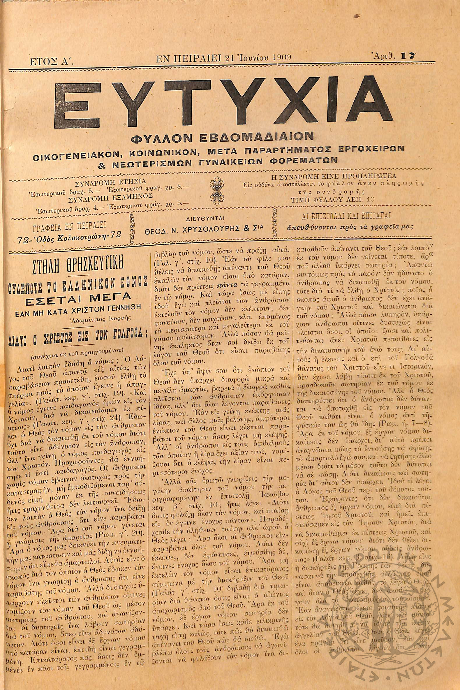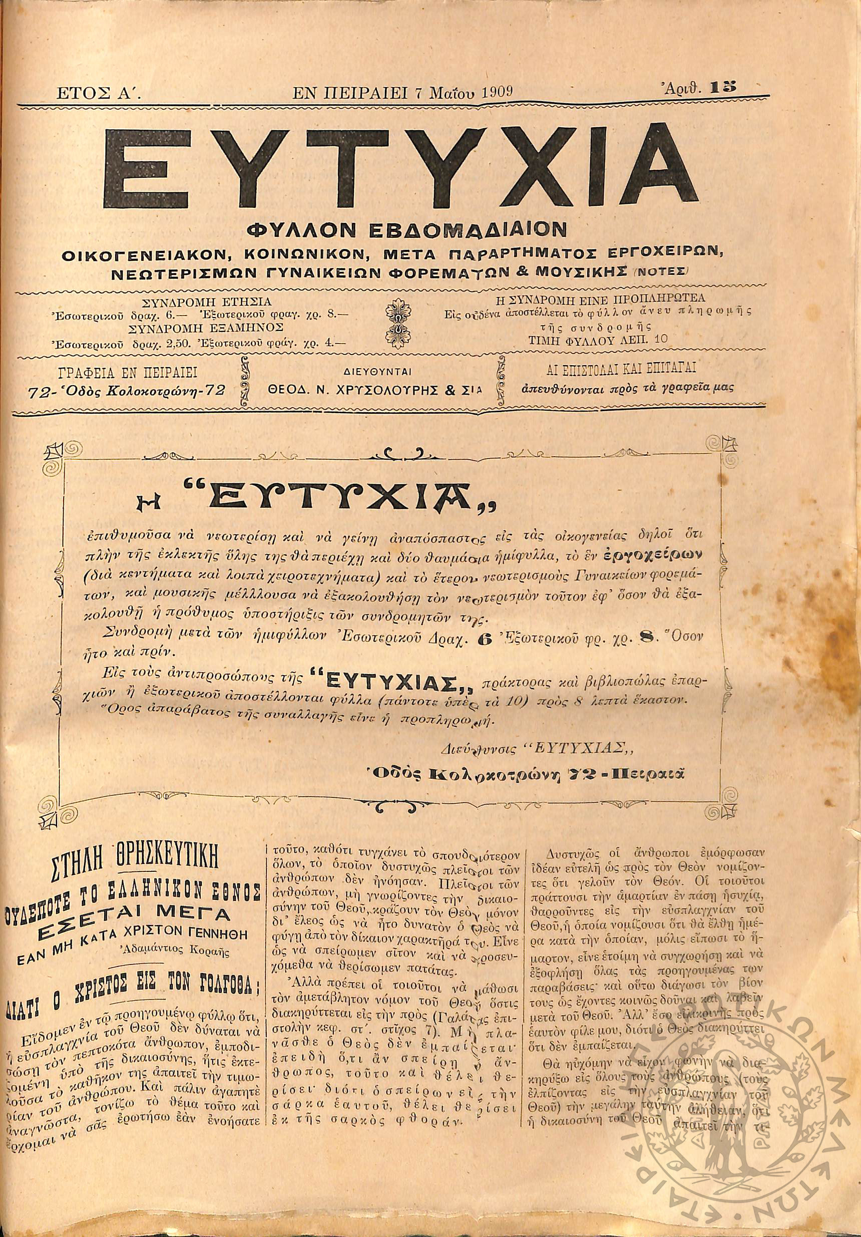 Εργασία: εβδομαδιαία επιθεώρησις όργανον ερεύνης των ζωντανών προβλημάτων της χώρας (τεύχ. 9)Έτος Α΄, τεύχ. 9...