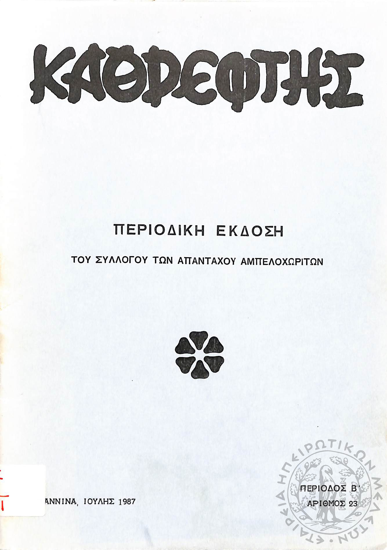 Ο Καθρέφτης: περιοδική έκδοση του συλλόγου των απανταχού Αμπελοχωριτών (τεύχ. 23)Περίοδος Β΄, τεύχ. 23...