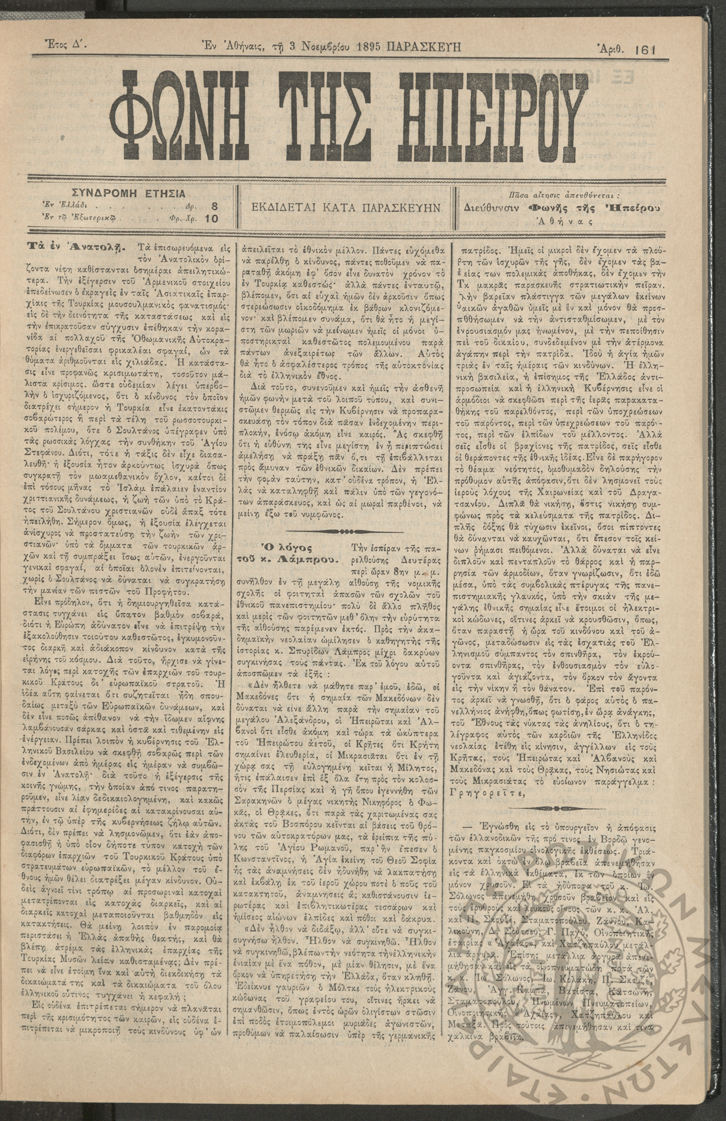 Φωνή της Ηπείρου, 1895, φ. 161