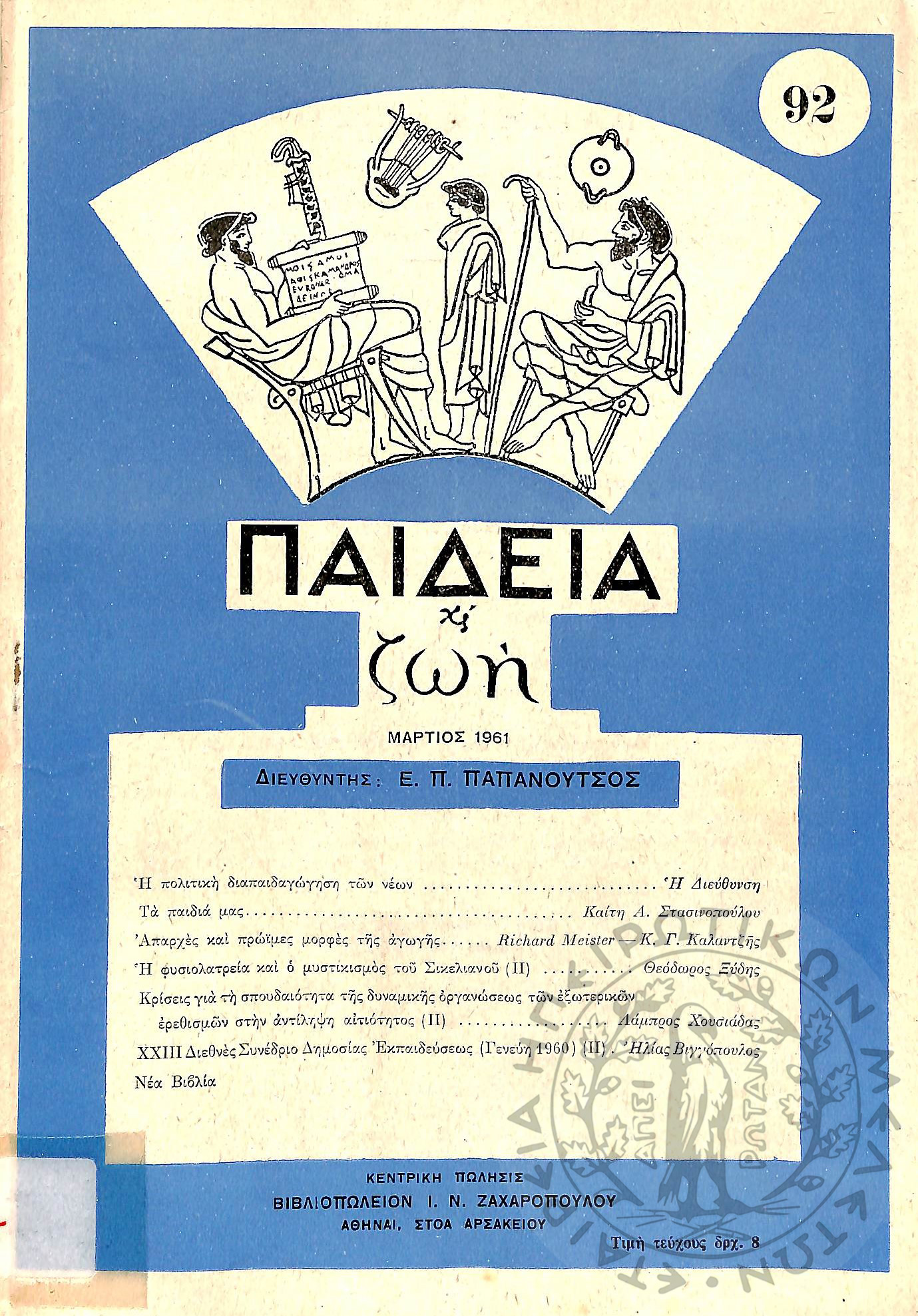Παιδεία και ζωή: μηνιαίο περιοδικό μελέτης-έρευνας-διαφωτισμού (τεύχ. 92)