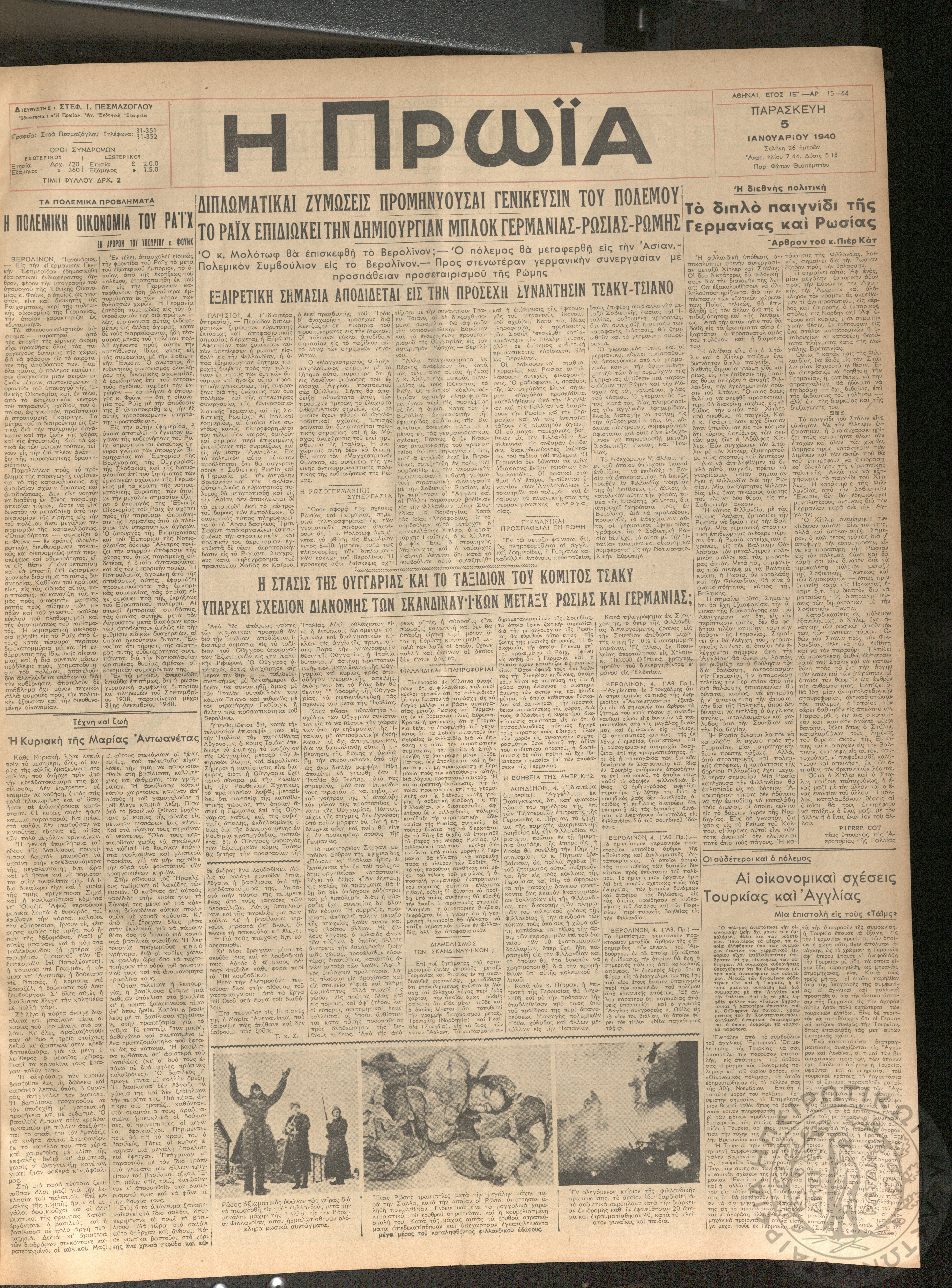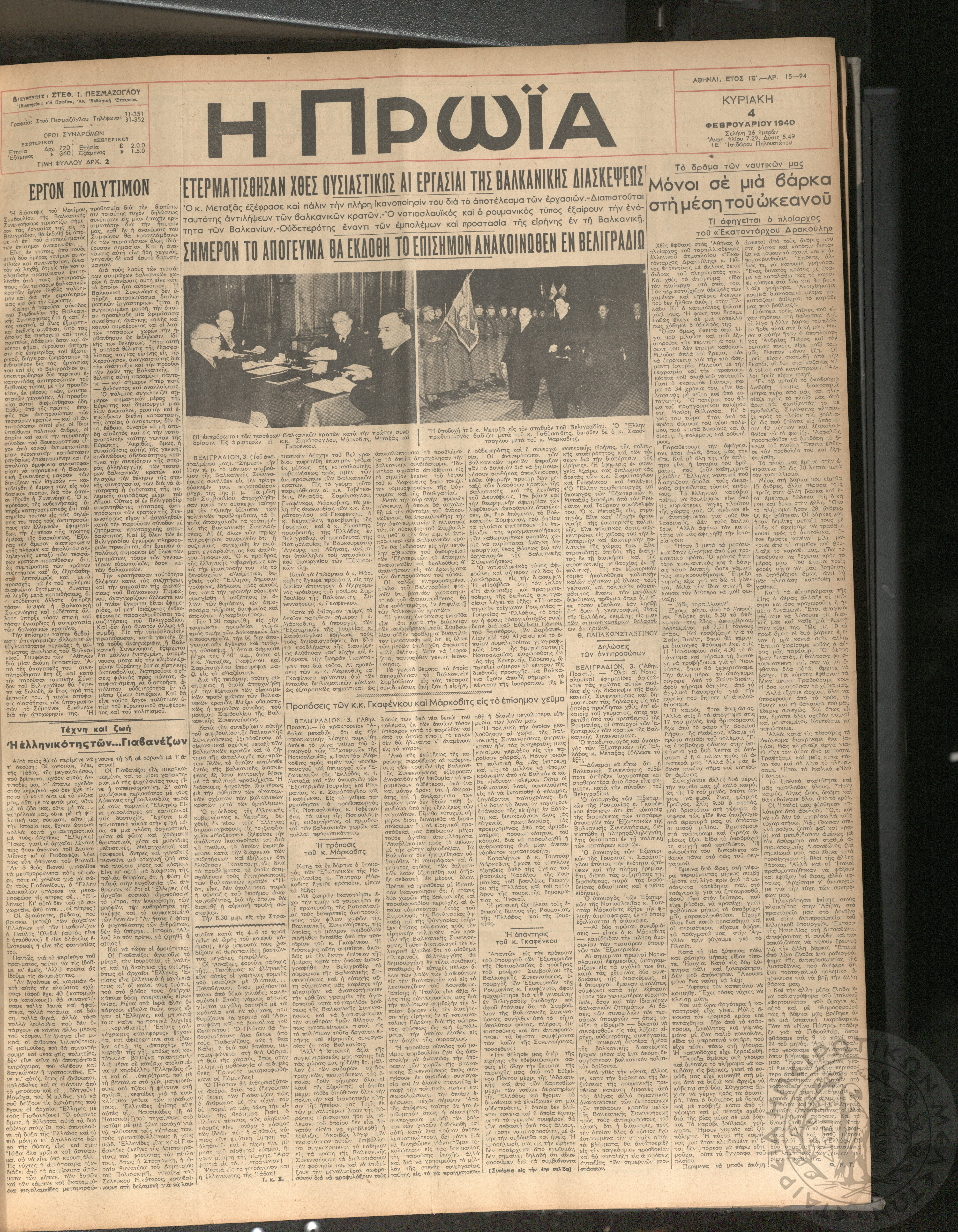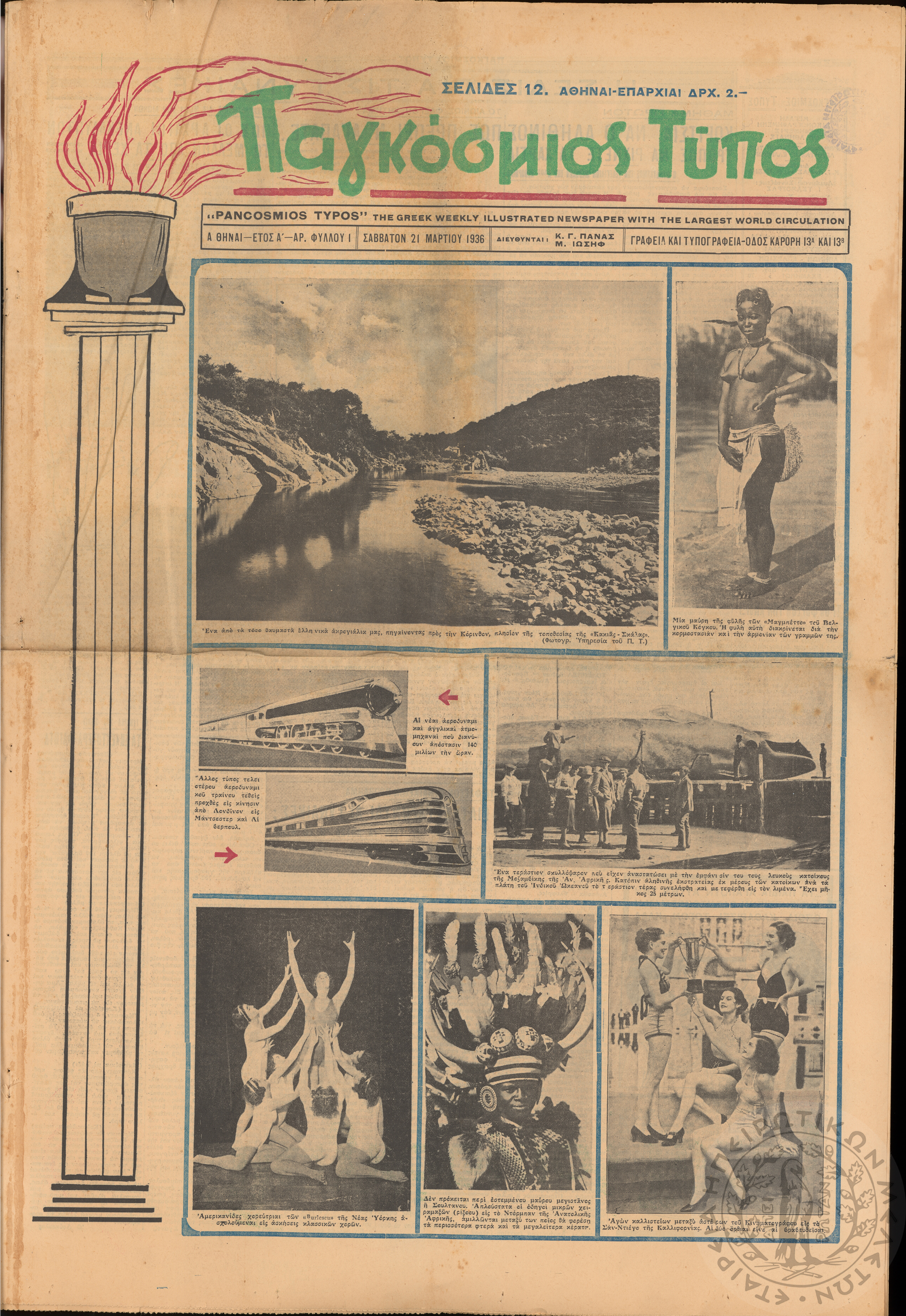 Παγκόσμιος τύπος: μεγάλη εικονογραφημένη εφημερίς εν Αθήναις / "Pancosmios Typos": the Greek weekly illustrated newspaper with the largest world circulation, 1936, φ. 1Έτος Α', φ. 1...
