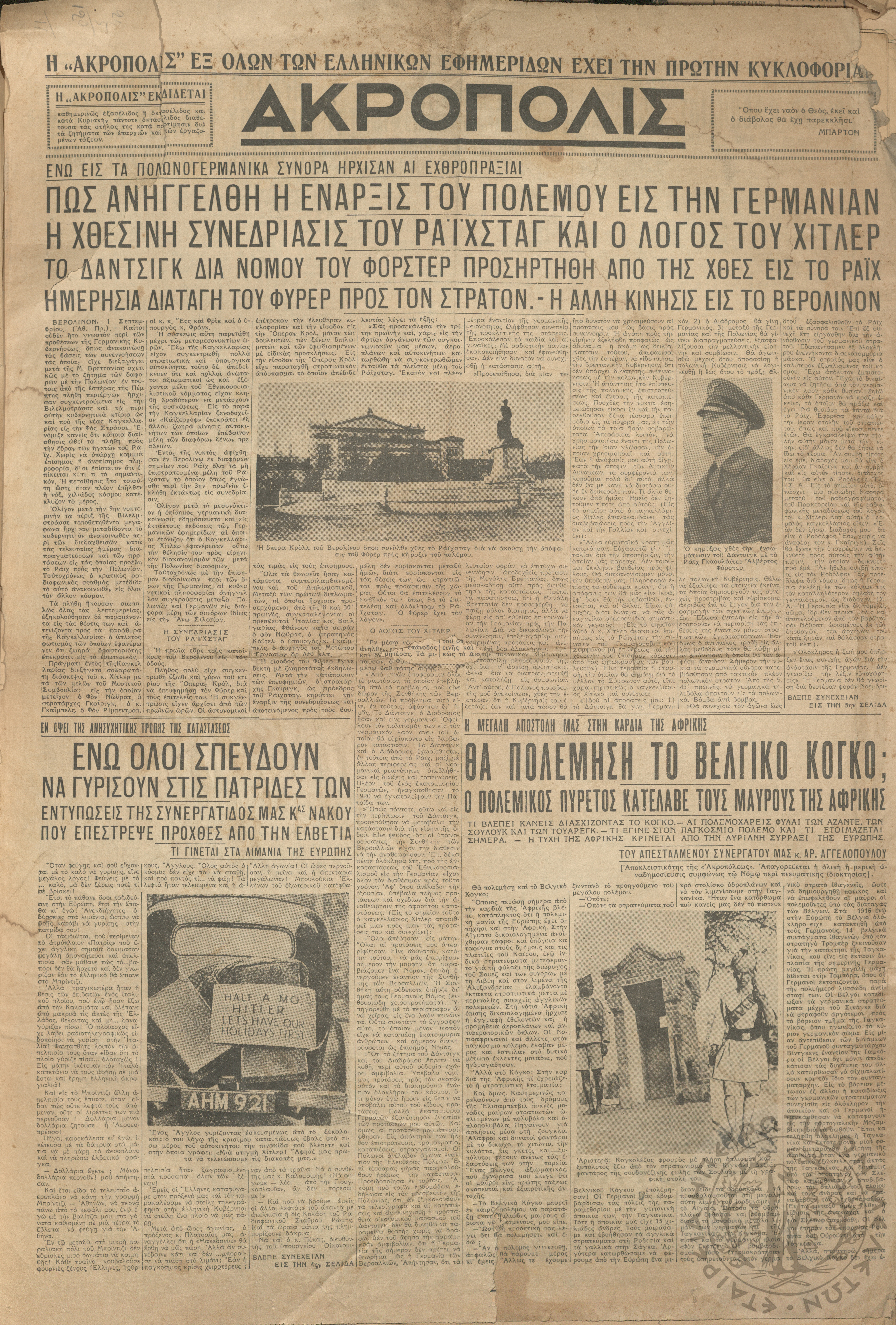 Ακρόπολις, 1939, φ. 2 Σεπτεμβρίου