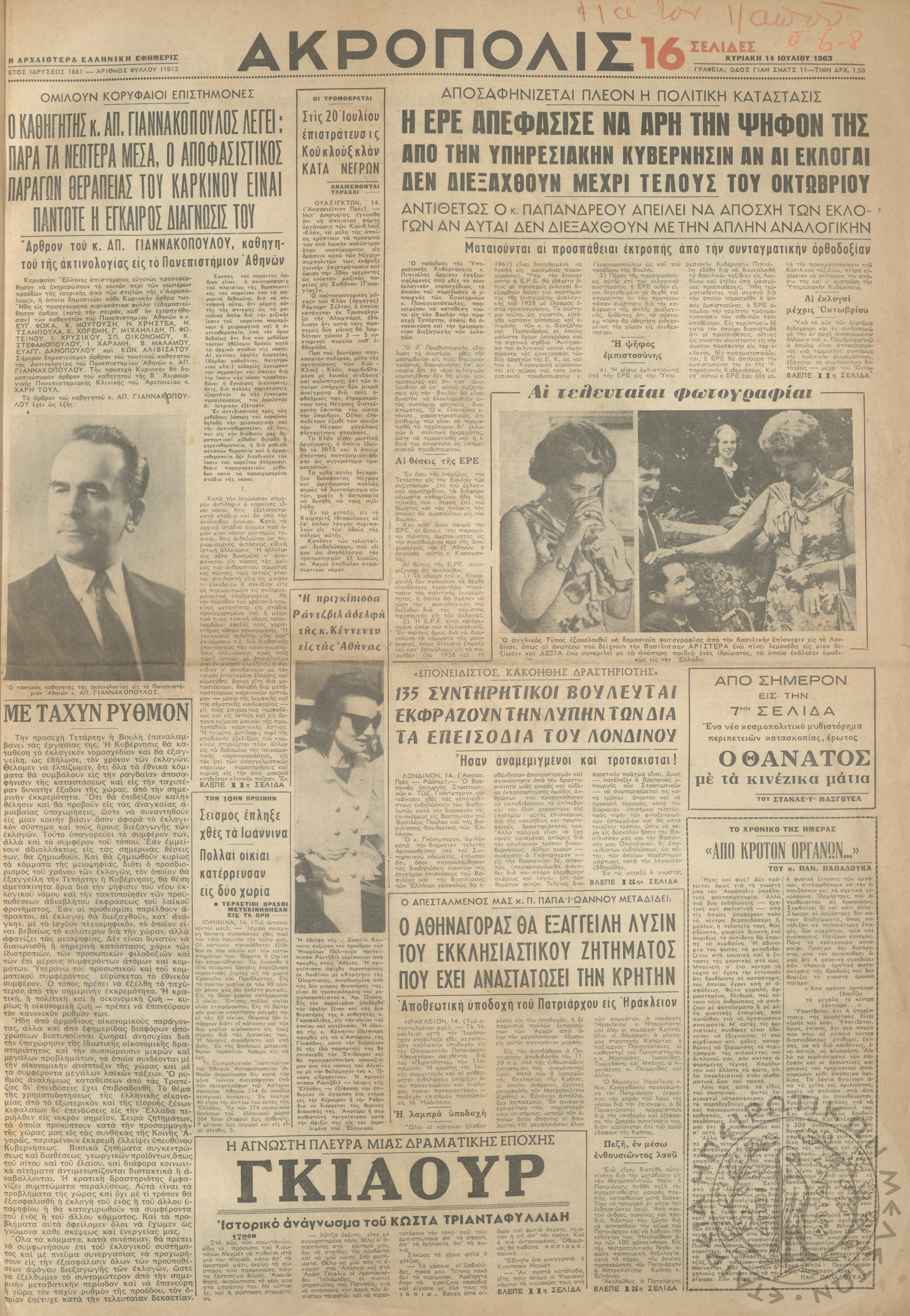 Ακρόπολις: η αρχαιοτέρα των ελληνικών εφημερίδων, 1963, φ. 11012