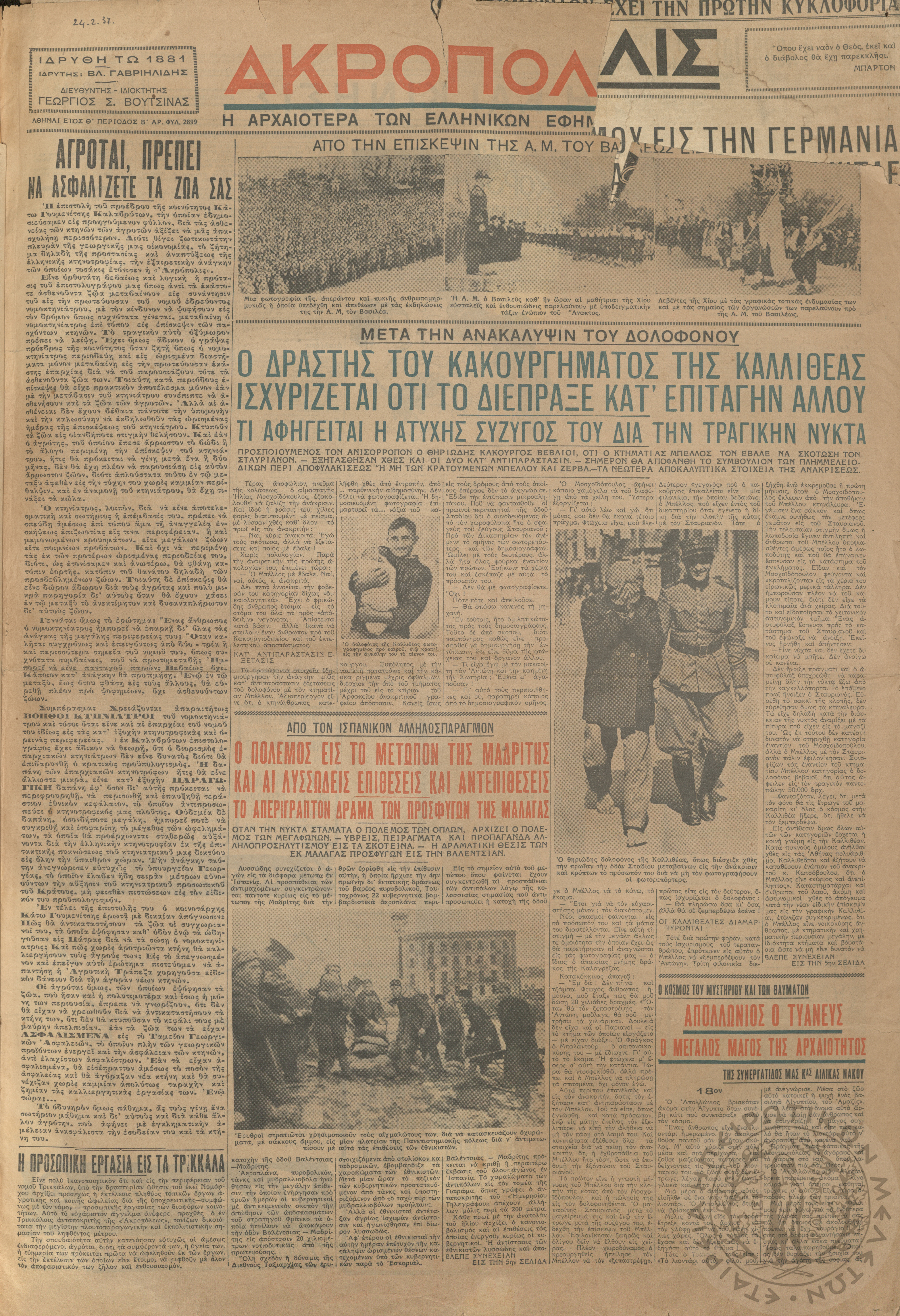 Ακρόπολις: η αρχαιοτέρα των ελληνικών εφημερίδων, 1937, φ. 2899