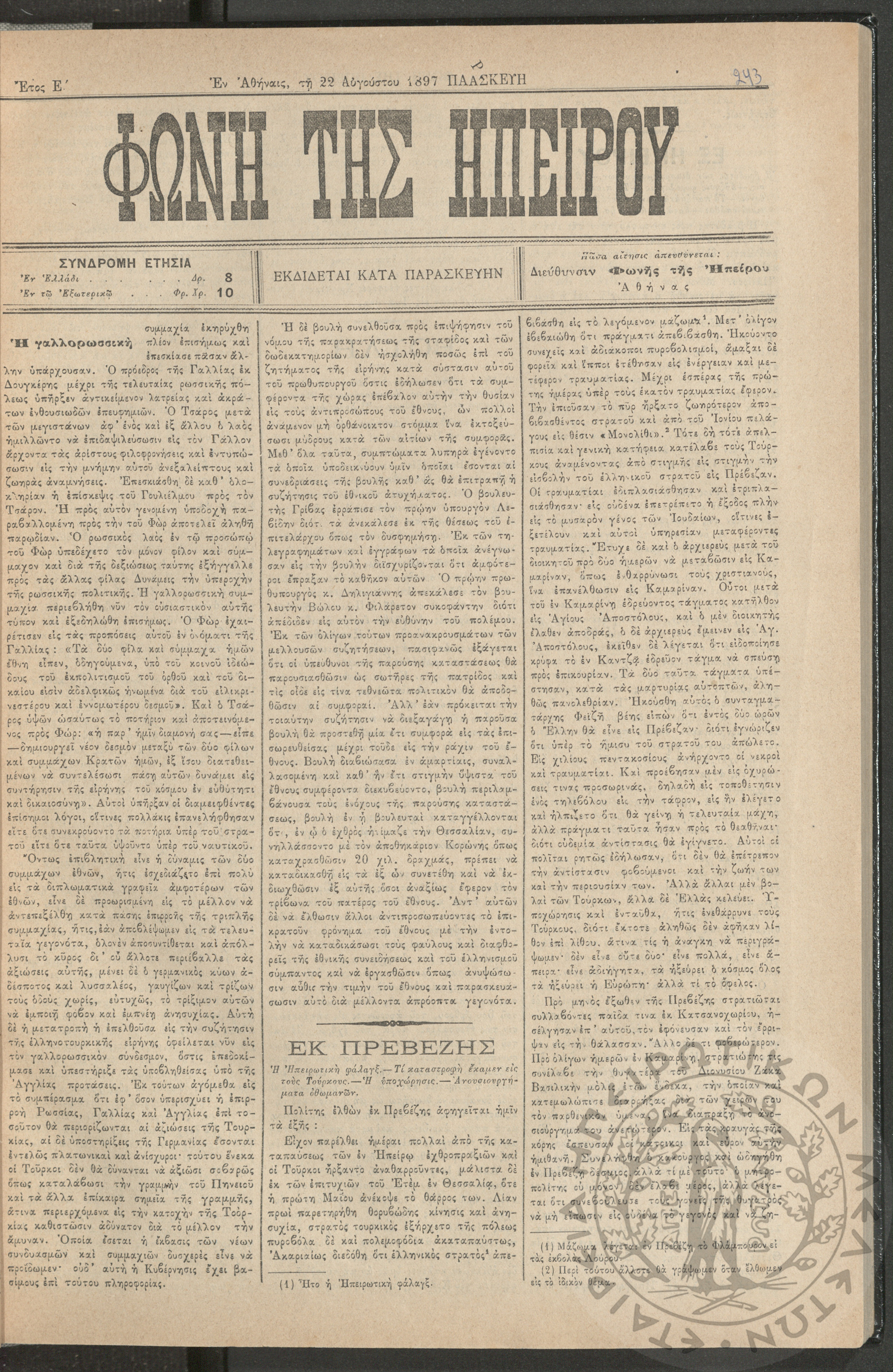 Ηπειρωτικός και Αθηναϊκός Τύπος