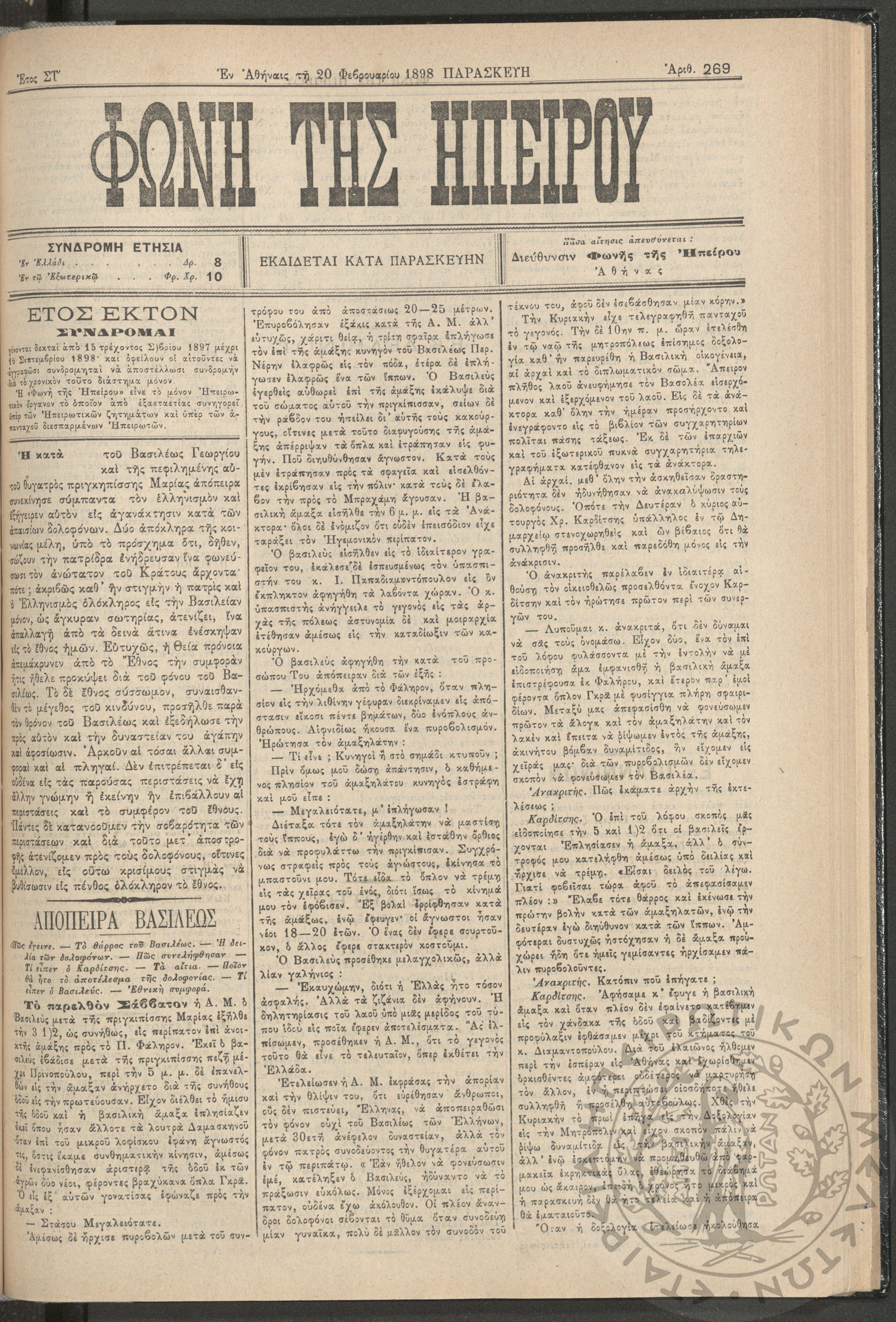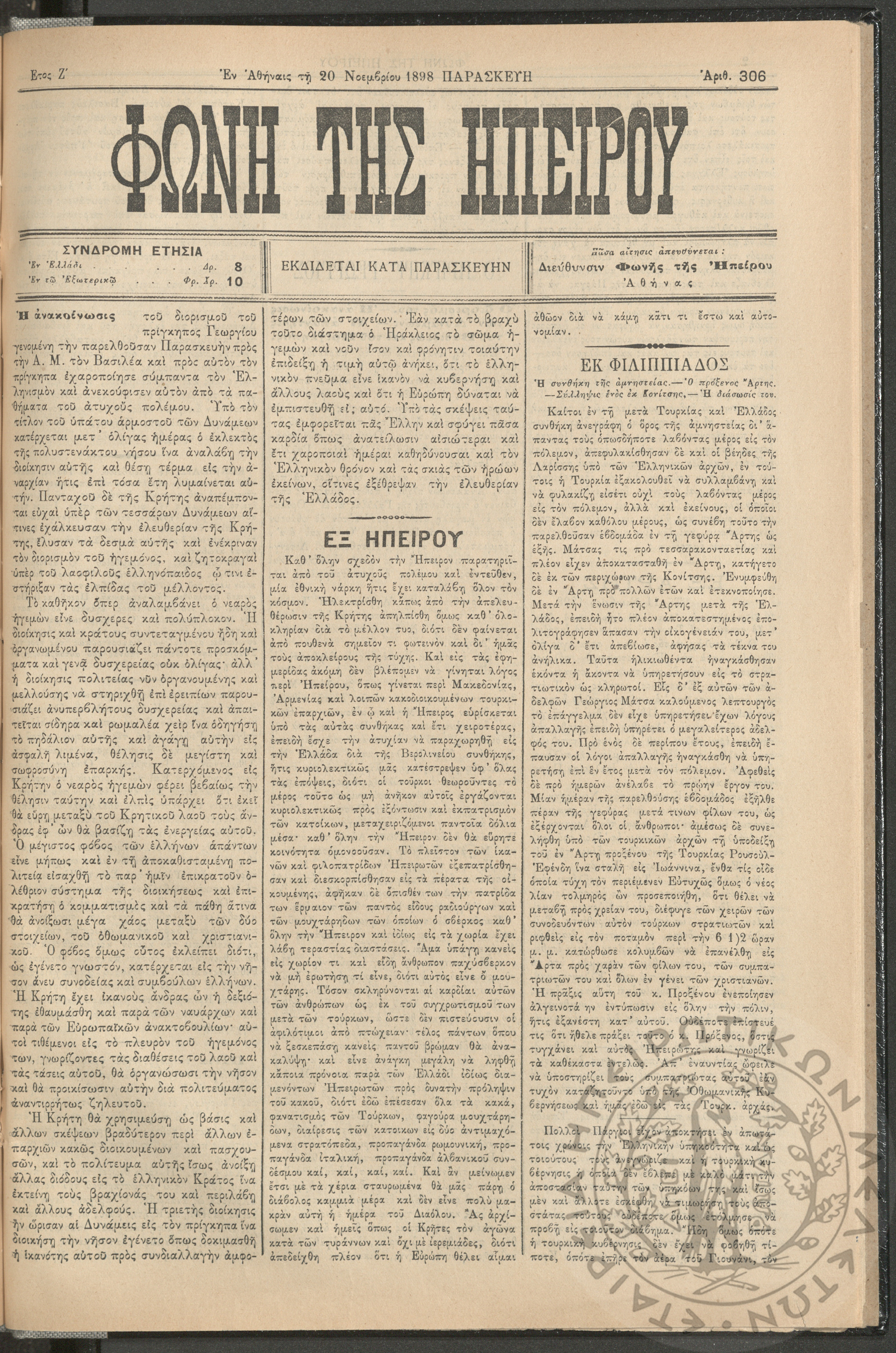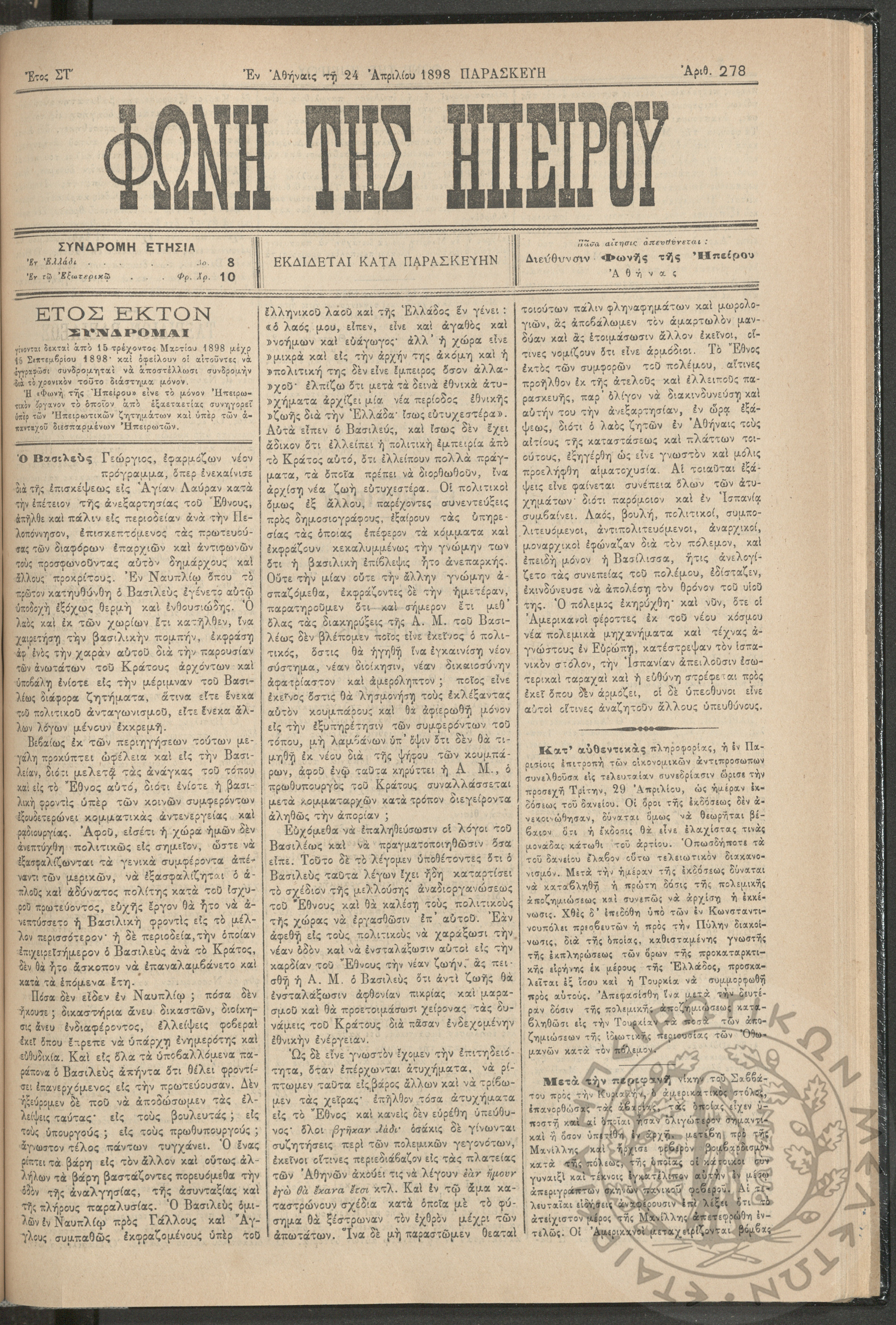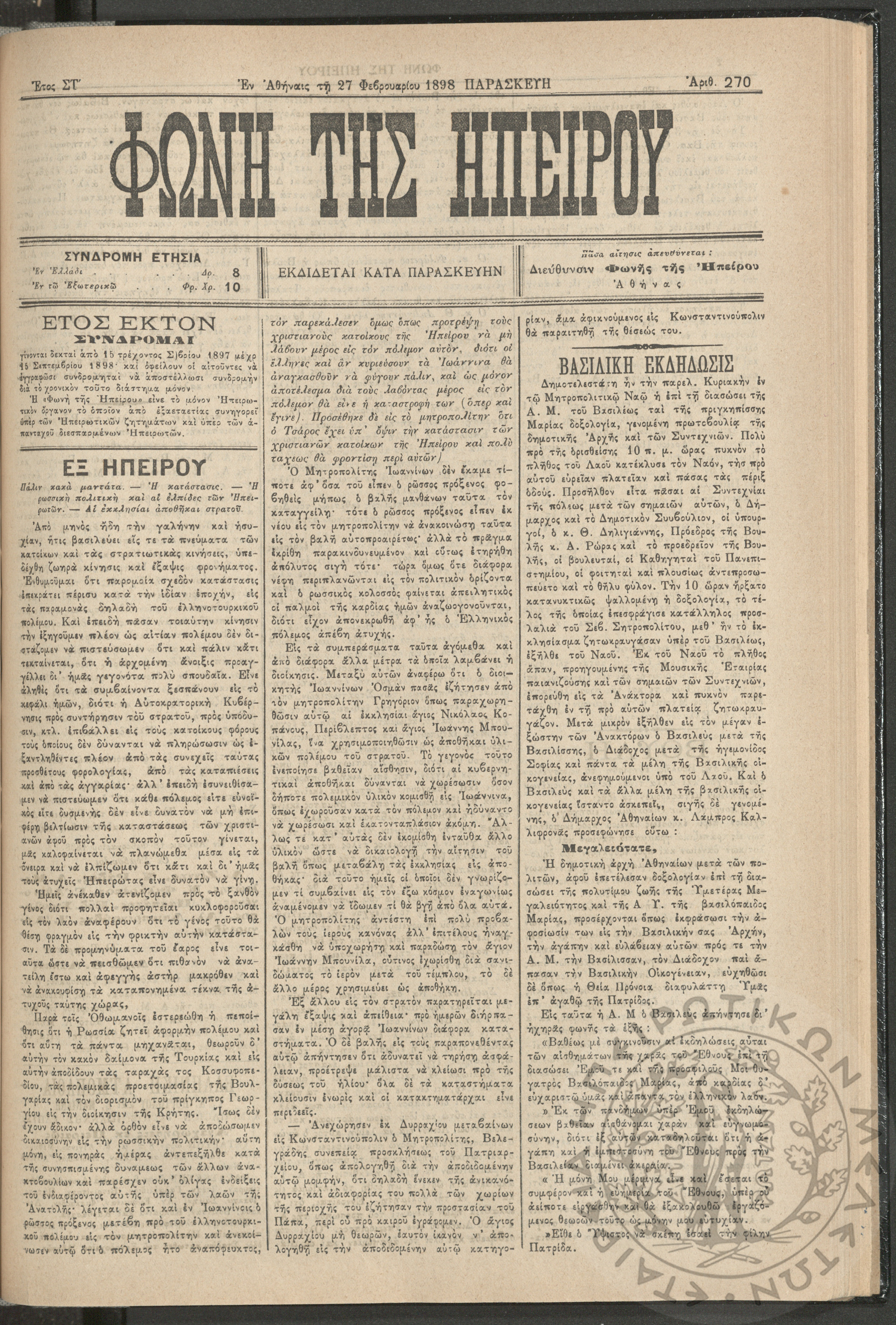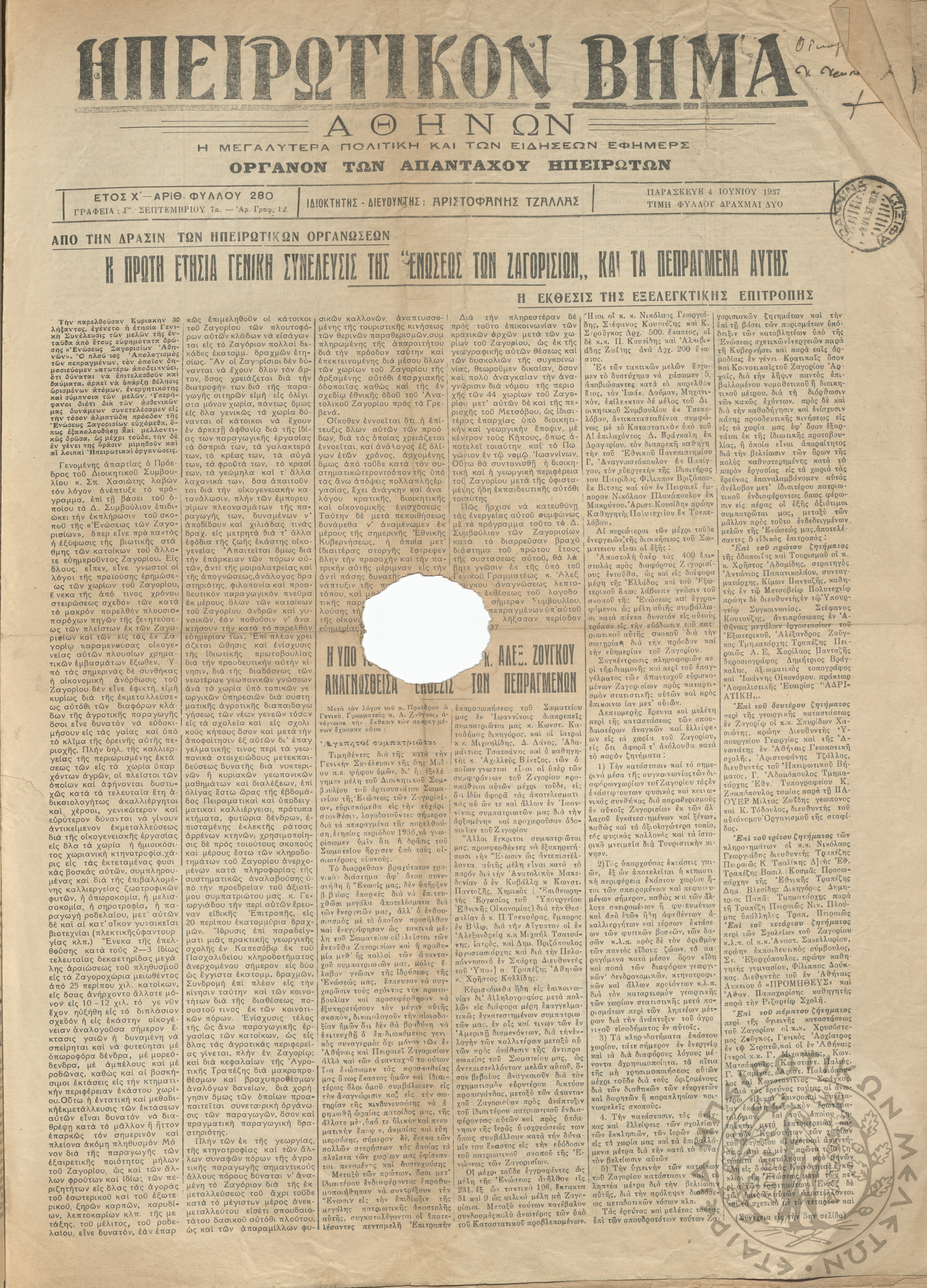 Ηπειρωτικόν Βήμα Αθήνων: η μεγαλυτέρα πολιτική και των ειδήσεων εφημερίς - όργανον των απανταχού Ηπειρωτών, 1937, φ. 280Έτος 10, φ. 280...