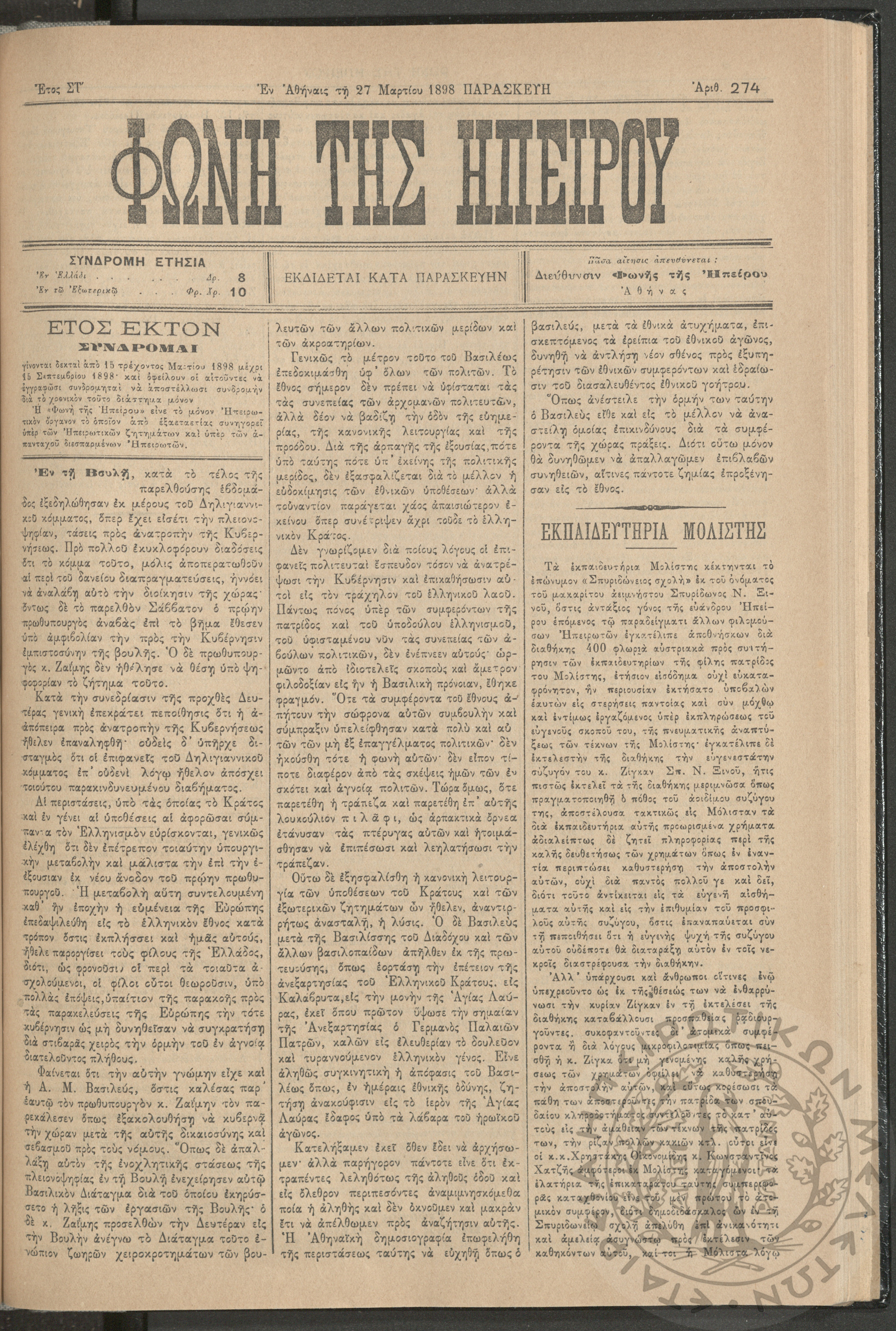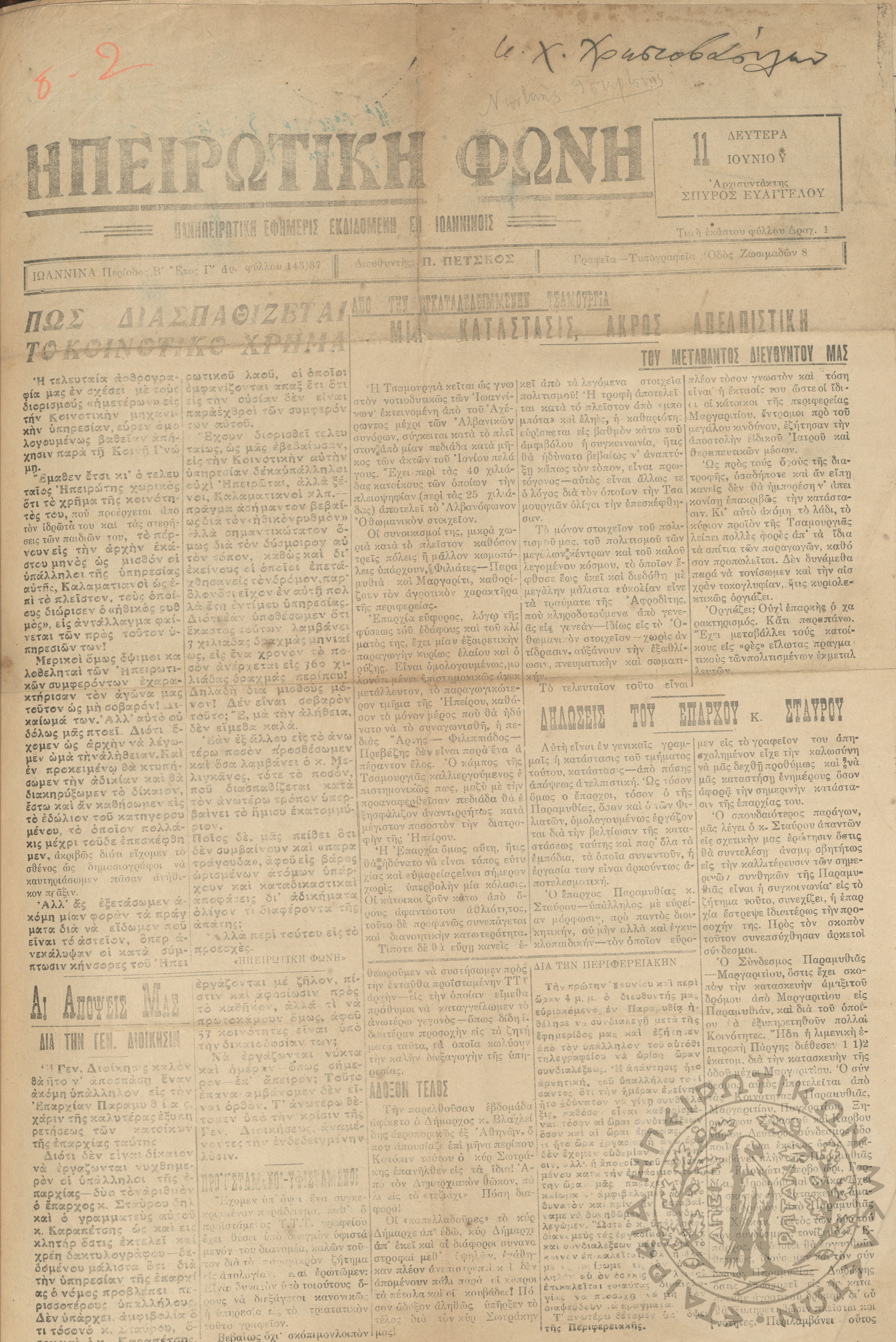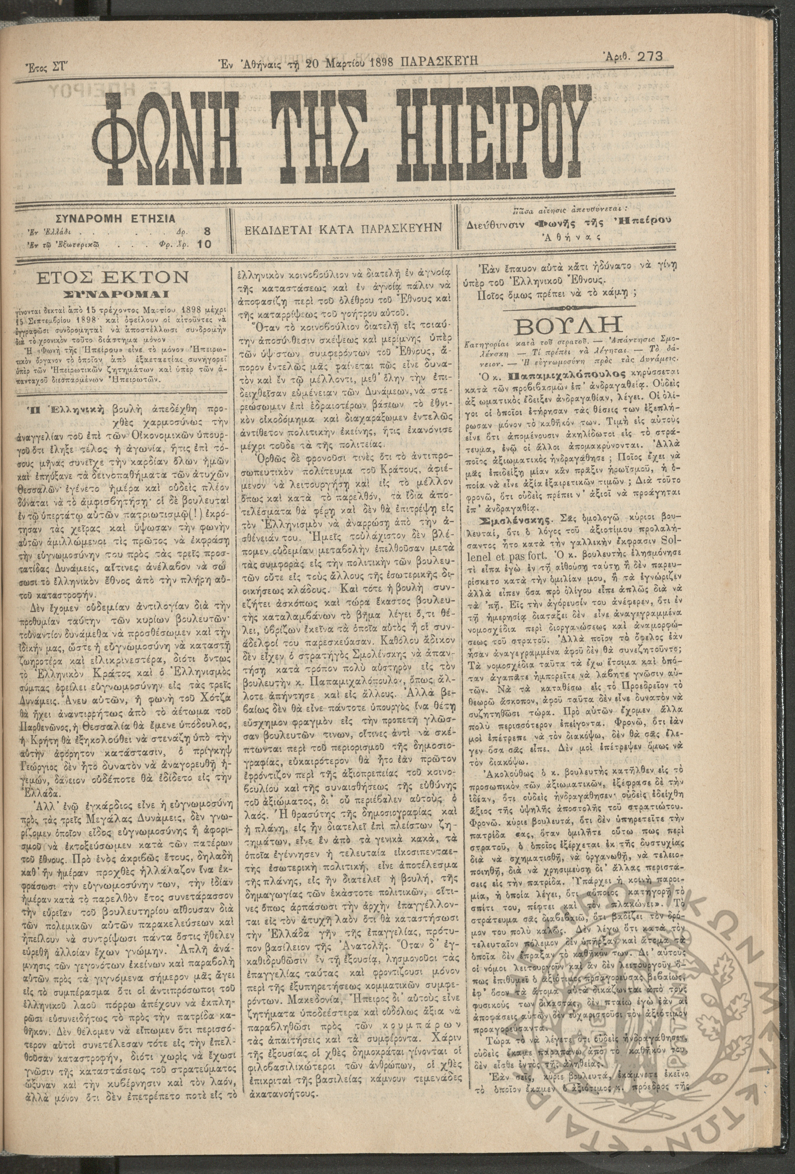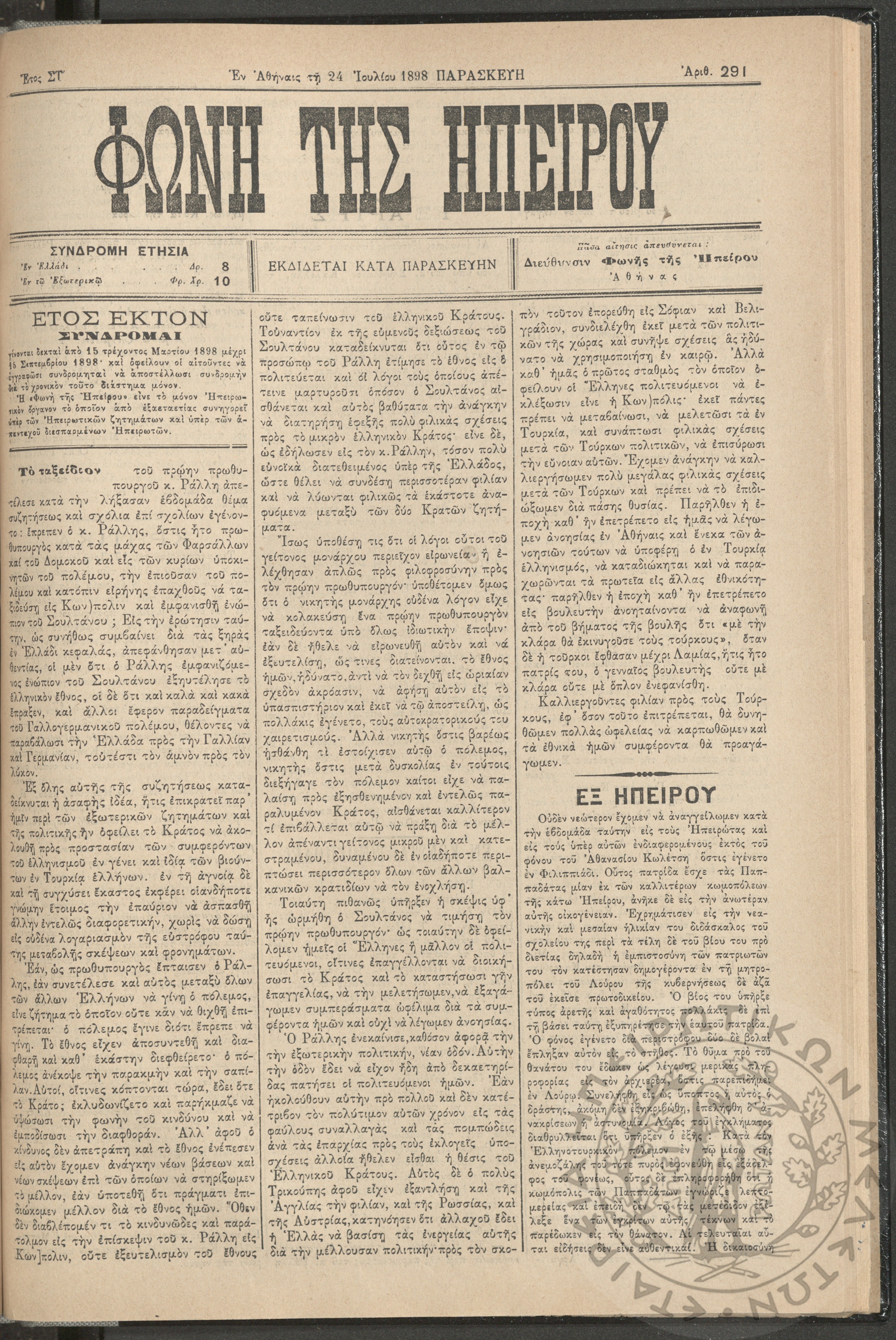 Ηπειρωτικόν Βήμα Αθήνων: η μεγαλυτέρα πολιτική και των ειδήσεων εφημερίς - όργανον των απανταχού Ηπειρωτών, 1937, φ. 280Έτος 10, φ. 280...
