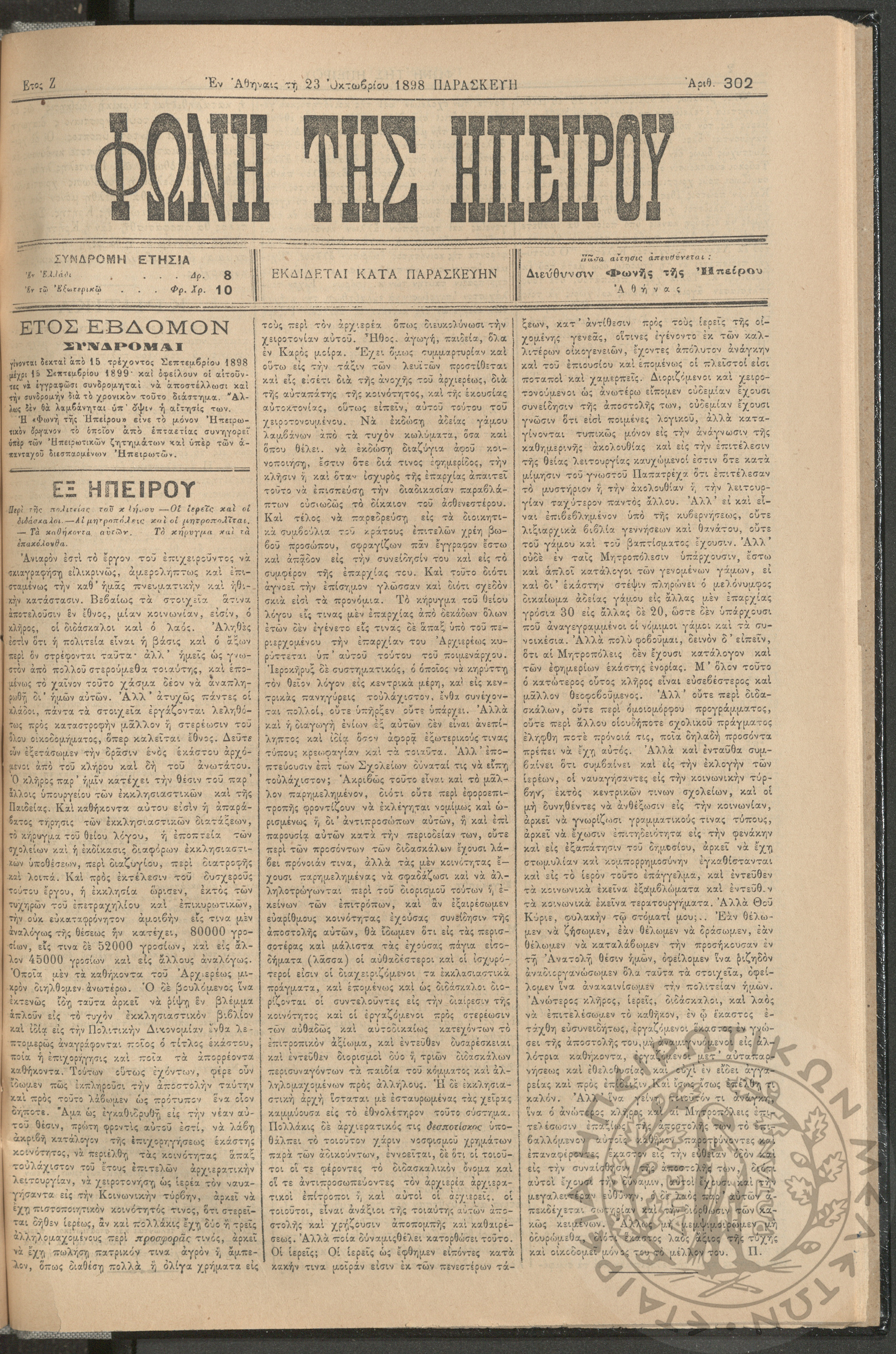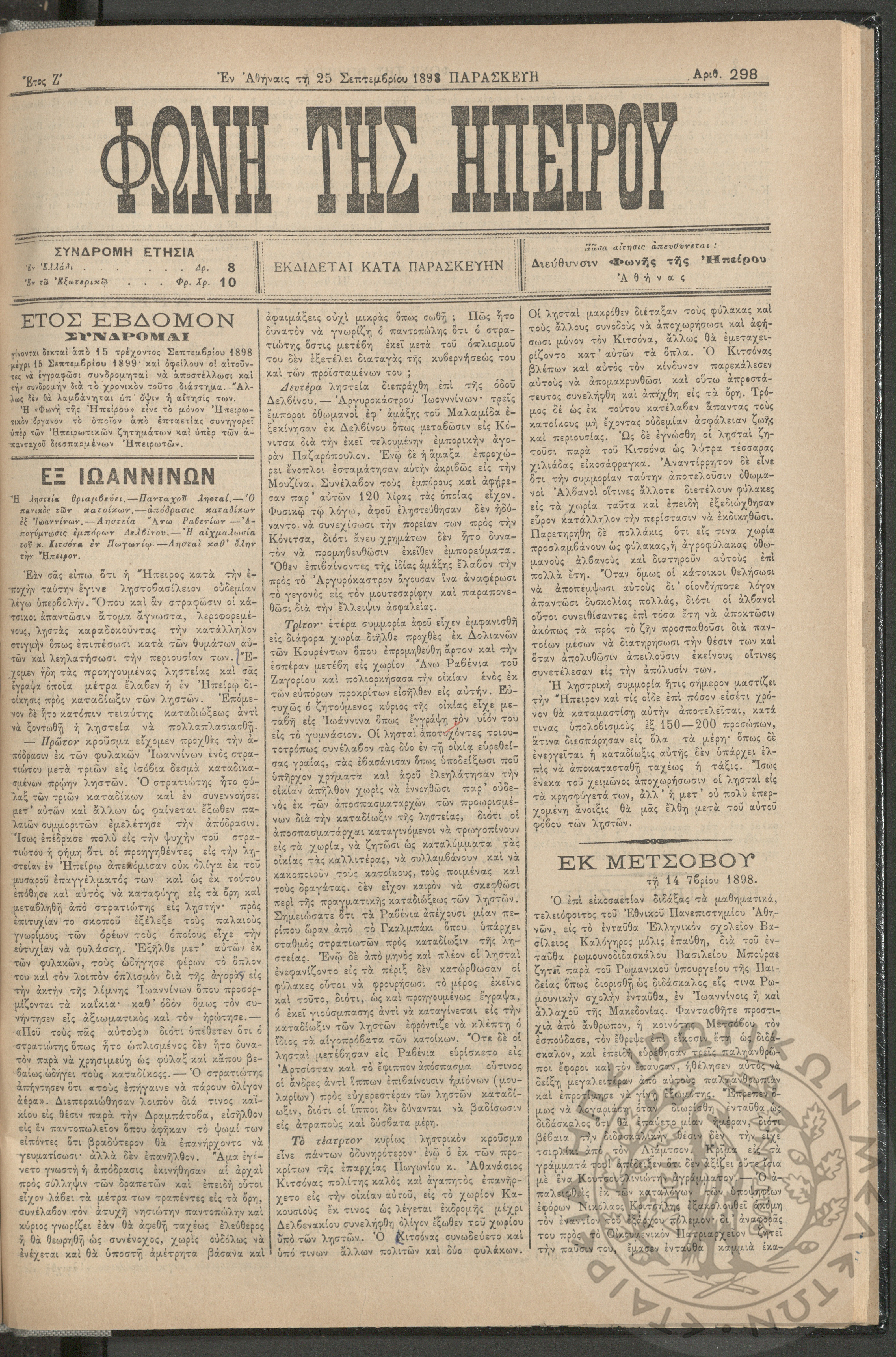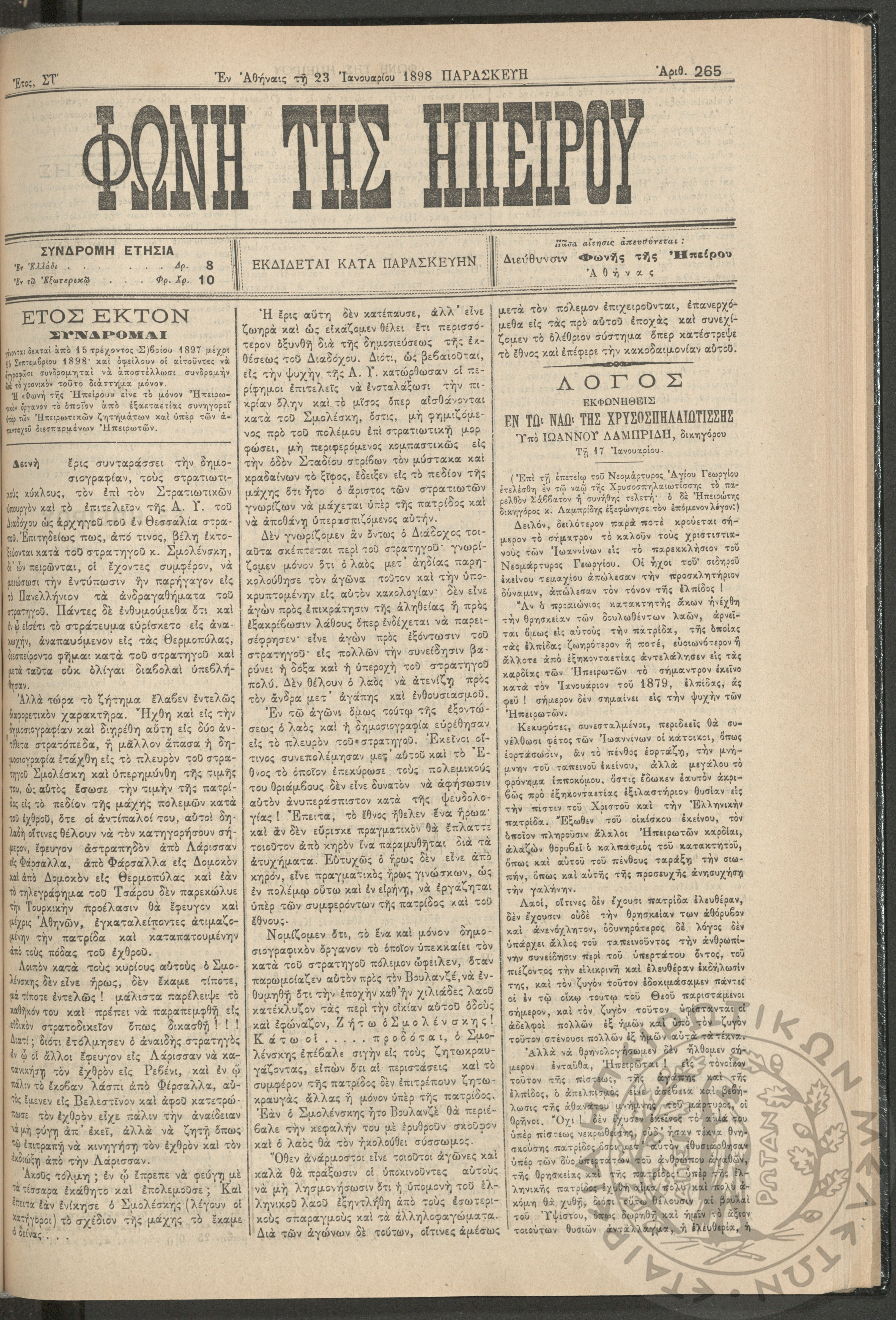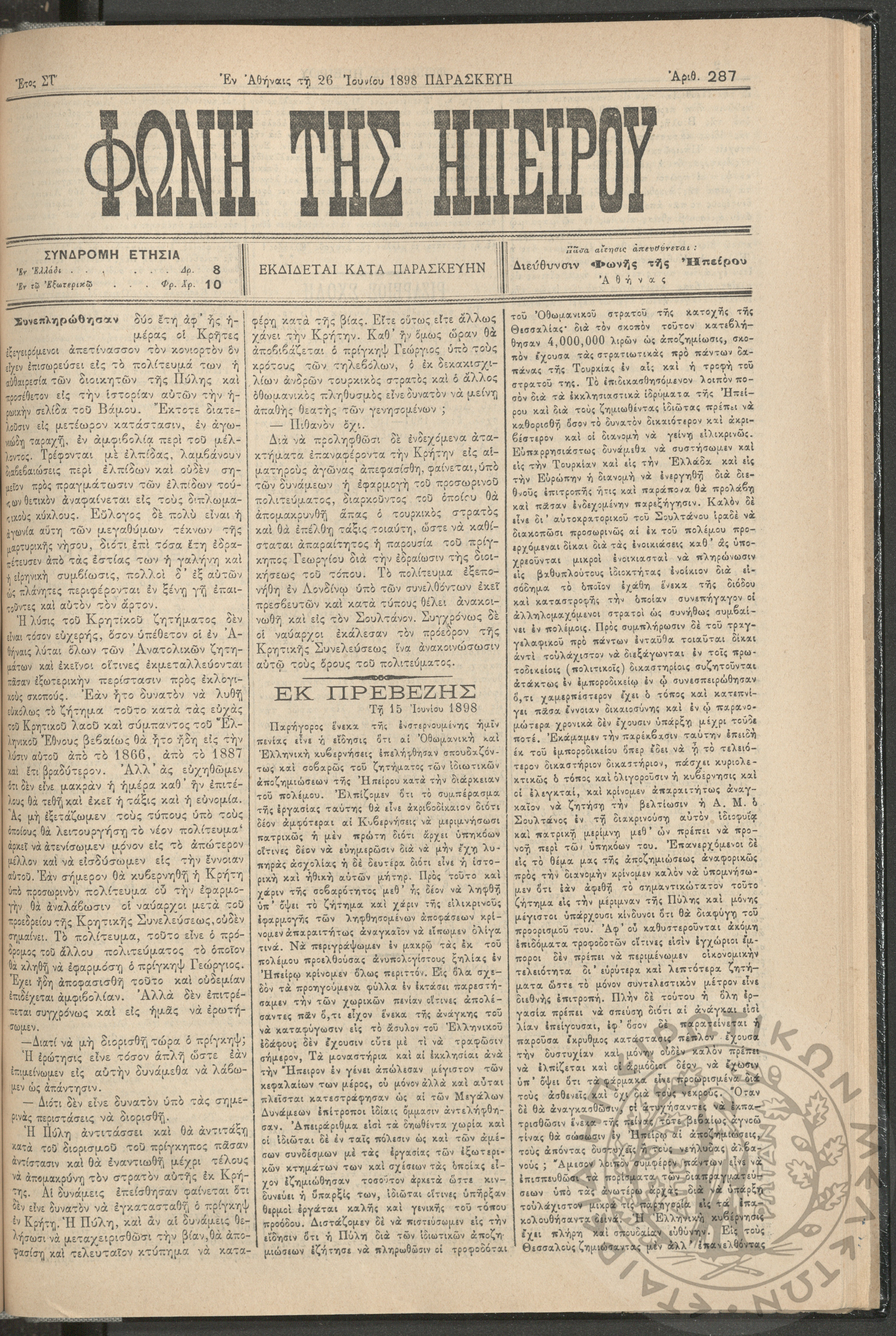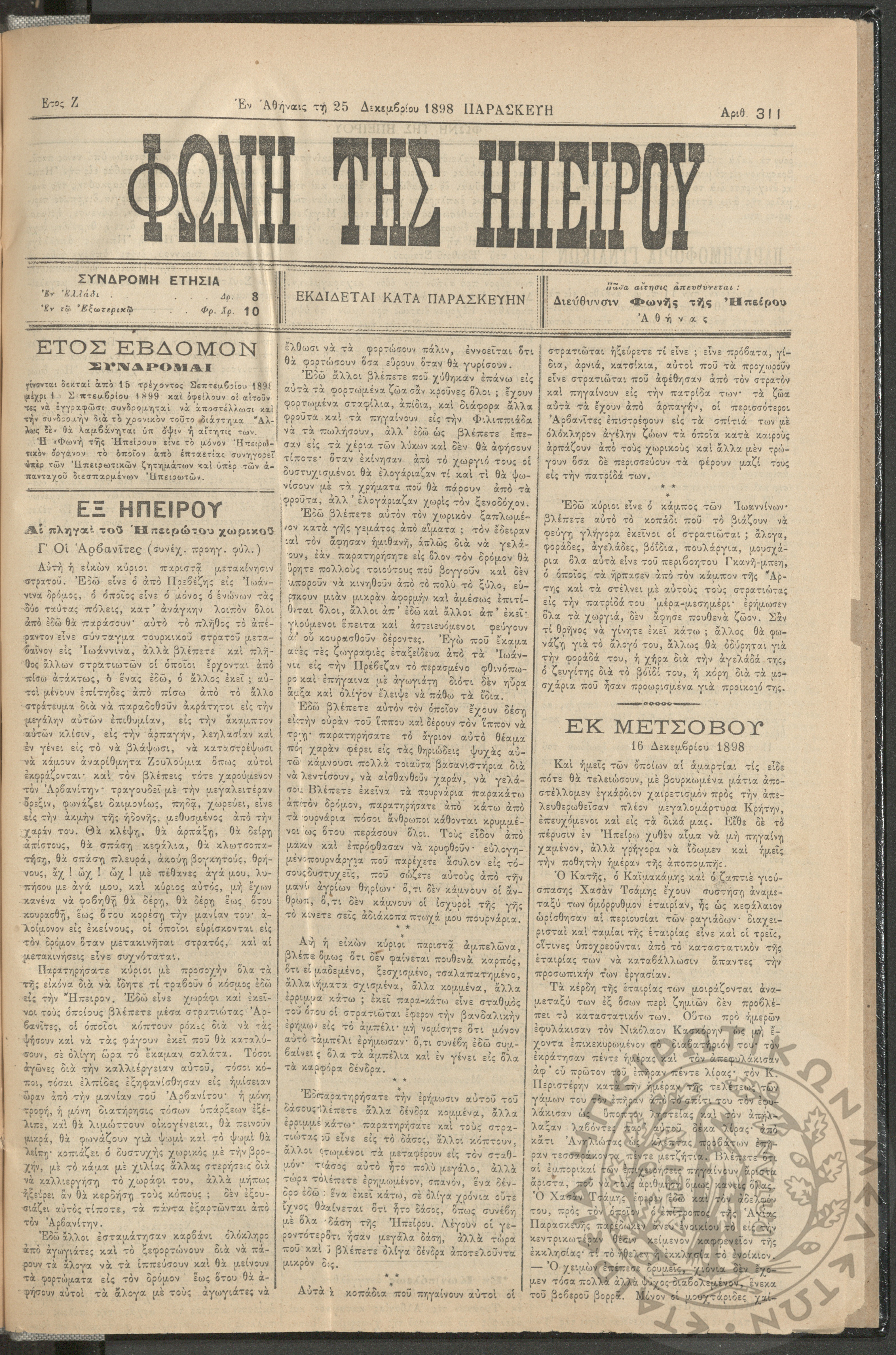 Ηπειρωτικόν Βήμα Αθήνων: η μεγαλυτέρα πολιτική και των ειδήσεων εφημερίς - όργανον των απανταχού Ηπειρωτών, 1937, φ. 280Έτος 10, φ. 280...