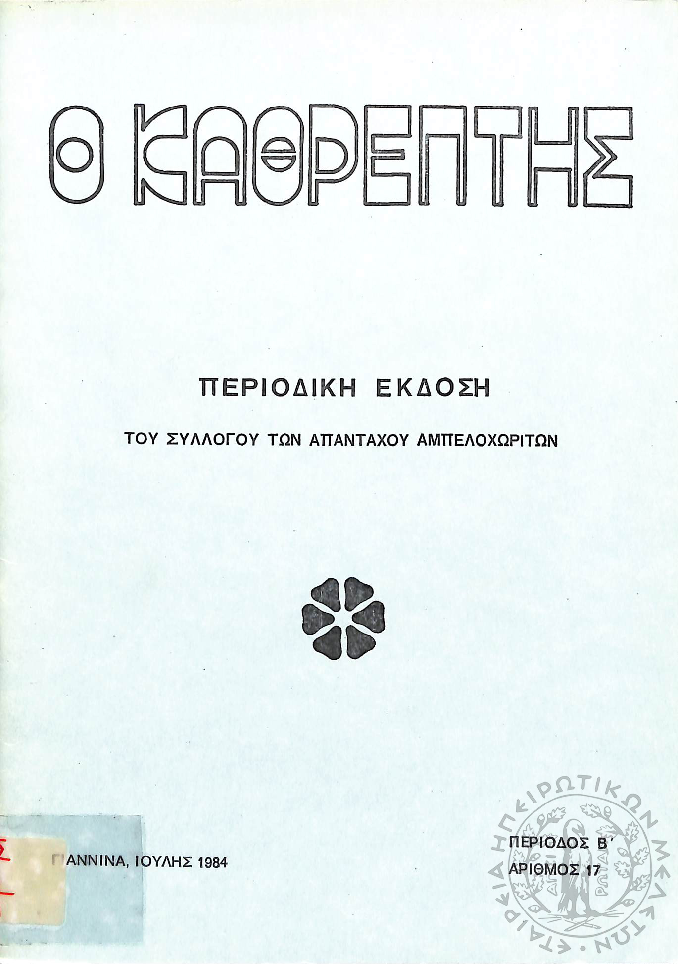 Ο Καθρέφτης: περιοδική έκδοση του συλλόγου των απανταχού Αμπελοχωριτών (τεύχ. 17)Περίοδος Β΄, τεύχ. 17...