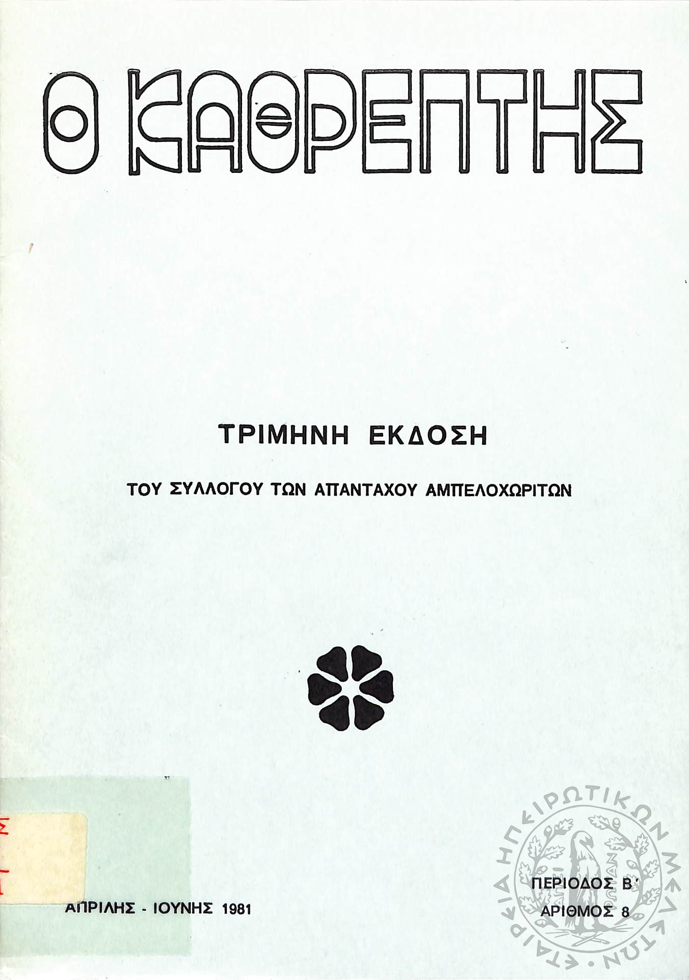 Ο Καθρέφτης: τρίμηνη έκδοση του συλλόγου των απανταχού Αμπελοχωριτών (τεύχ. 8)Περίοδος Β΄, τεύχ. 8...