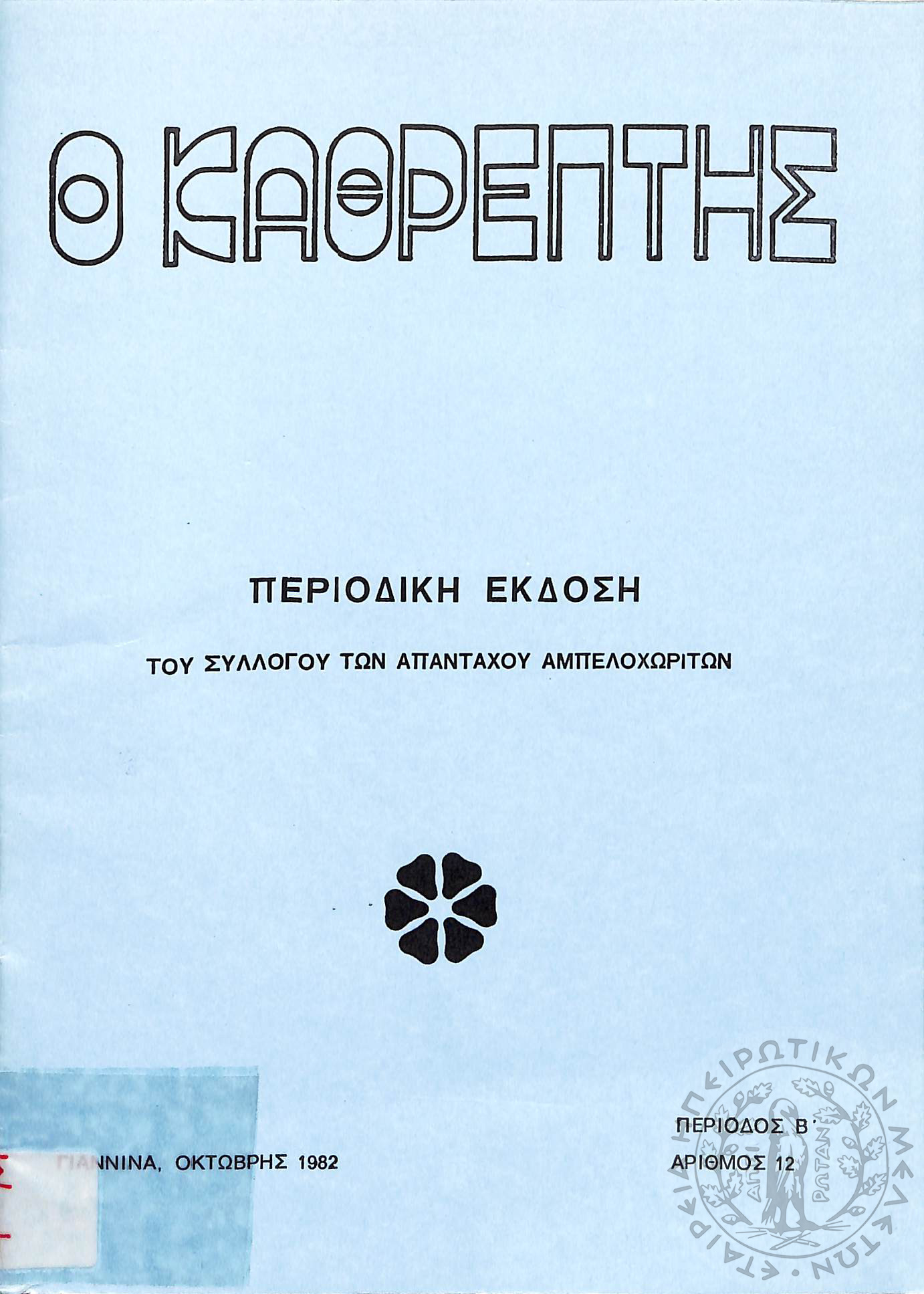 Ο Καθρέφτης: περιοδική έκδοση του συλλόγου των απανταχού Αμπελοχωριτών (τεύχ. 12)Περίοδος Β΄, τεύχ. 12...