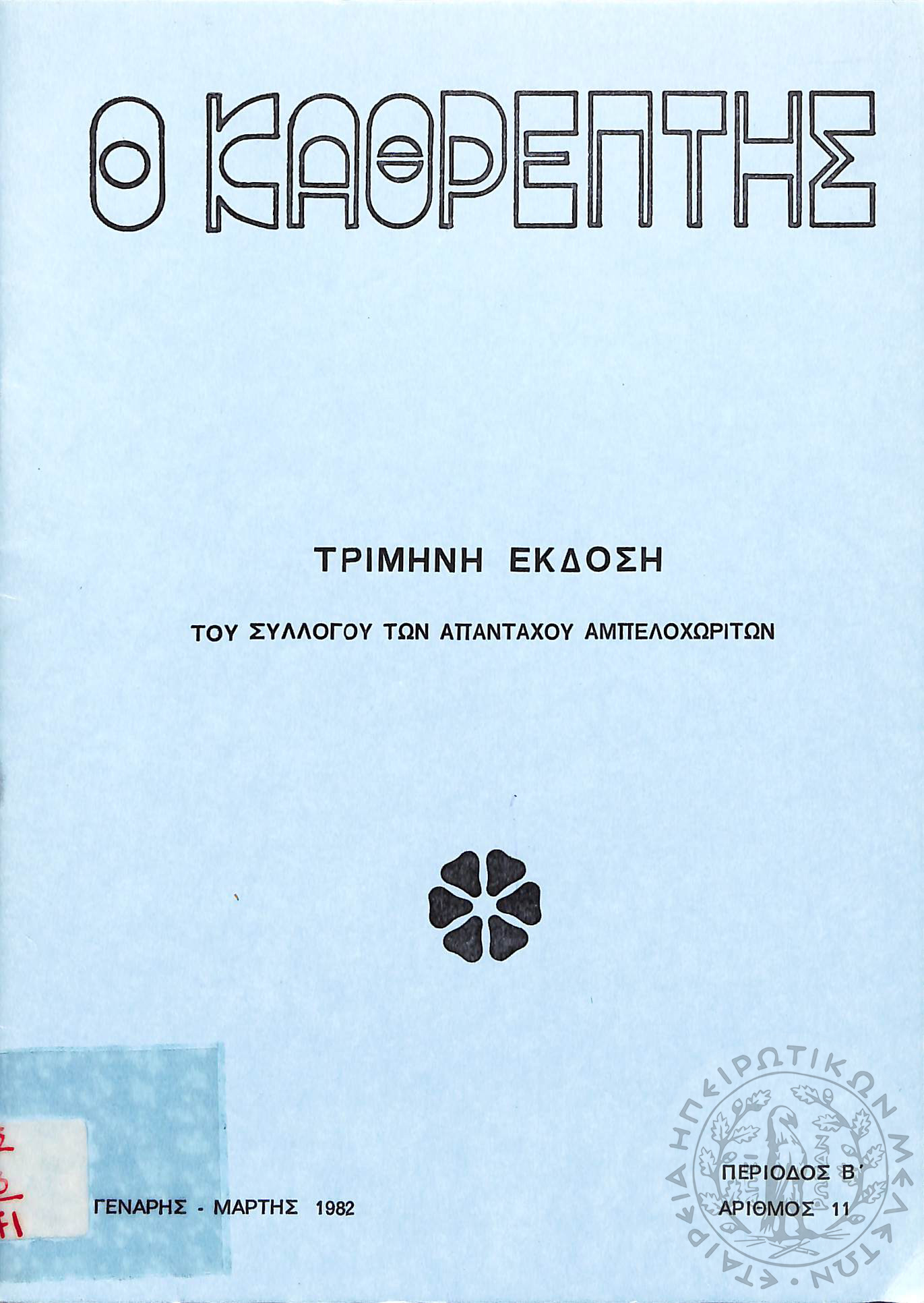 Ο Καθρέφτης: τρίμηνη έκδοση του συλλόγου των απανταχού Αμπελοχωριτών (τεύχ. 11)Περίοδος Β΄, τεύχ. 11...