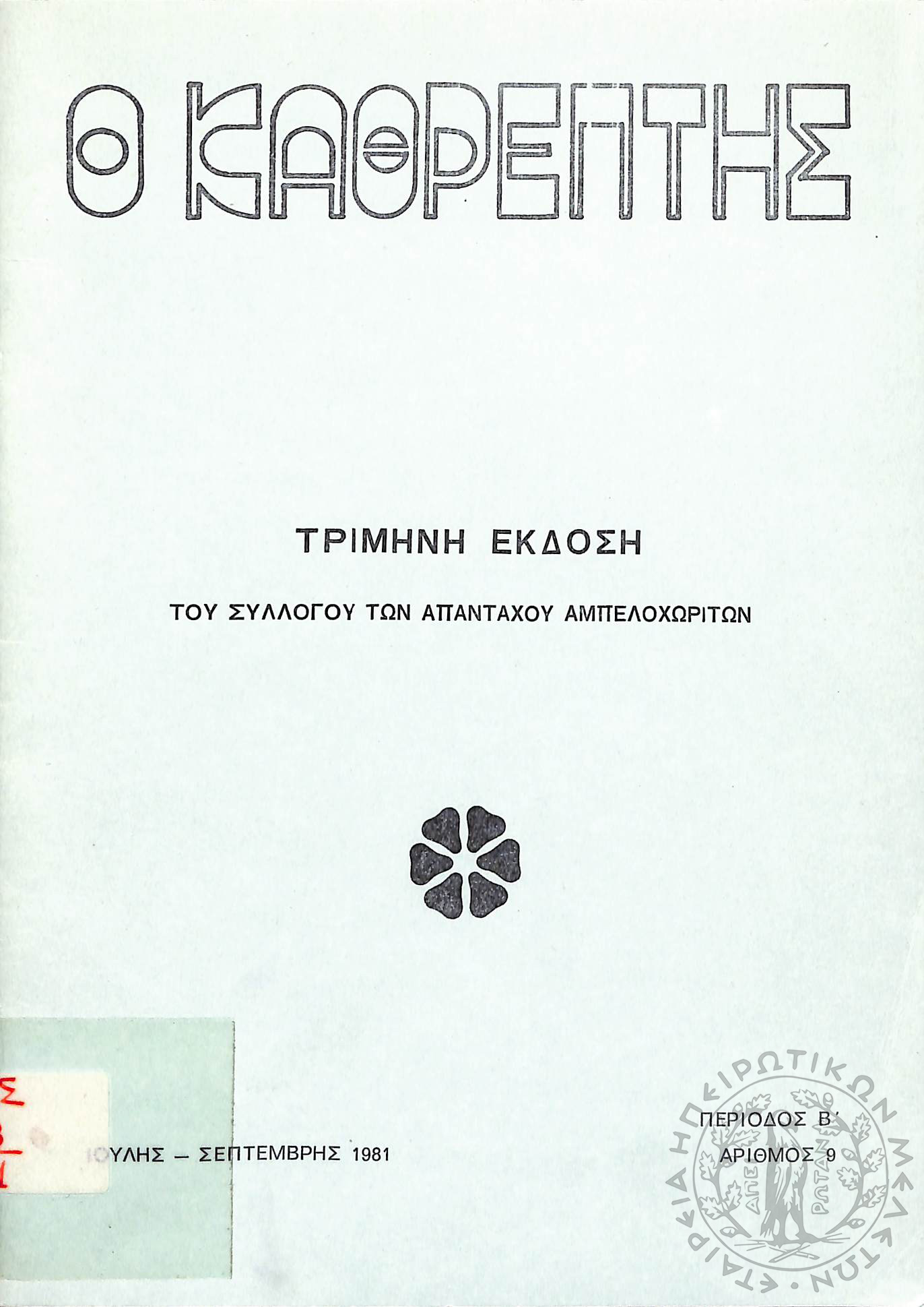 Ο Καθρέφτης: τρίμηνη έκδοση του συλλόγου των απανταχού Αμπελοχωριτών (τεύχ. 9)Περίοδος Β΄, τεύχ. 9...