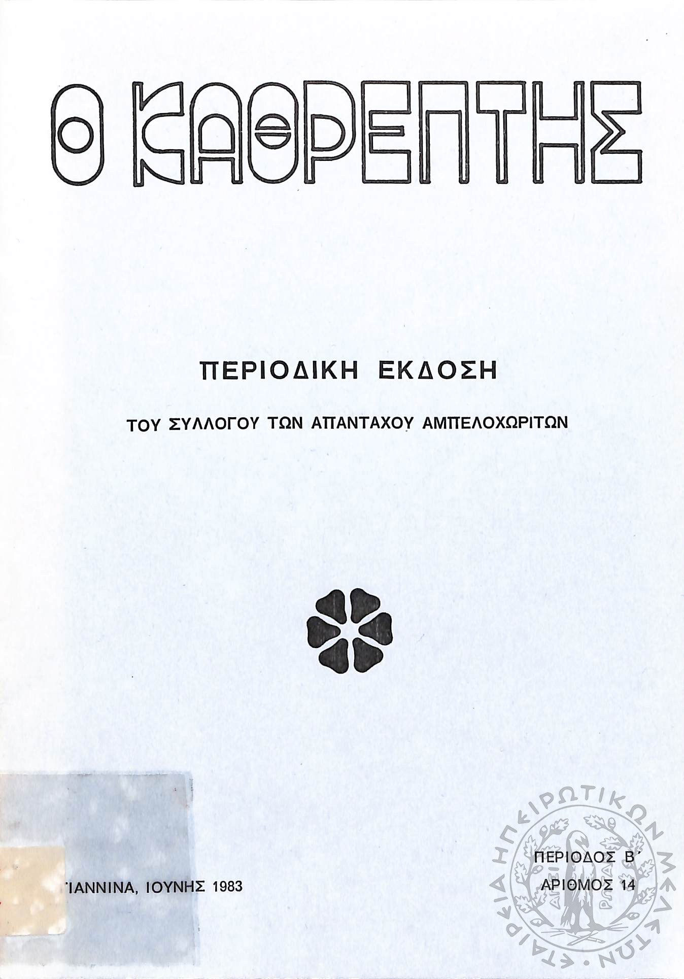 Ο Καθρέφτης: περιοδική έκδοση του συλλόγου των απανταχού Αμπελοχωριτών (τεύχ. 14)Περίοδος Β΄, τεύχ. 14...
