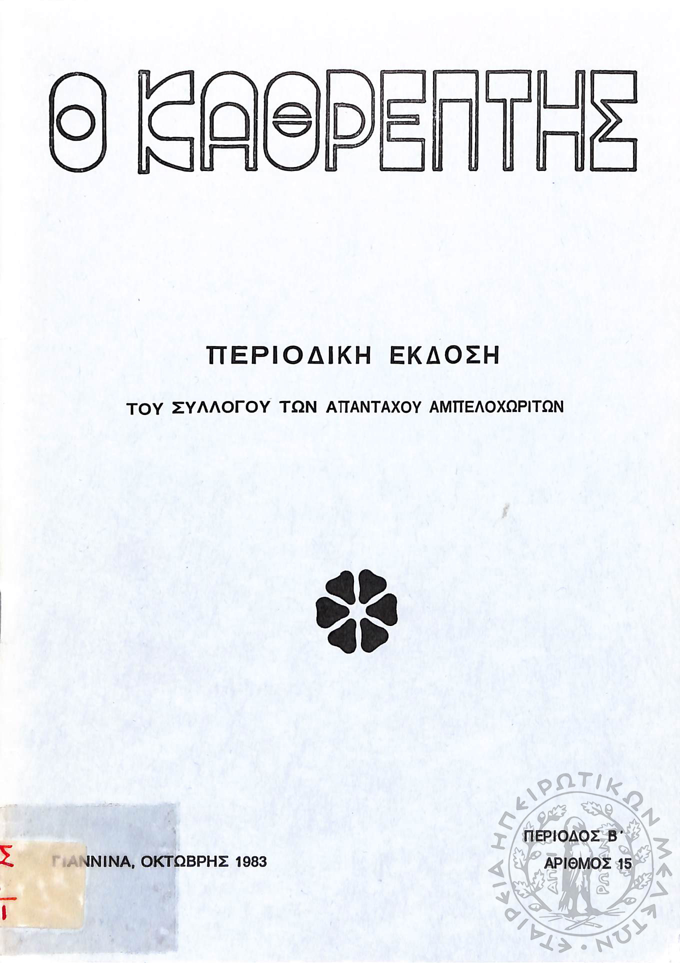 Ο Καθρέφτης: περιοδική έκδοση του συλλόγου των απανταχού Αμπελοχωριτών (τεύχ. 15)Περίοδος Β΄, τεύχ. 15...
