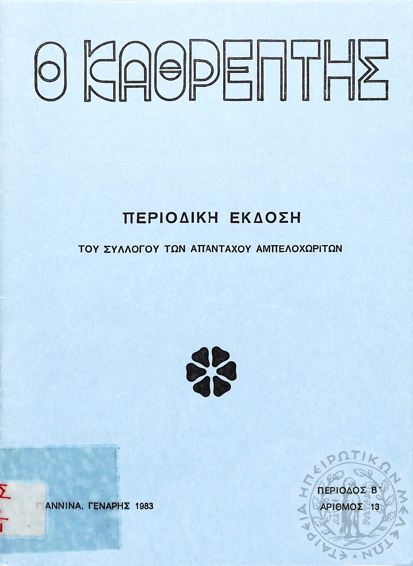 Ο Καθρέφτης: περιοδική έκδοση του συλλόγου των απανταχού Αμπελοχωριτών (τεύχ. 13)Περίοδος Β΄, τεύχ. 13...