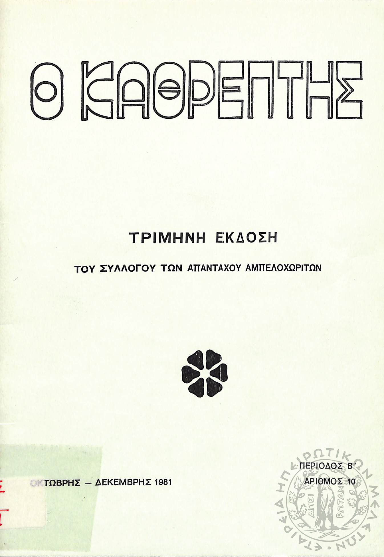 Ο Καθρέφτης: τρίμηνη έκδοση του συλλόγου των απανταχού Αμπελοχωριτών (τεύχ. 10)Περίοδος Β΄, τεύχ. 10...