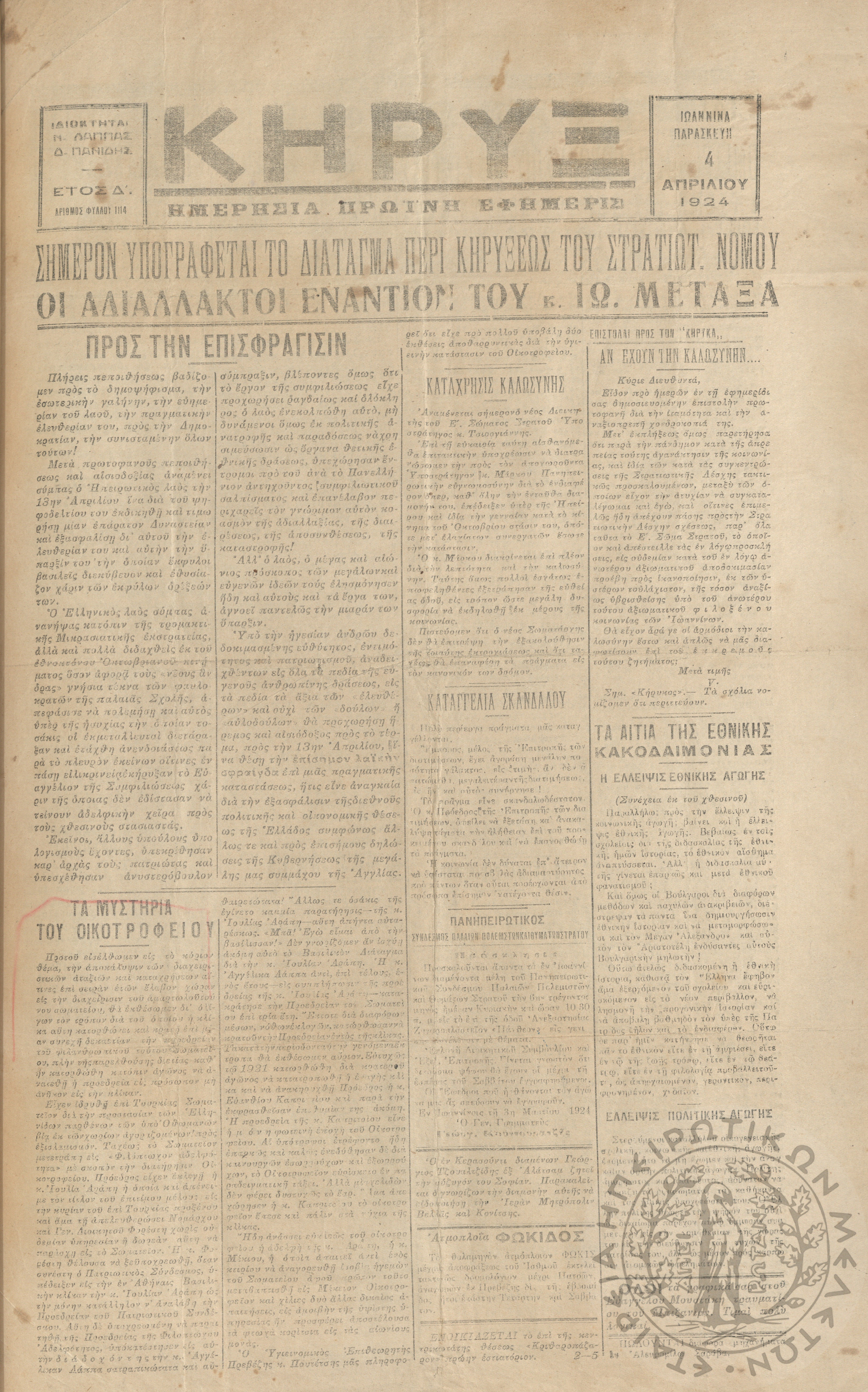 - Ψηφιακό Αποθετήριο Ανάδειξης και προβολής των ιστορικών τεκμηρίων της Εταιρείας Ηπειρωτικών Μελετών