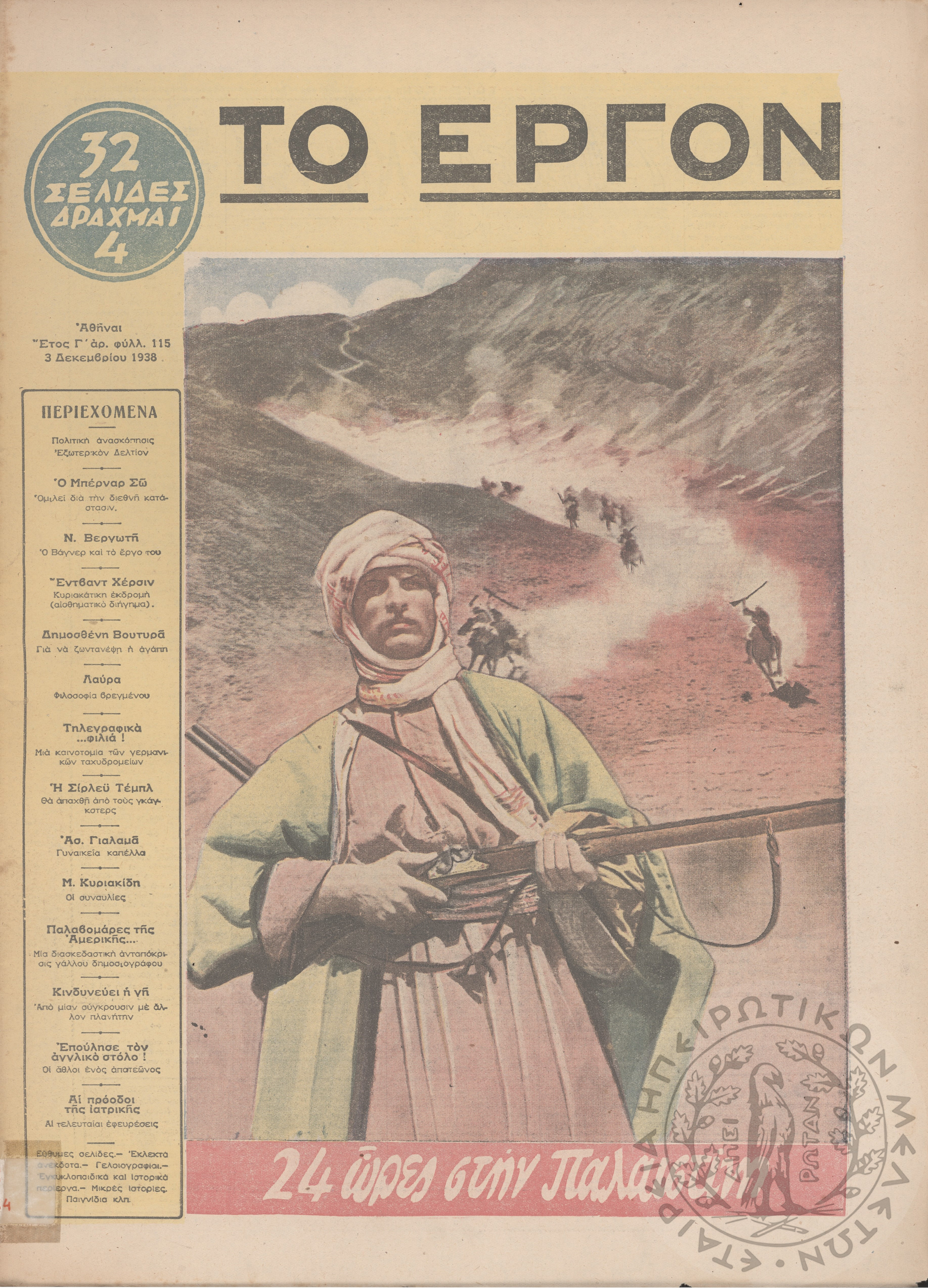 Το Έργον: η μεγαλυτέρα εβδομαδιαία εικονογραφημένη πολιτική, οικονομική και φιλολογική επιθεώρησις (τεύχ. 115)Έτος Γ΄, τεύχ. 115...