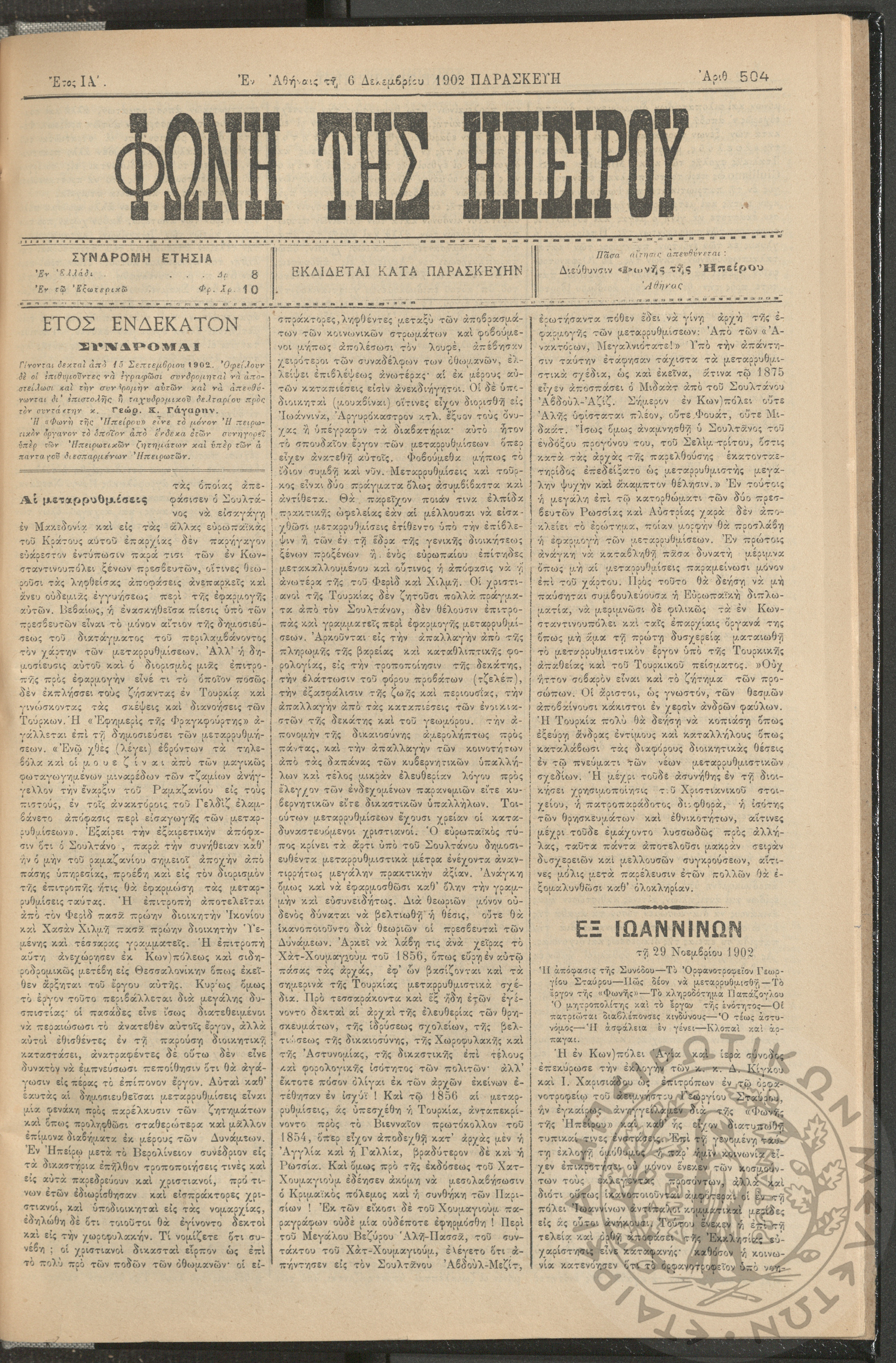 Φωνή της Ηπείρου, 1902, φ. 504