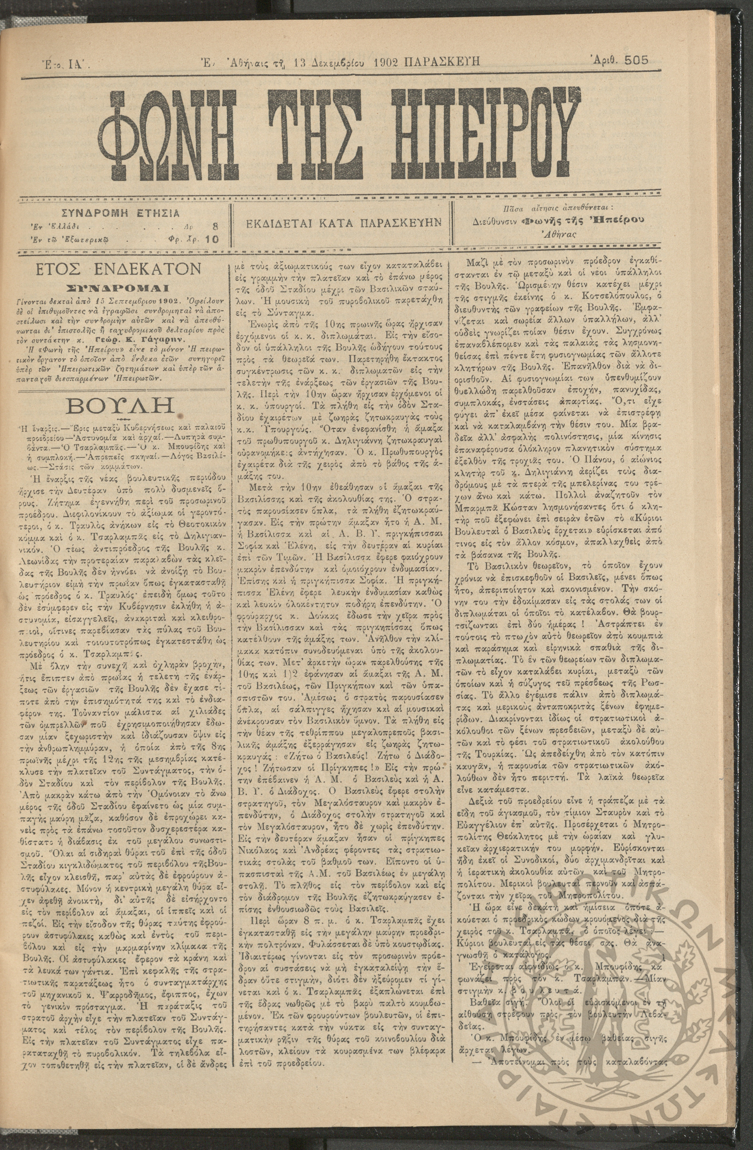Φωνή της Ηπείρου, 1902, φ. 505