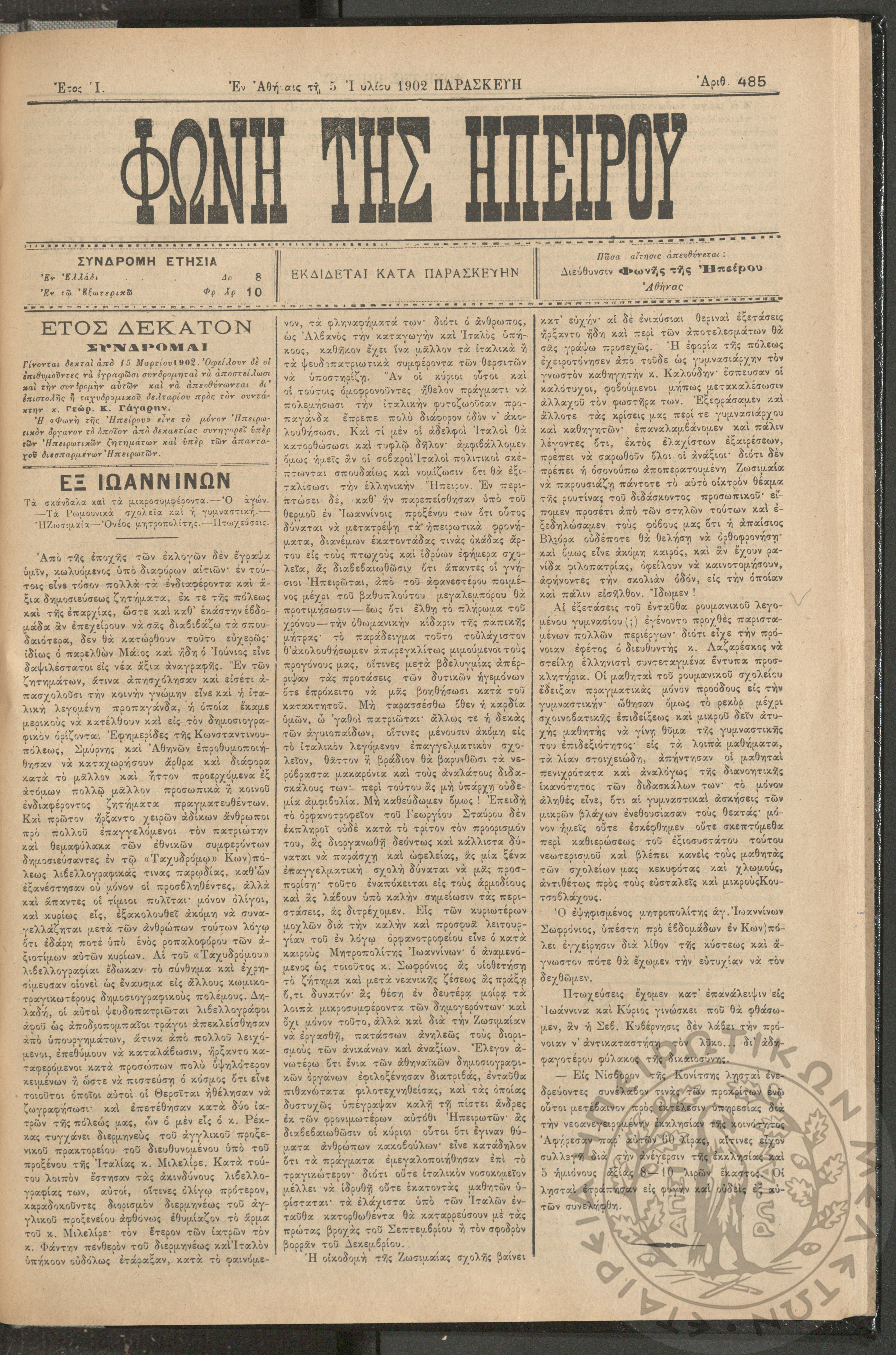 Φωνή της Ηπείρου, 1902, φ. 485
