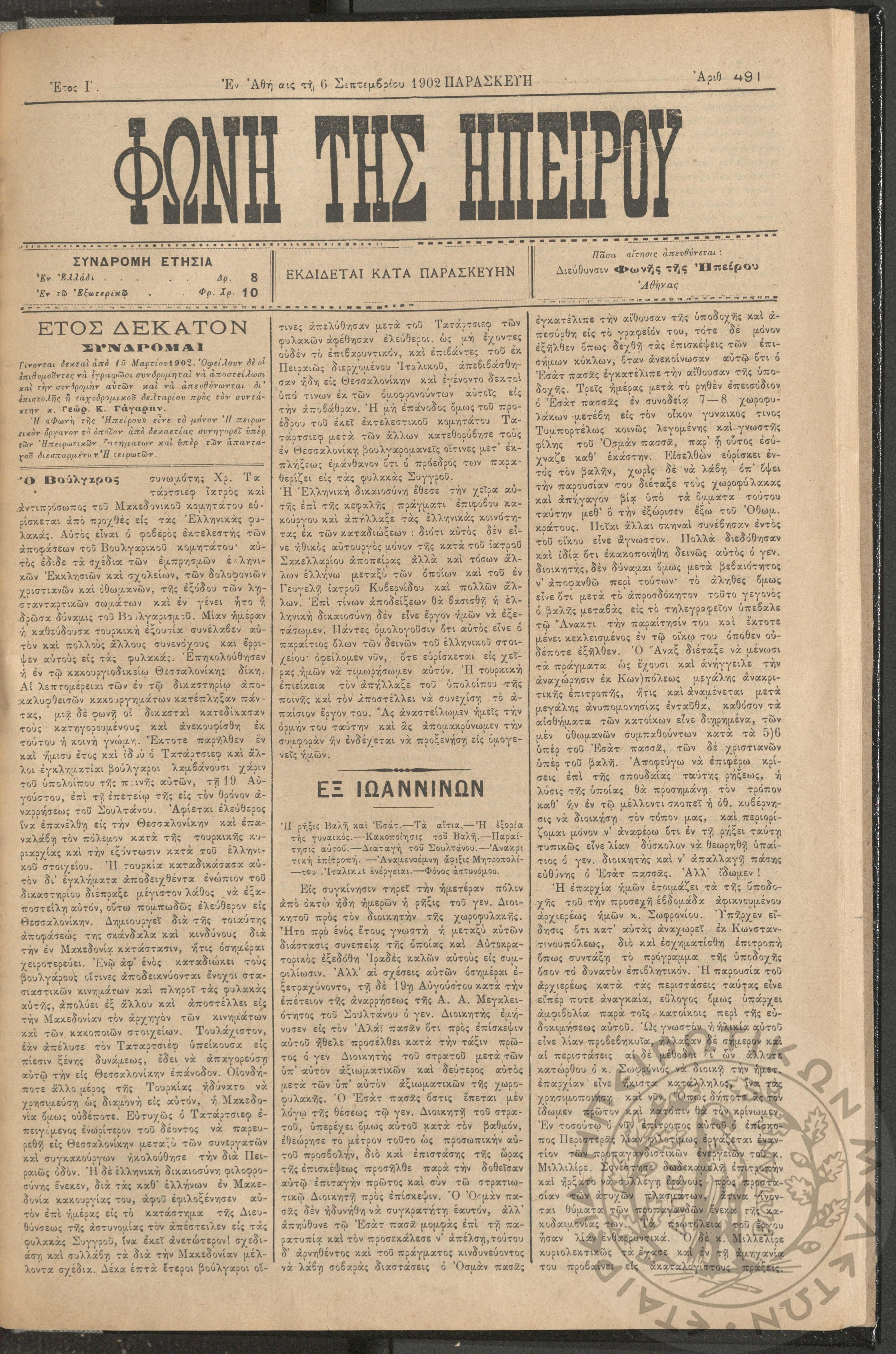 Φωνή της Ηπείρου, 1902, φ. 491