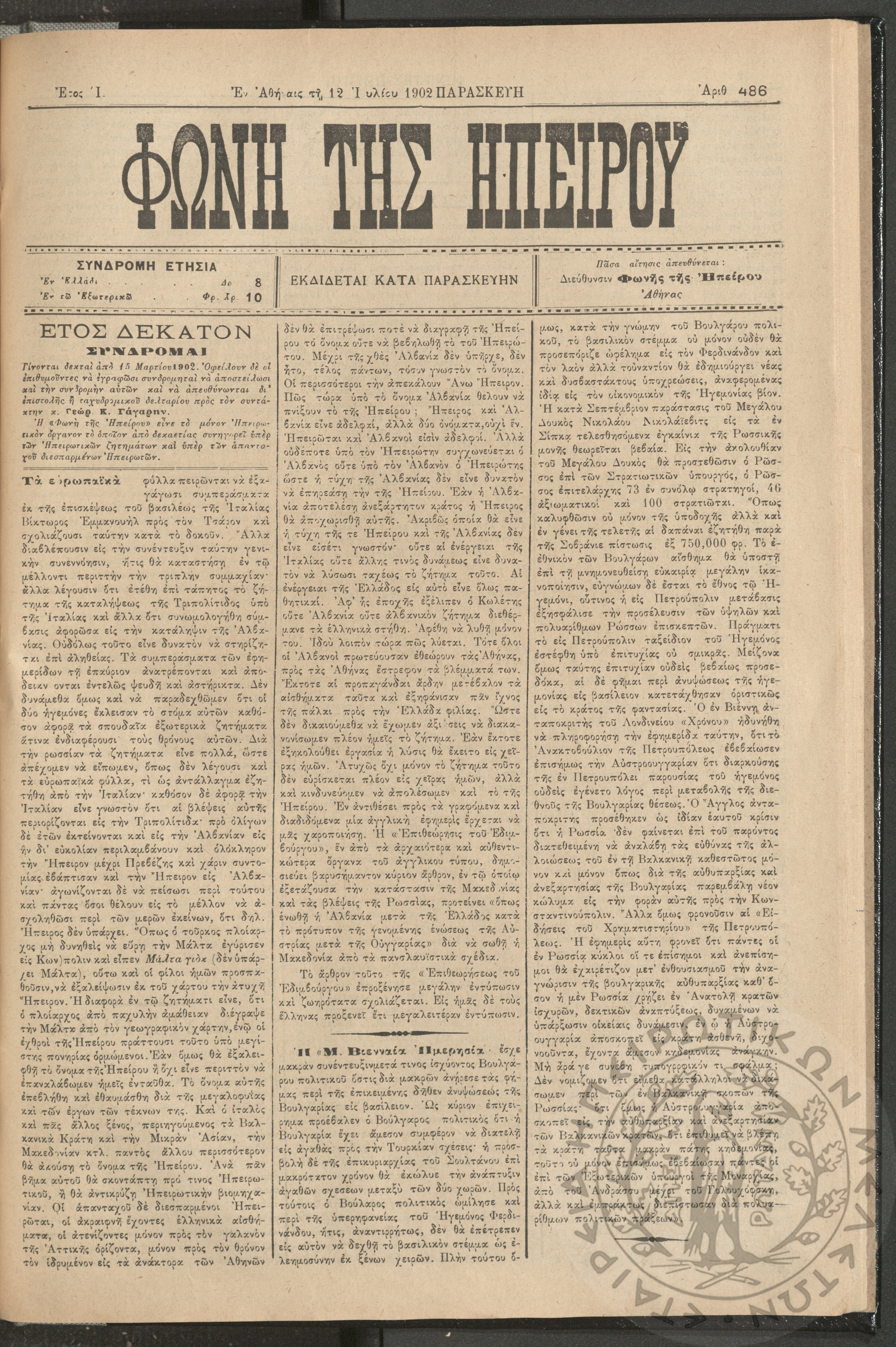 Φωνή της Ηπείρου, 1902, φ. 486