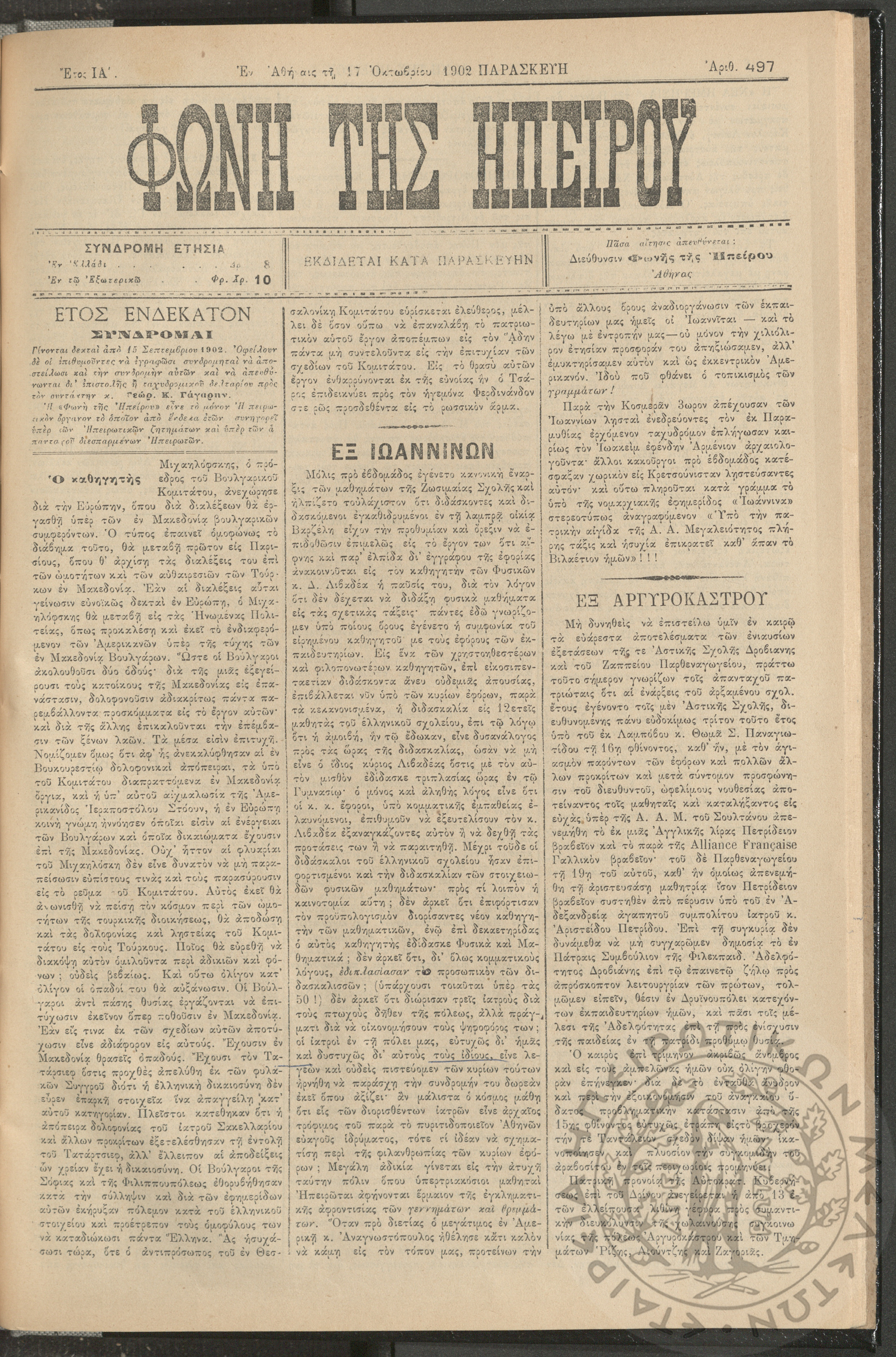 Φωνή της Ηπείρου, 1902, φ. 497