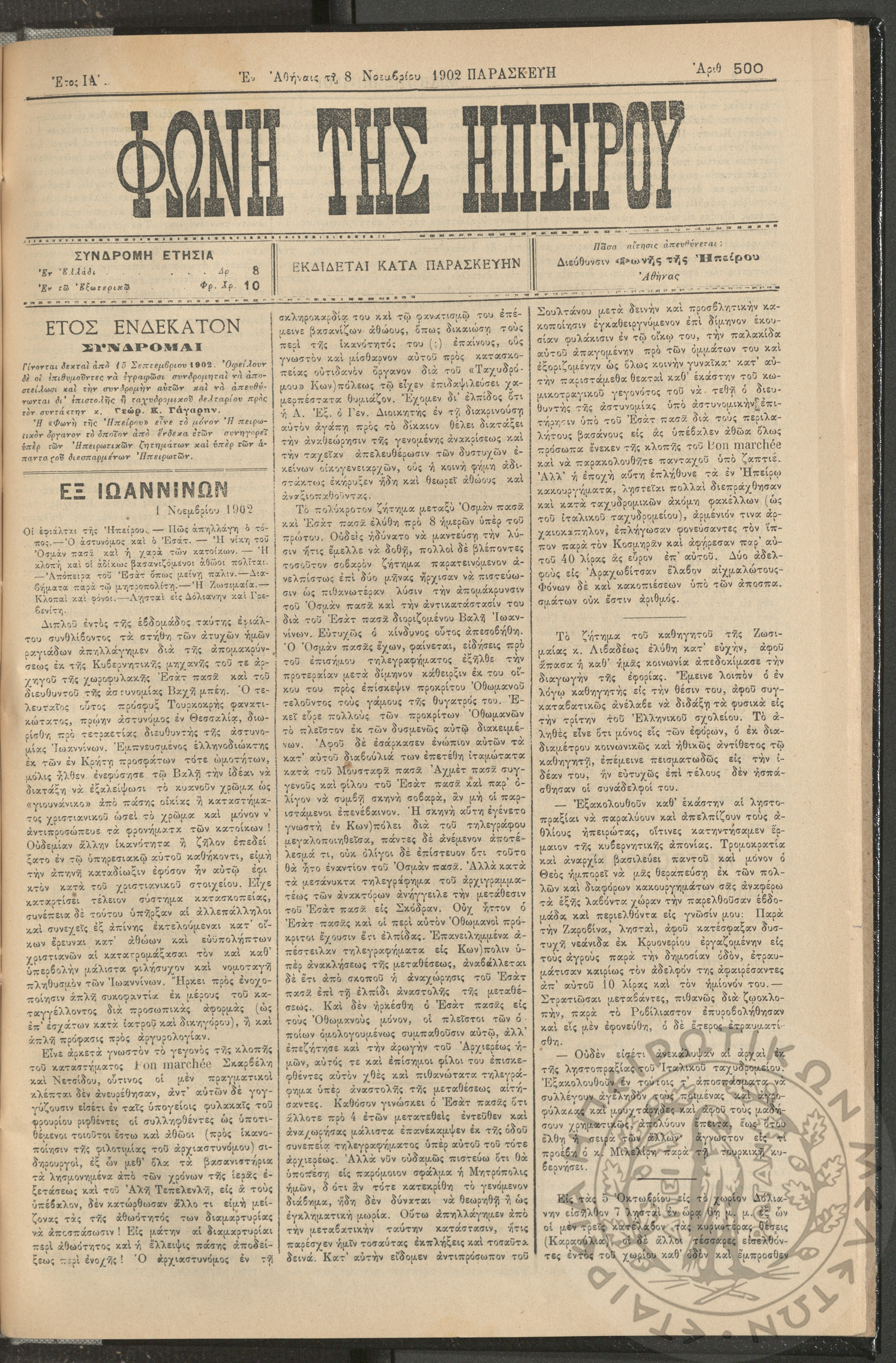 Φωνή της Ηπείρου, 1902, φ. 500