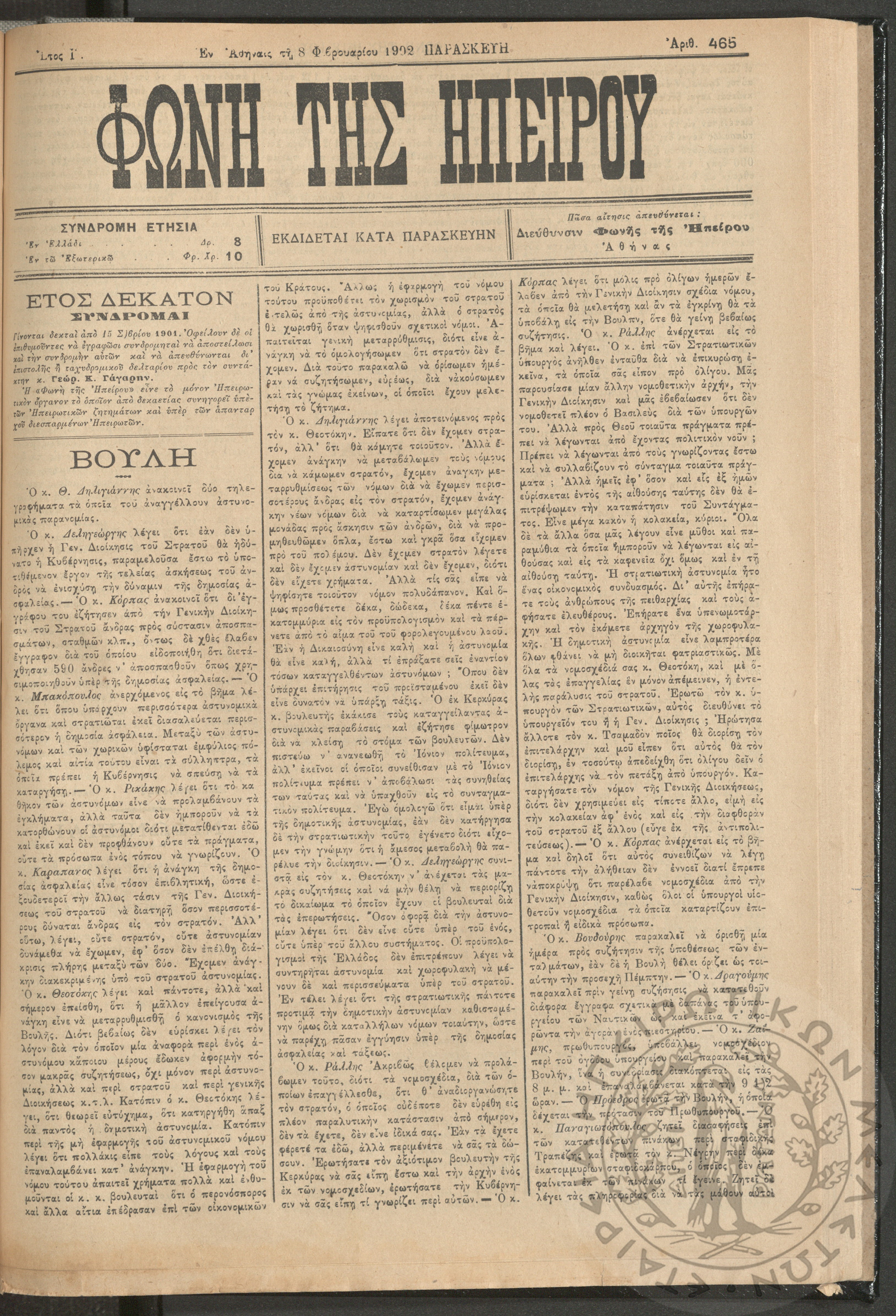 Φωνή της Ηπείρου, 1902, φ. 465