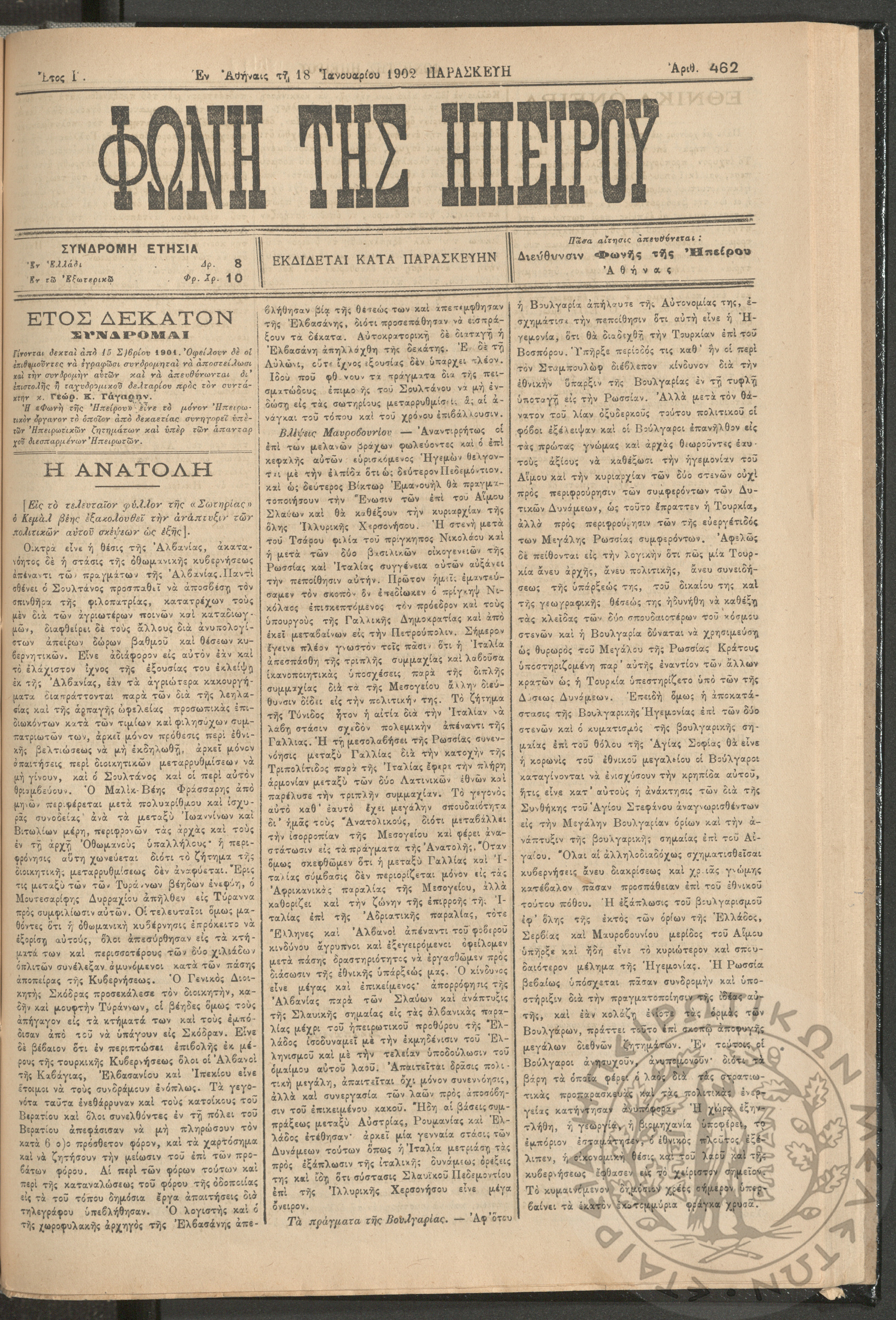 Φωνή της Ηπείρου, 1902, φ. 462