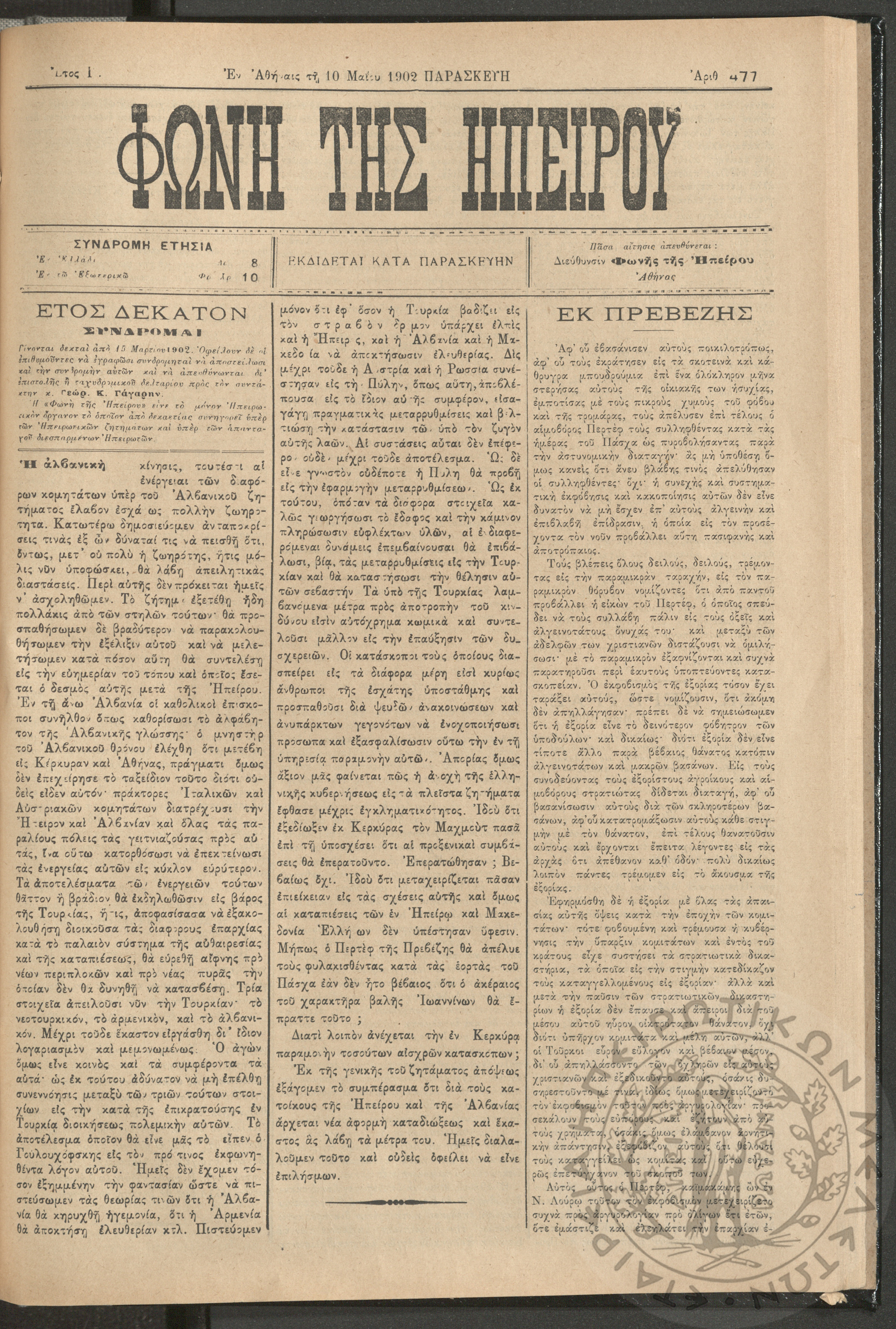 Φωνή της Ηπείρου, 1902, φ. 477