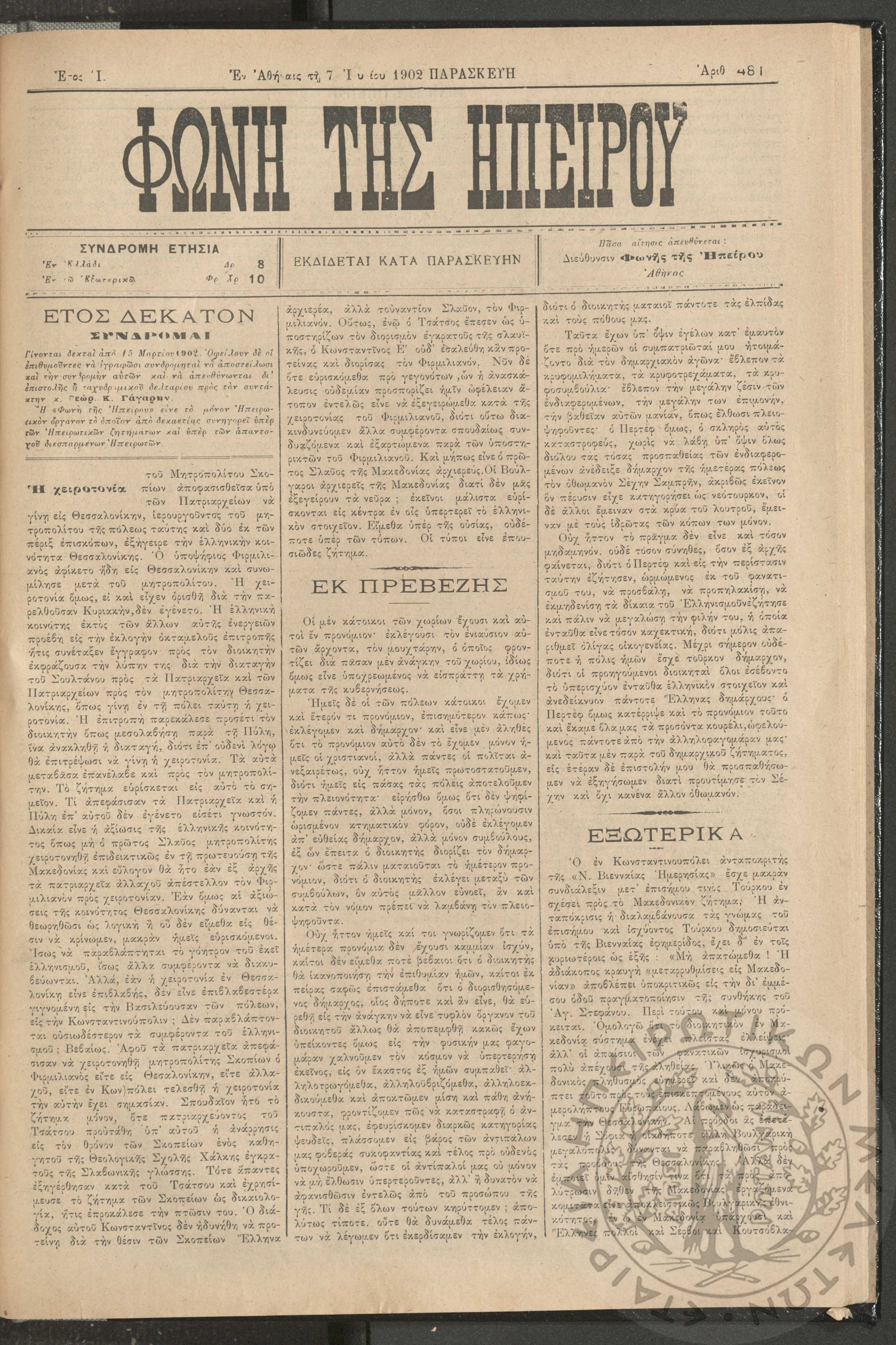 Φωνή της Ηπείρου, 1902, φ. 481