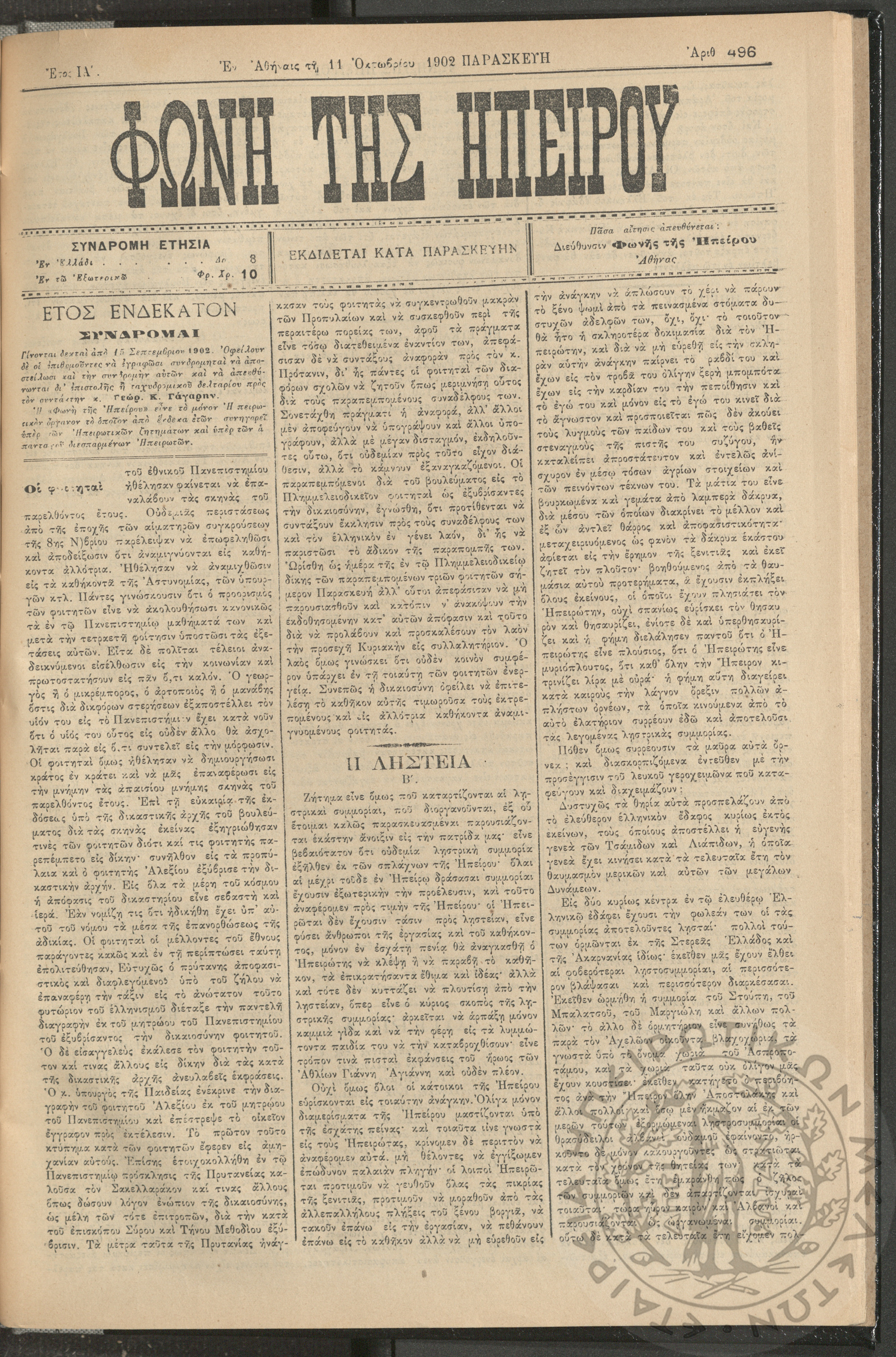 Φωνή της Ηπείρου, 1902, φ. 496
