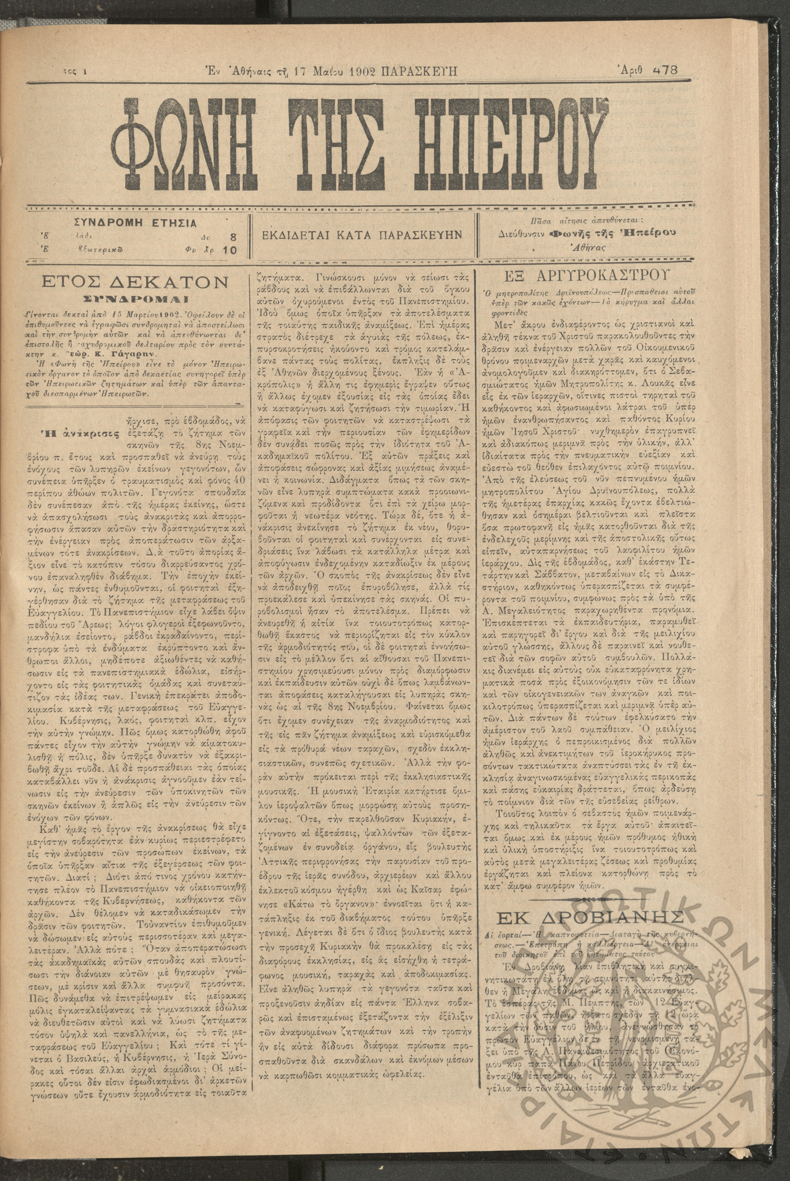 Φωνή της Ηπείρου, 1902, φ. 478