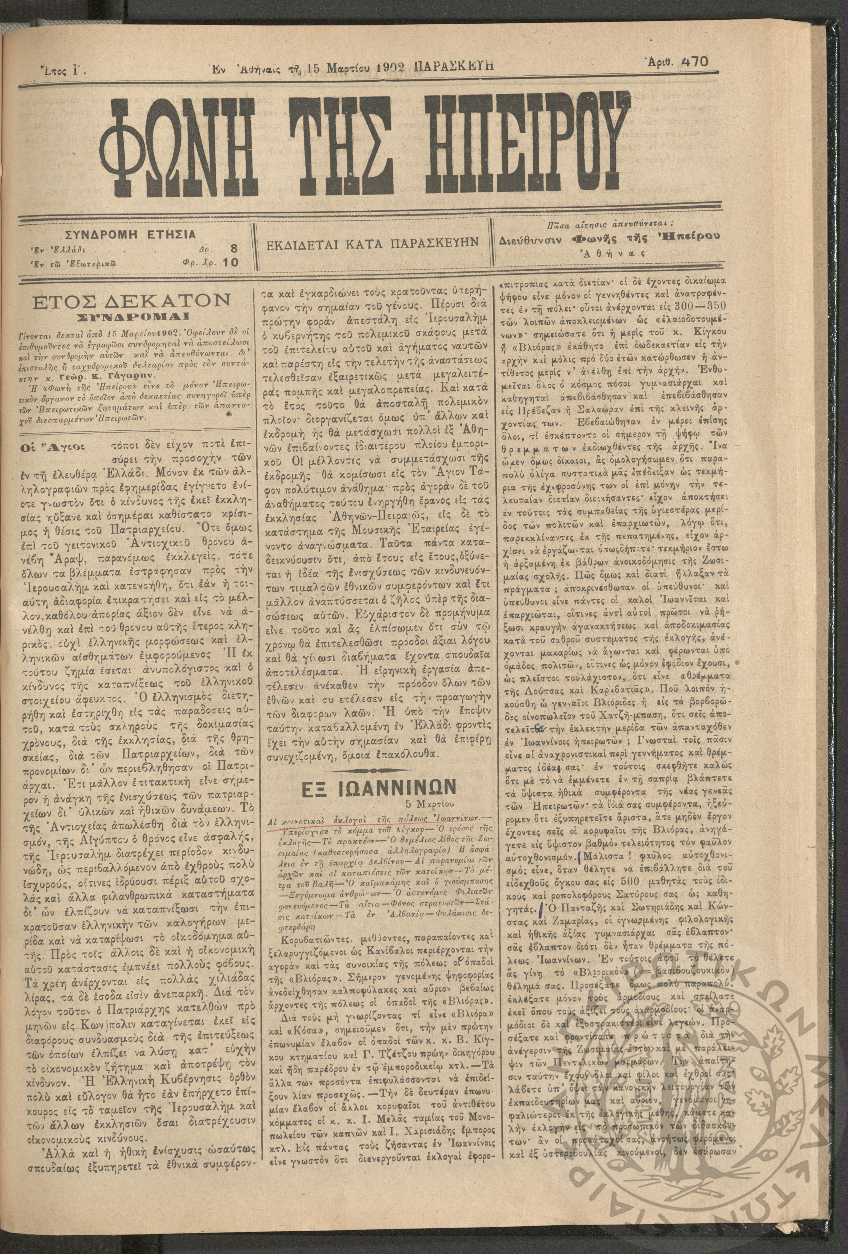 Φωνή της Ηπείρου, 1902, φ. 470