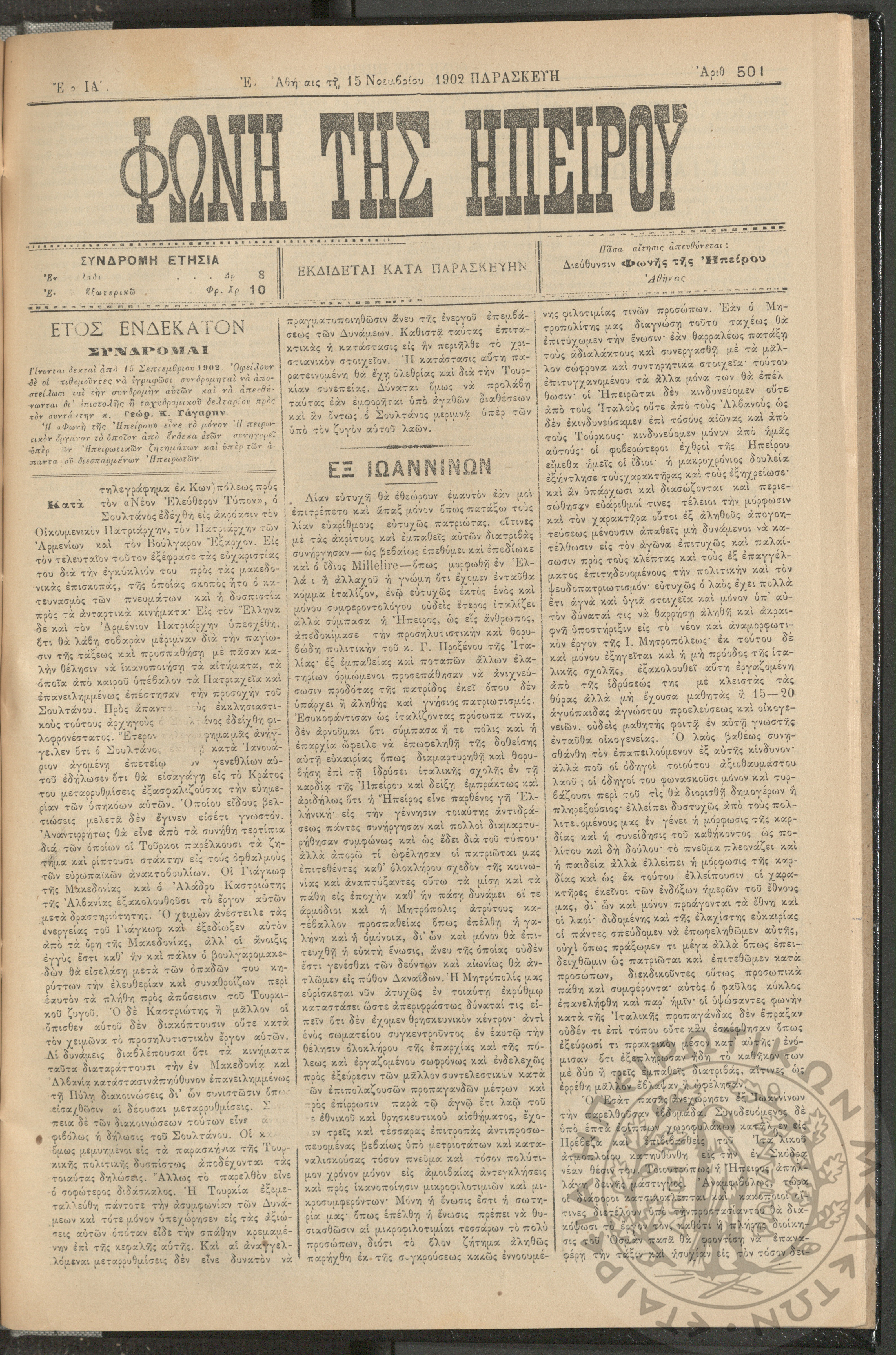 Φωνή της Ηπείρου, 1902, φ. 501