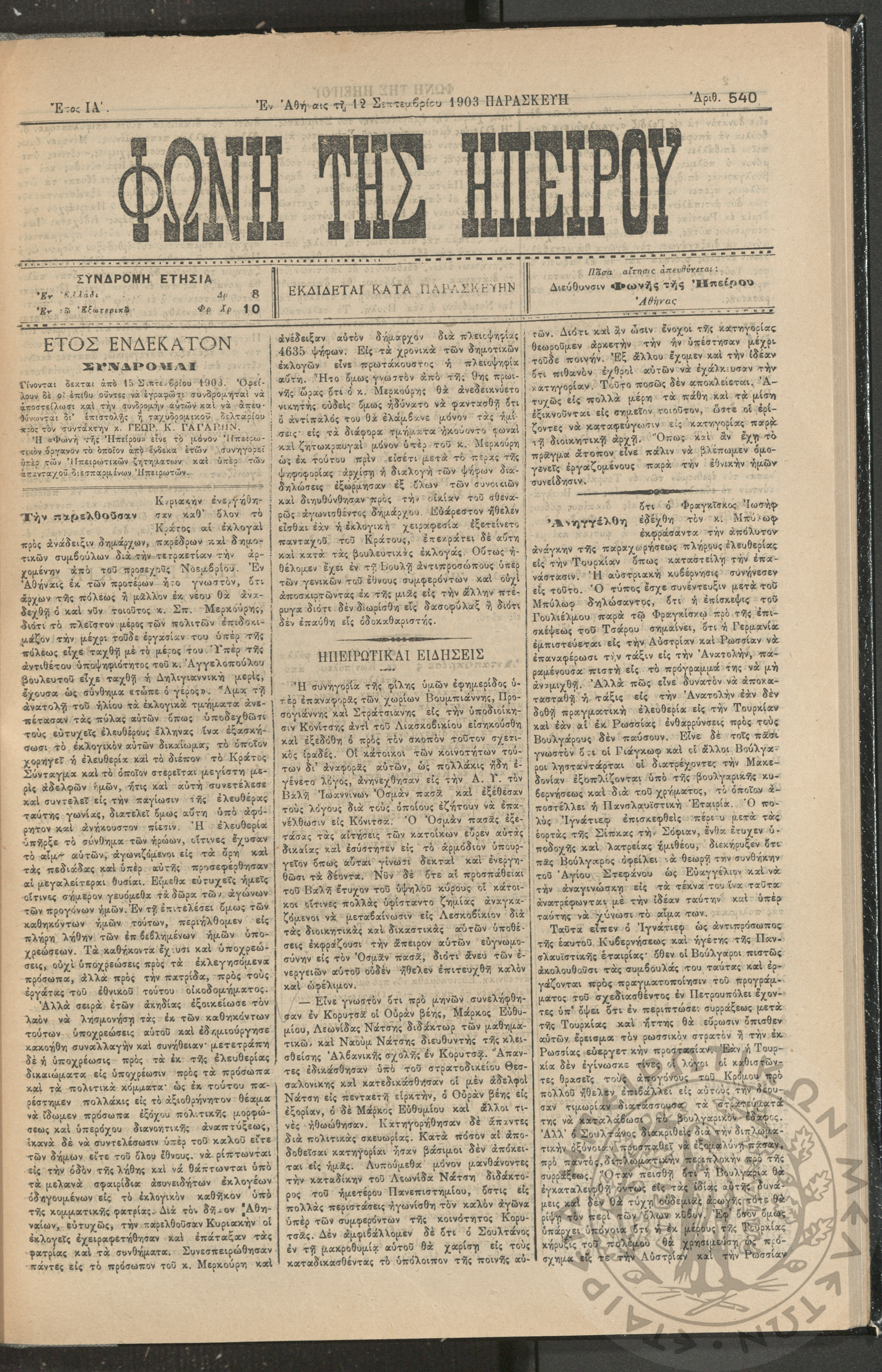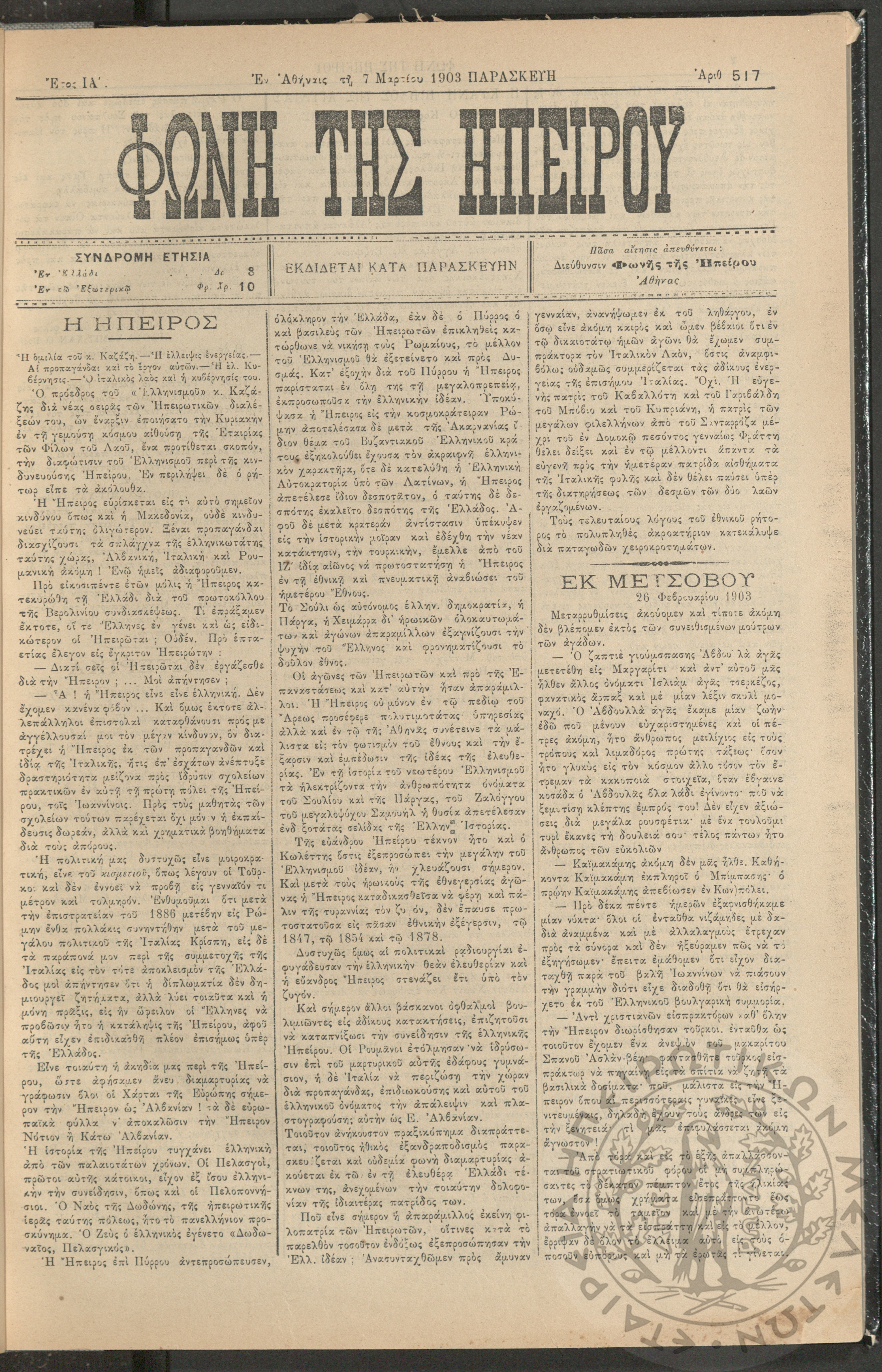 Ηπειρωτικός και Αθηναϊκός Τύπος