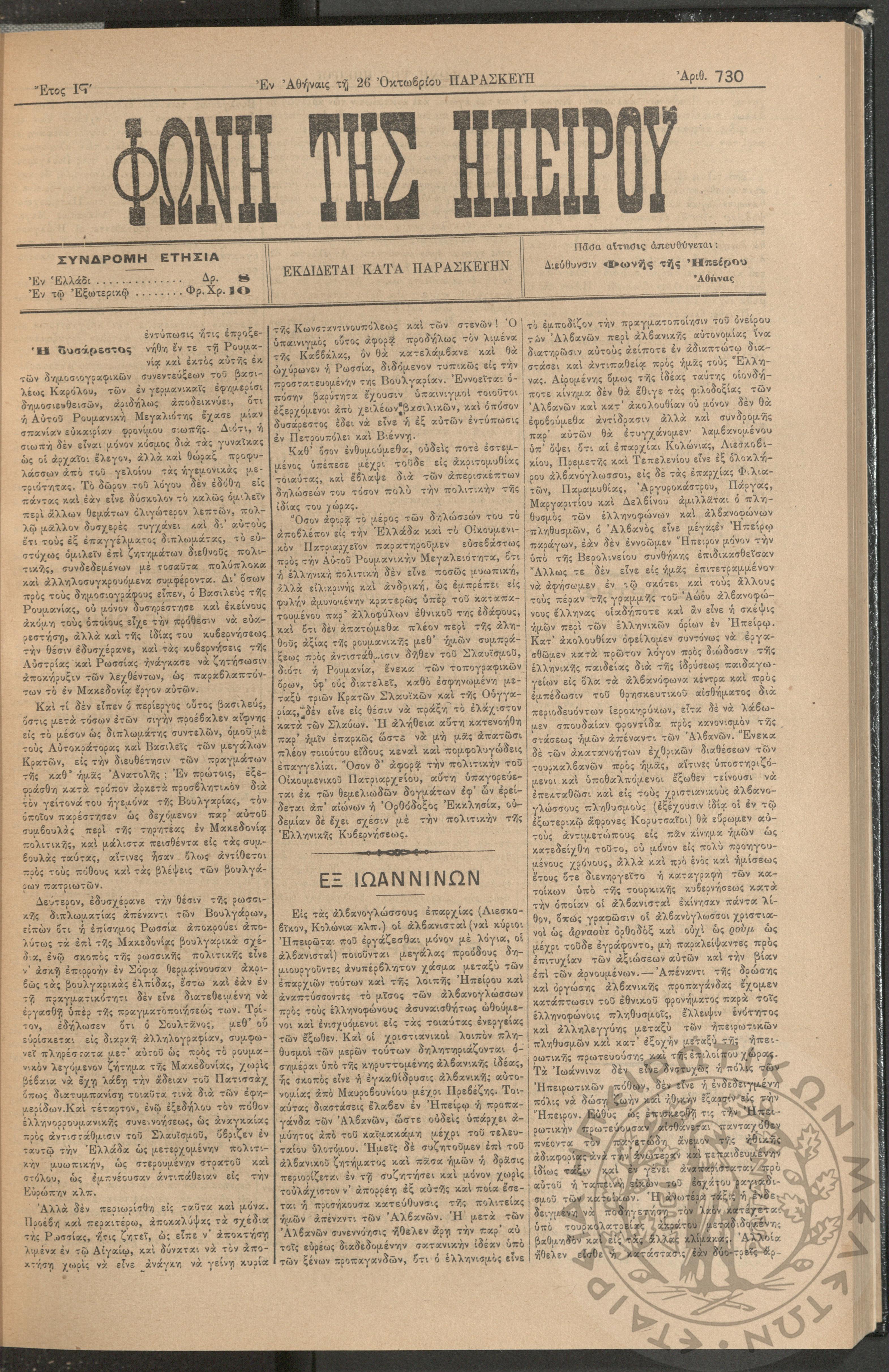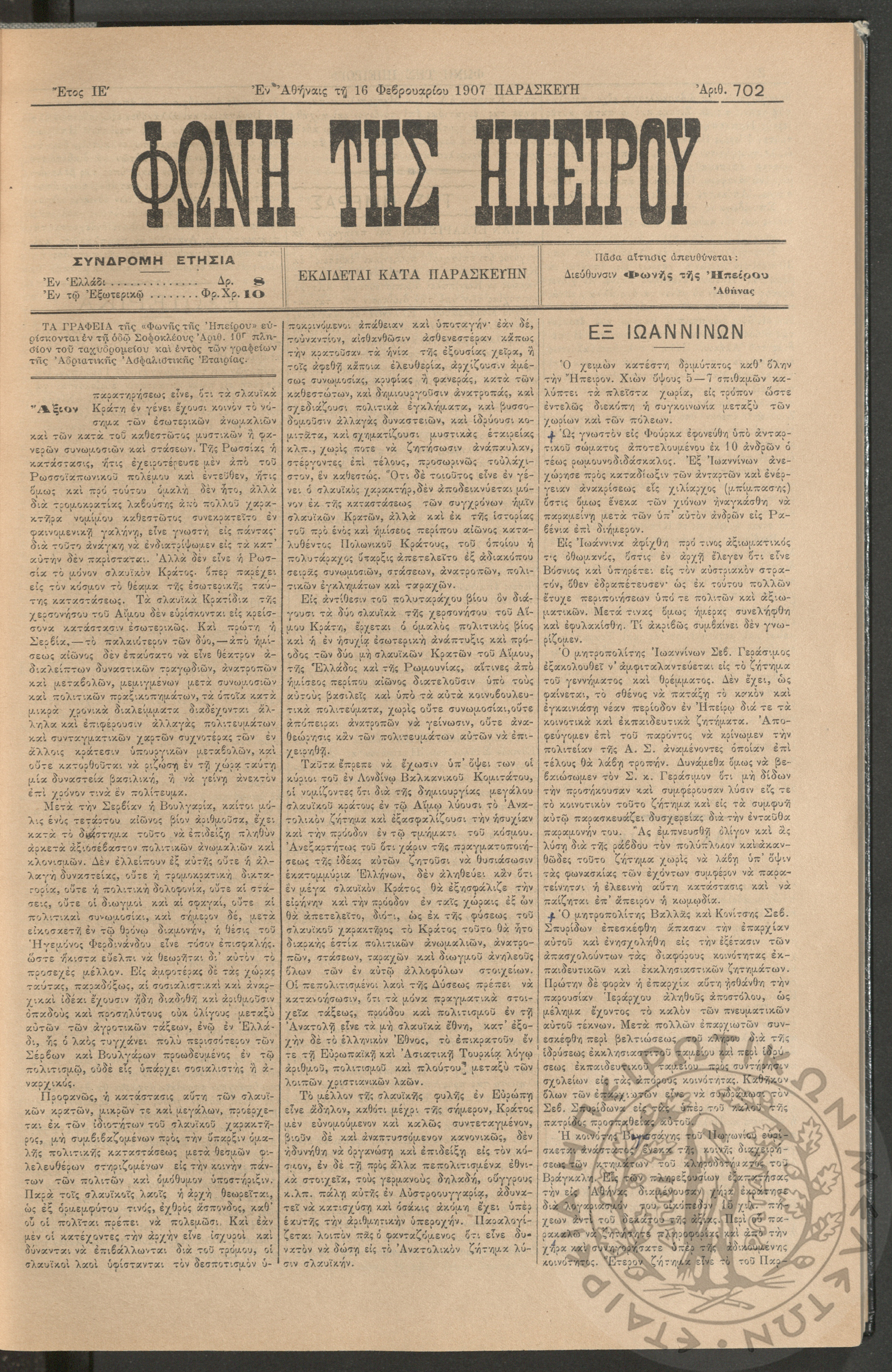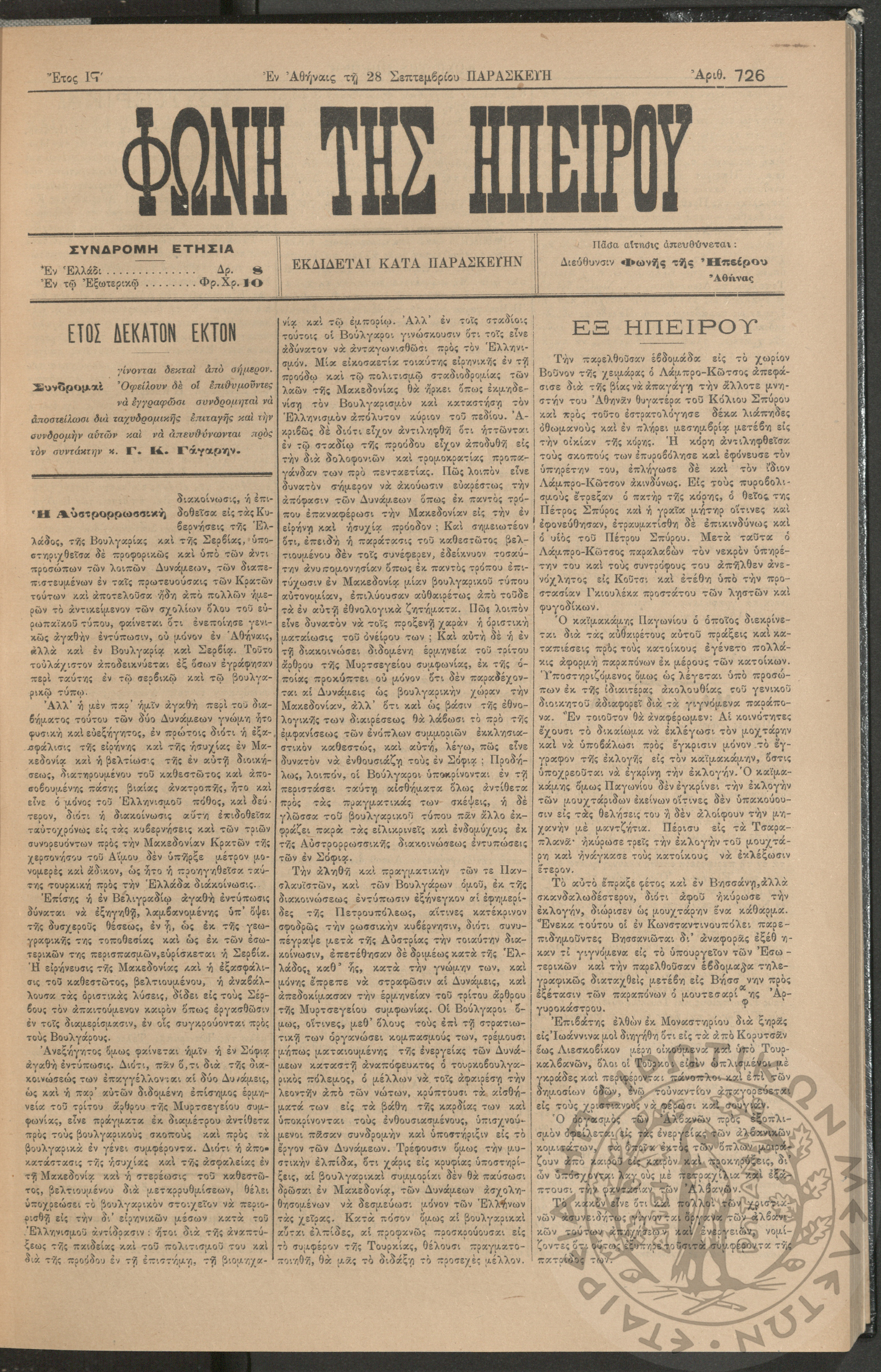 Εγερτήριον του φρονήματος, της ψυχής, του πνεύματος προς ανύψωσιν της ελληνικής ζωής (τεύχ. 2)Έτος Α΄, τεύχ. 2...