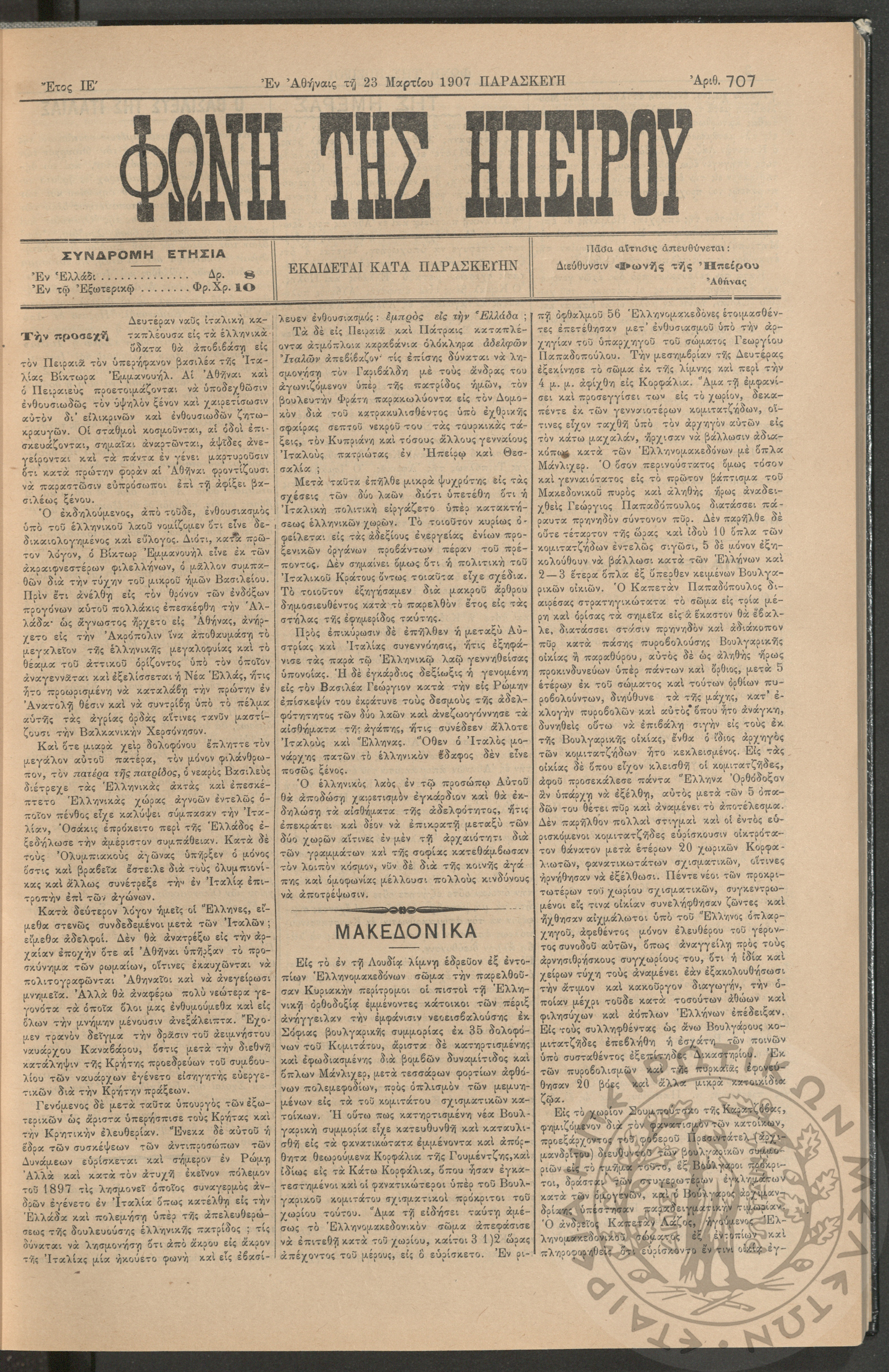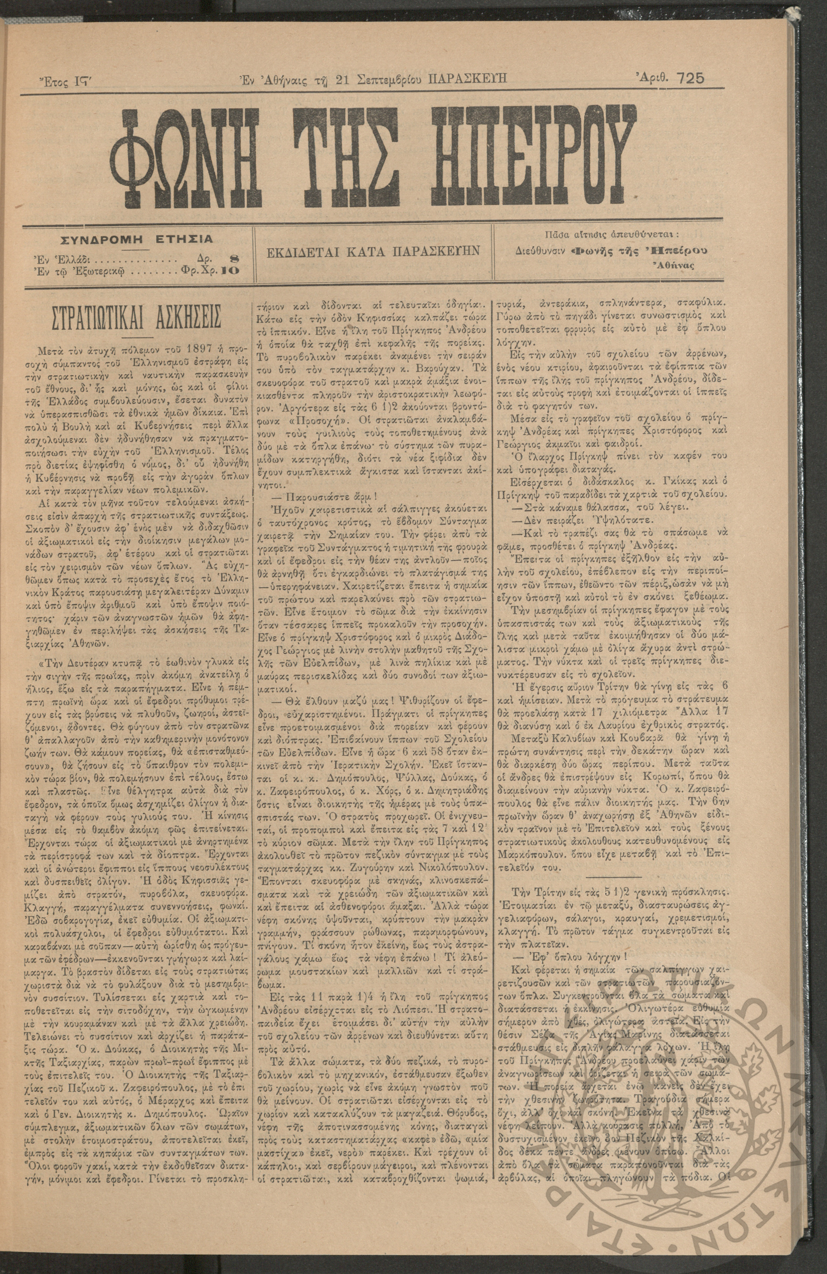Εγερτήριον του φρονήματος, της ψυχής, του πνεύματος προς ανύψωσιν της ελληνικής ζωής (τεύχ. 8)Έτος Α΄, τεύχ. 8...