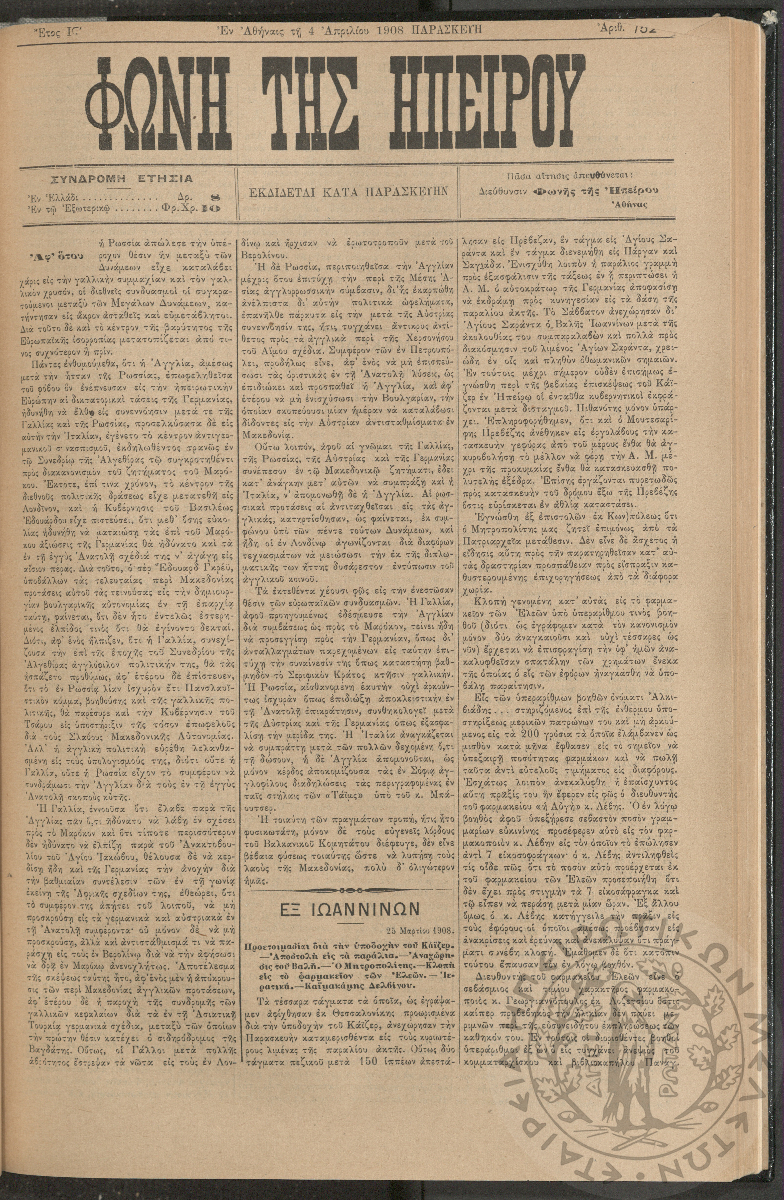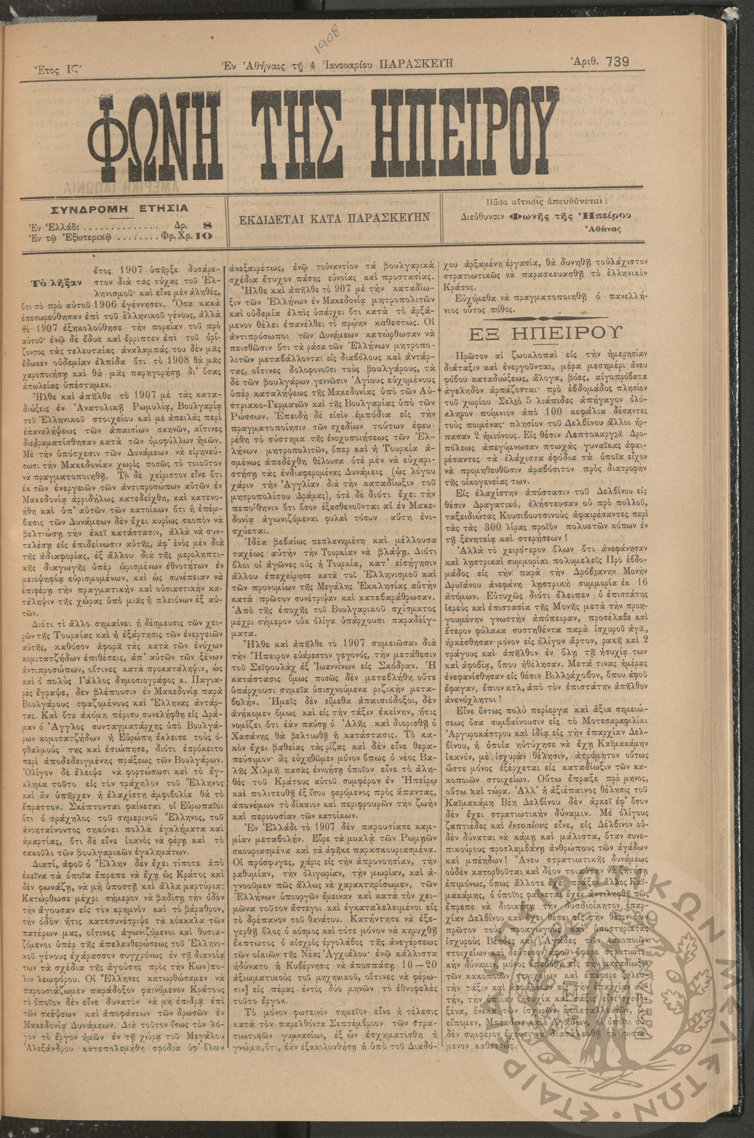 Εγερτήριον του φρονήματος, της ψυχής, του πνεύματος προς ανύψωσιν της ελληνικής ζωής (τεύχ. 4)Έτος Α΄, τεύχ. 4...