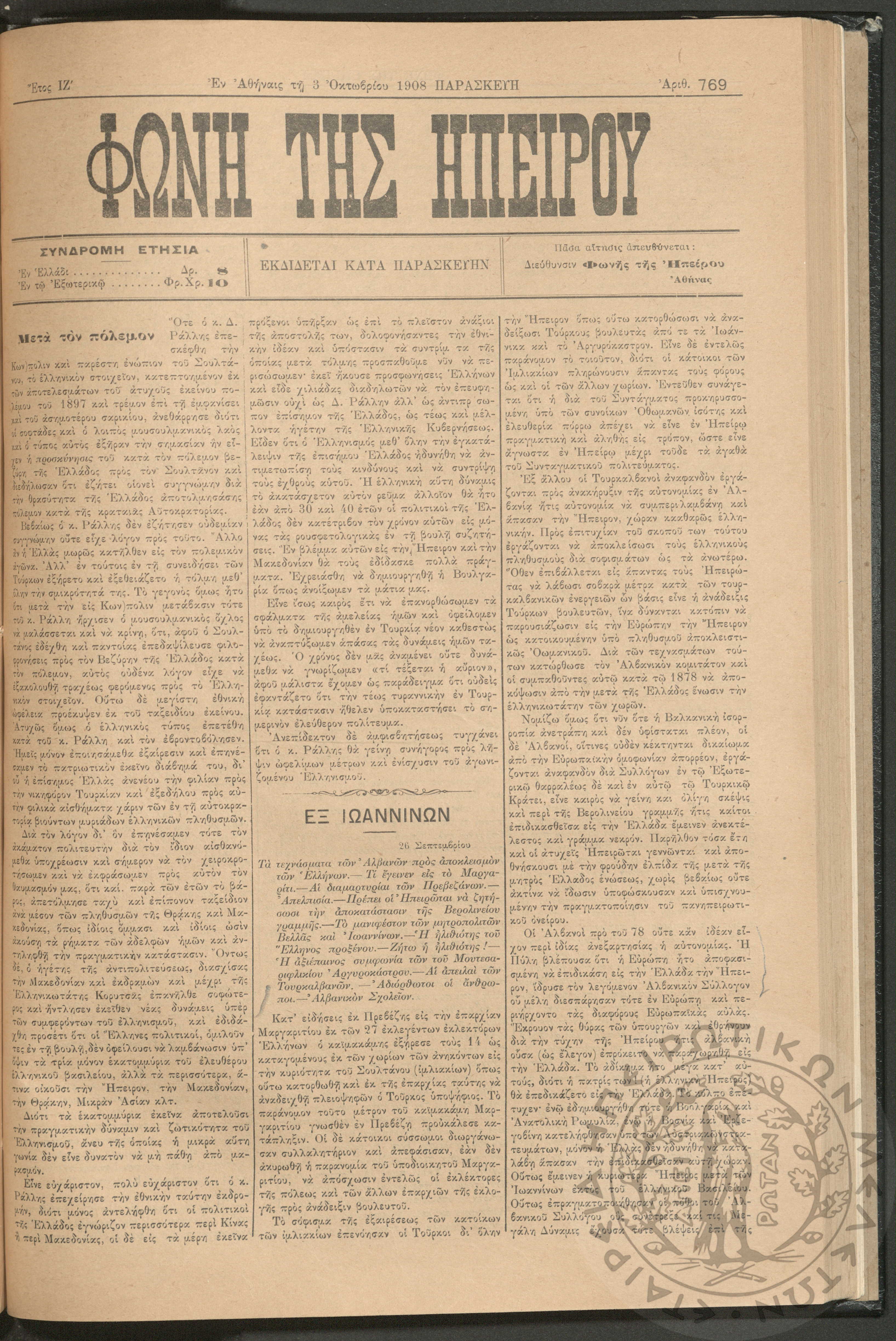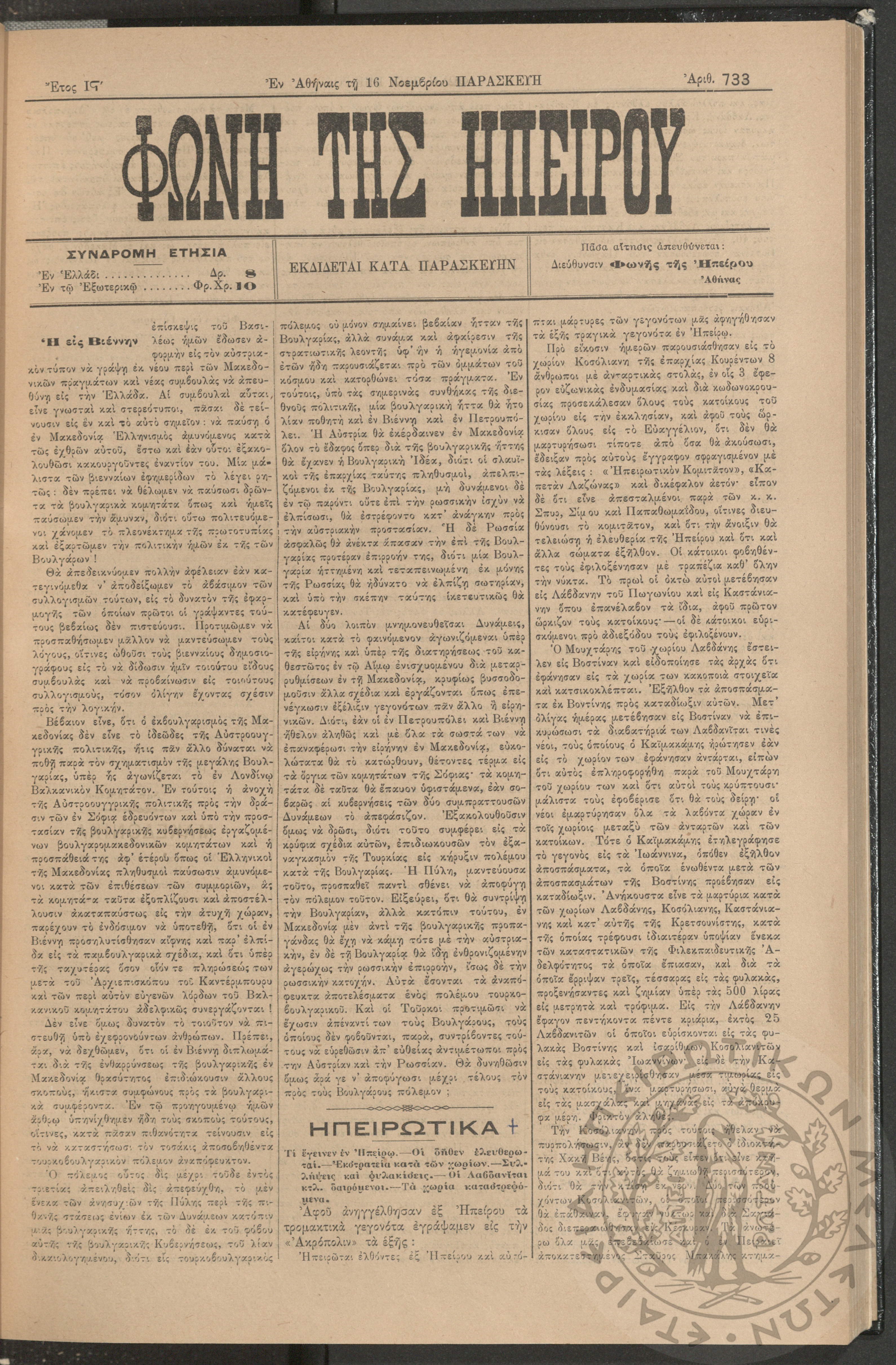 Εγερτήριον του φρονήματος, της ψυχής, του πνεύματος προς ανύψωσιν της ελληνικής ζωής (τεύχ. 9)Έτος Α΄, τεύχ. 9...