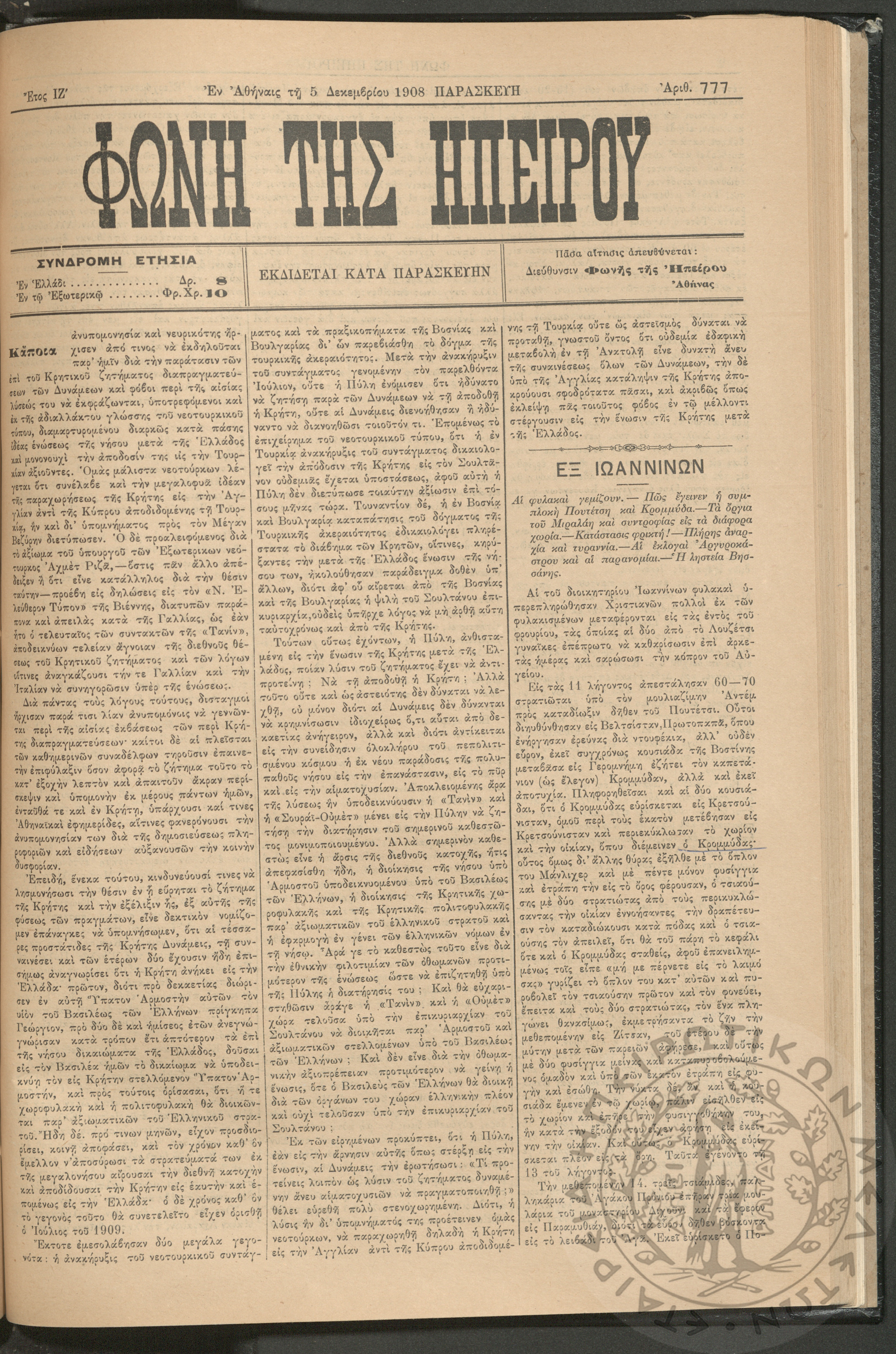 Εγερτήριον του φρονήματος, της ψυχής, του πνεύματος προς ανύψωσιν της ελληνικής ζωής (τεύχ. 5)Έτος Α΄, τεύχ. 5...